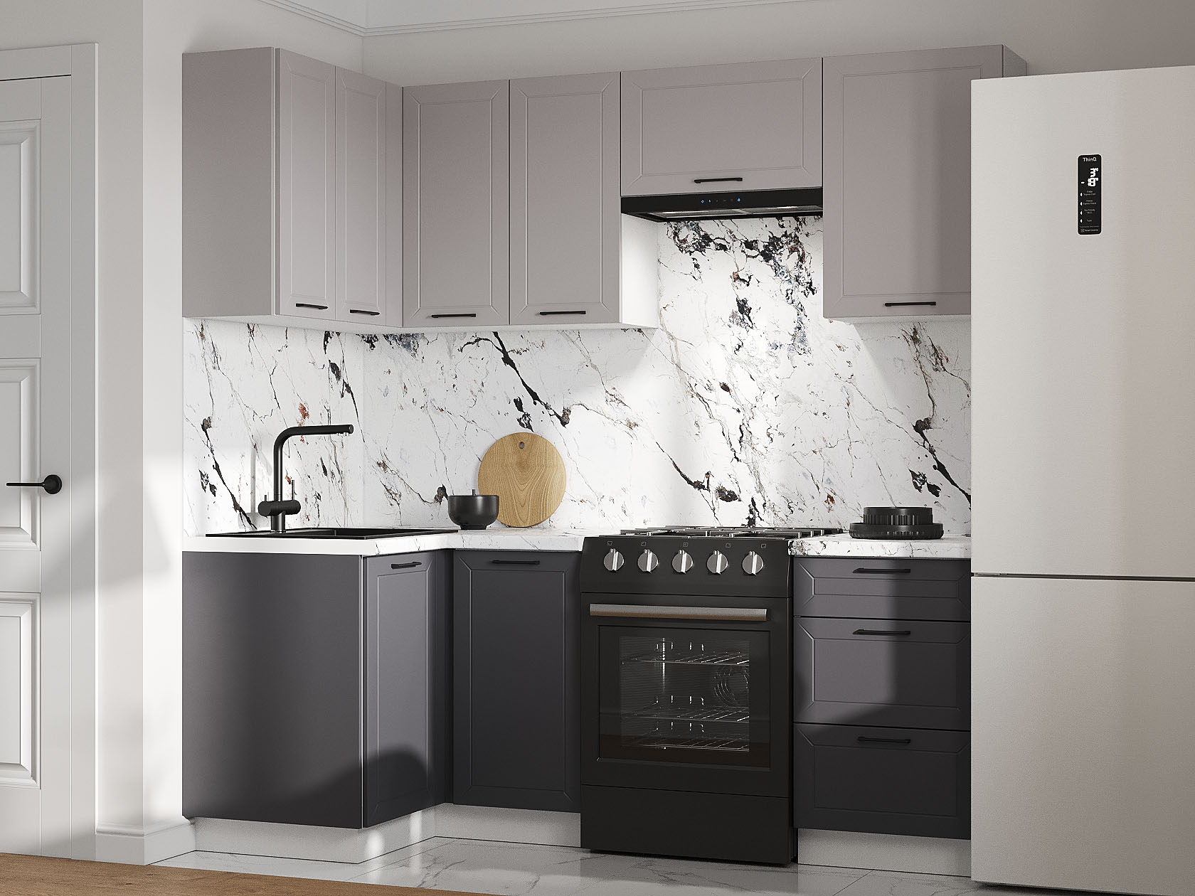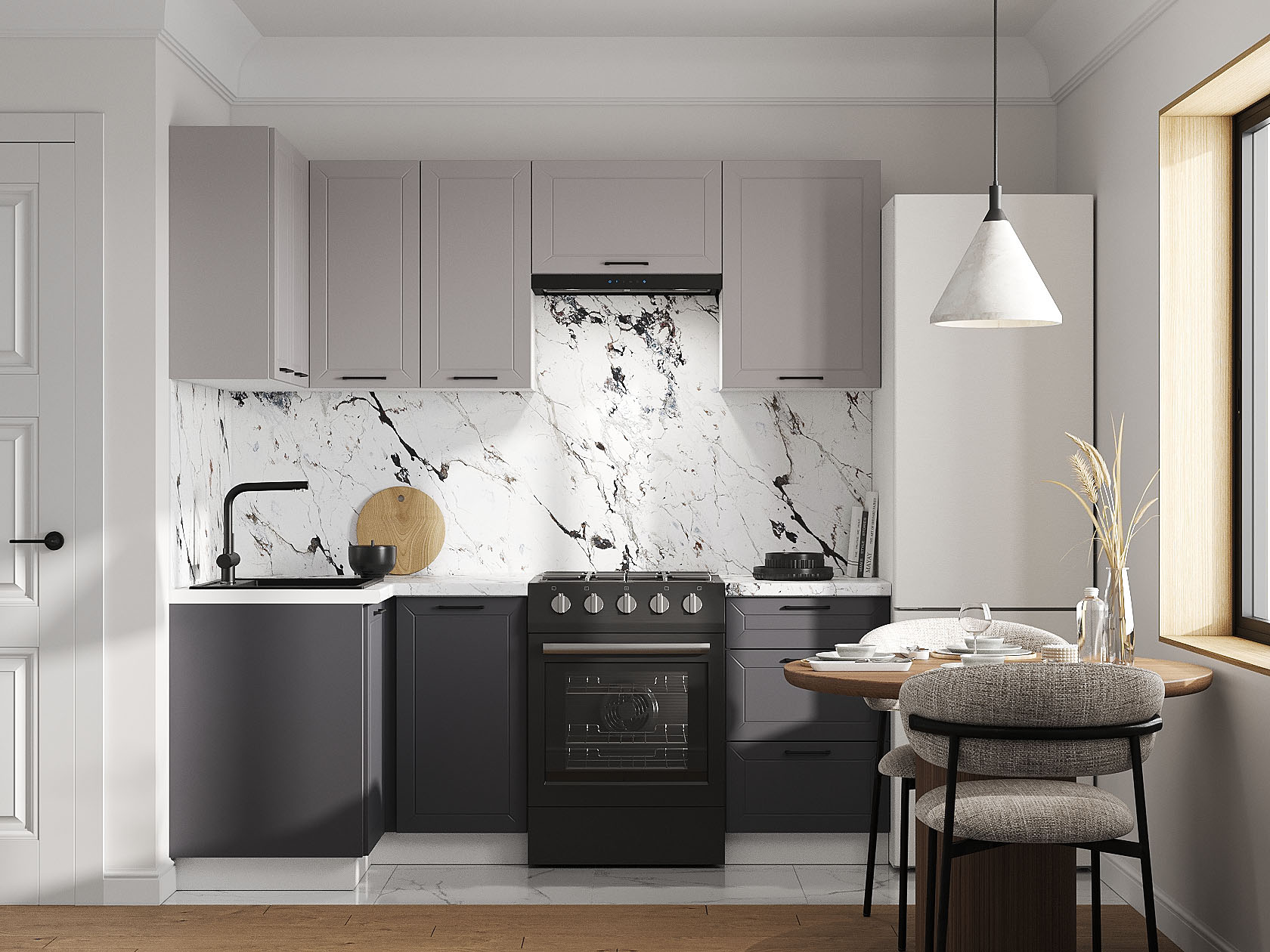 Кухонный гарнитур Вектор 210х100 см с антресолью Белый / Графит / Нео