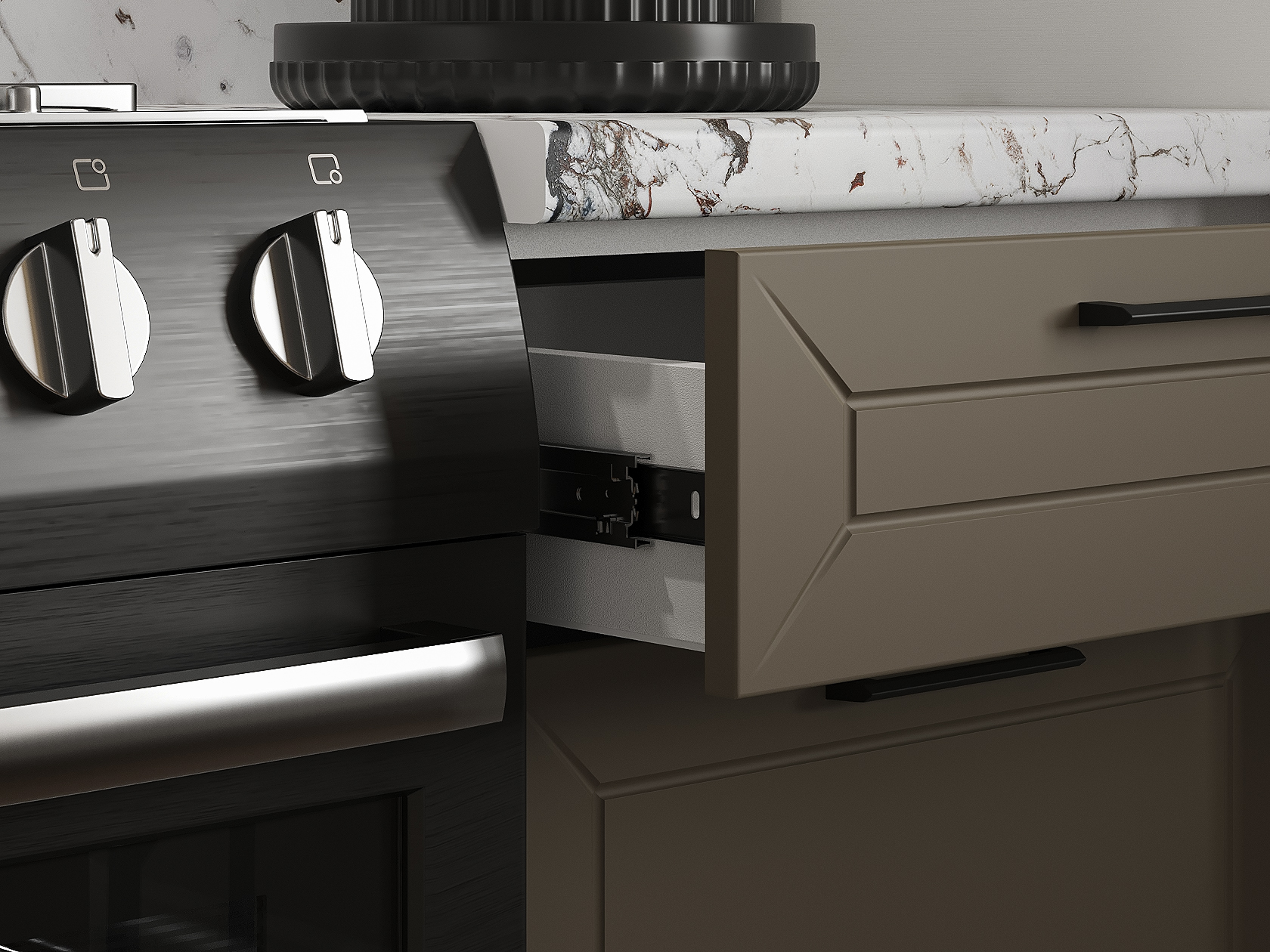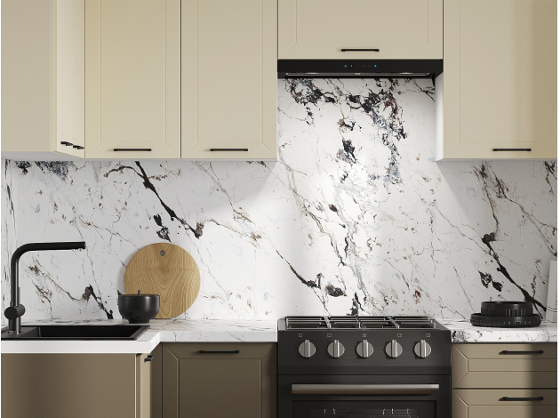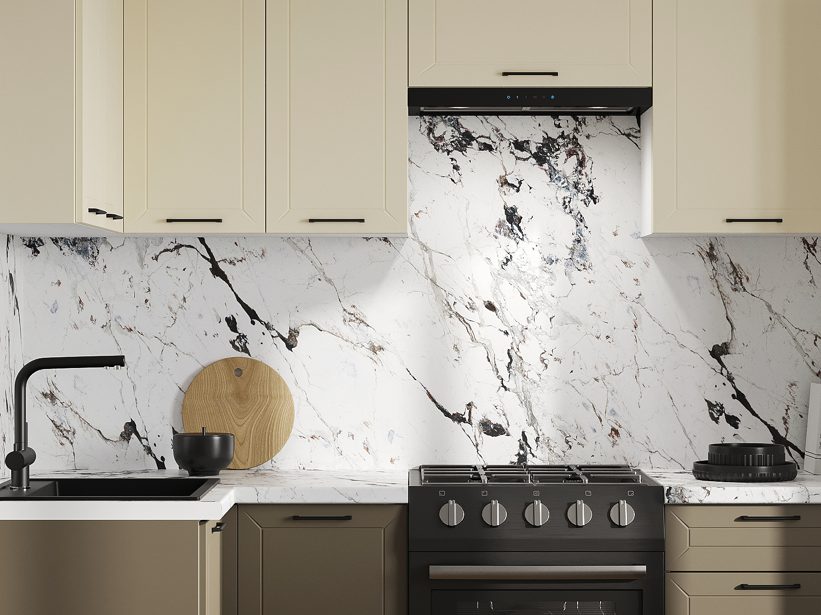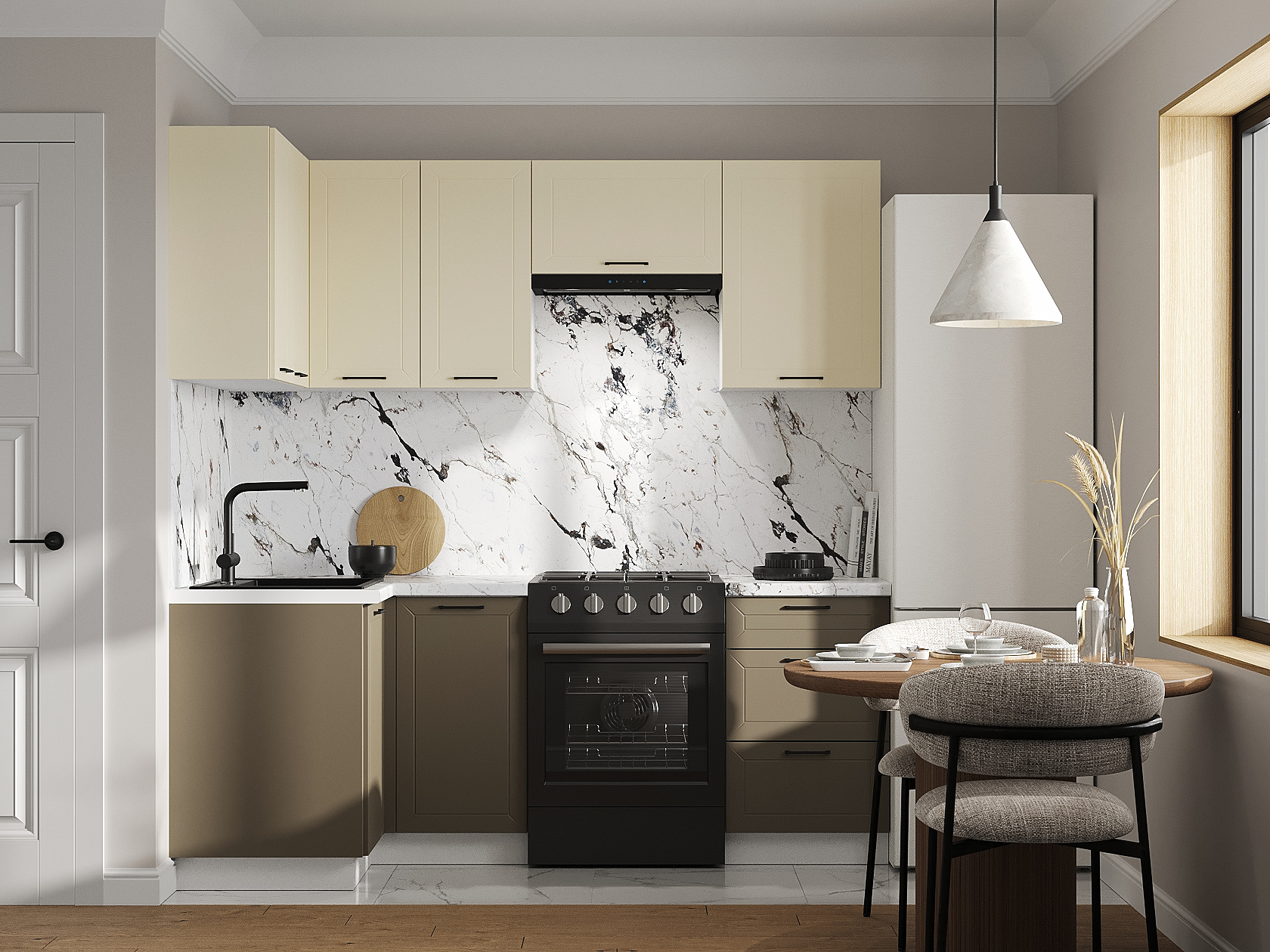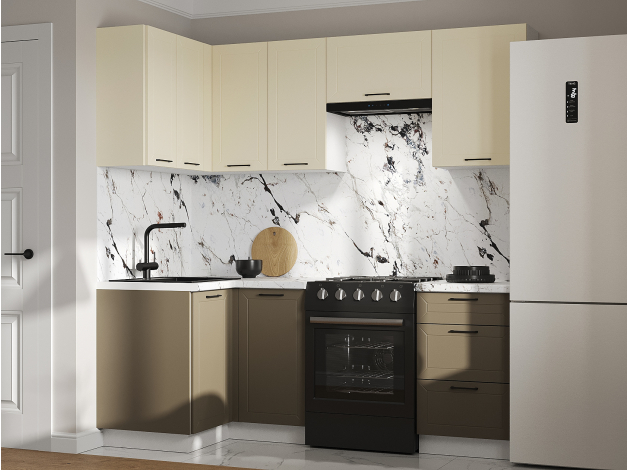 Кухонный гарнитур Вектор 210х100 см с антресолью Белый / Магнолия / Базальт