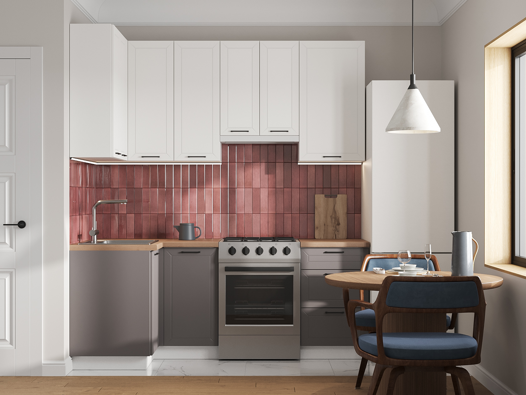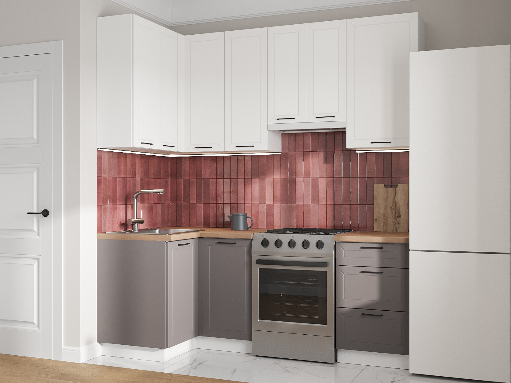 Высокий кухонный гарнитур Вектор 210х100 см Белый / Бланж / Грей