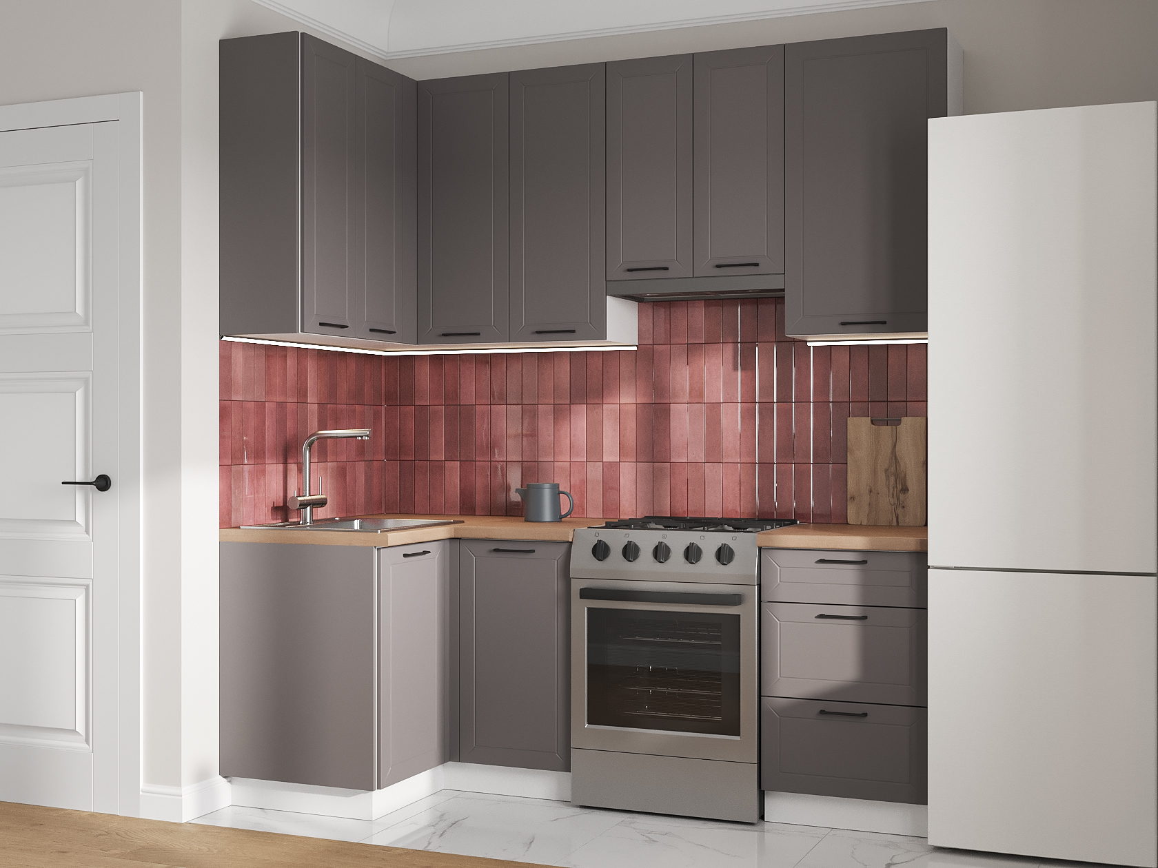 Высокий кухонный гарнитур Вектор 210х100 см Белый / Грей