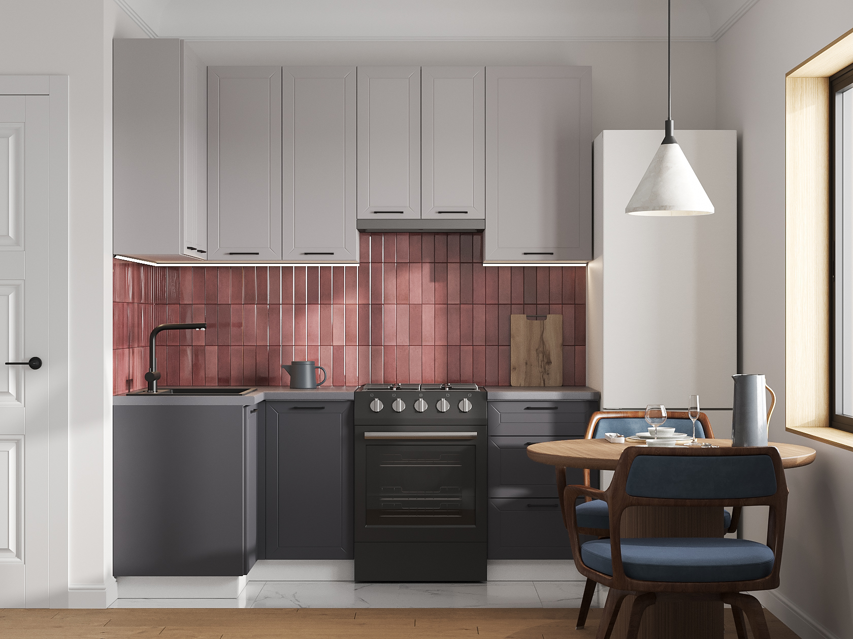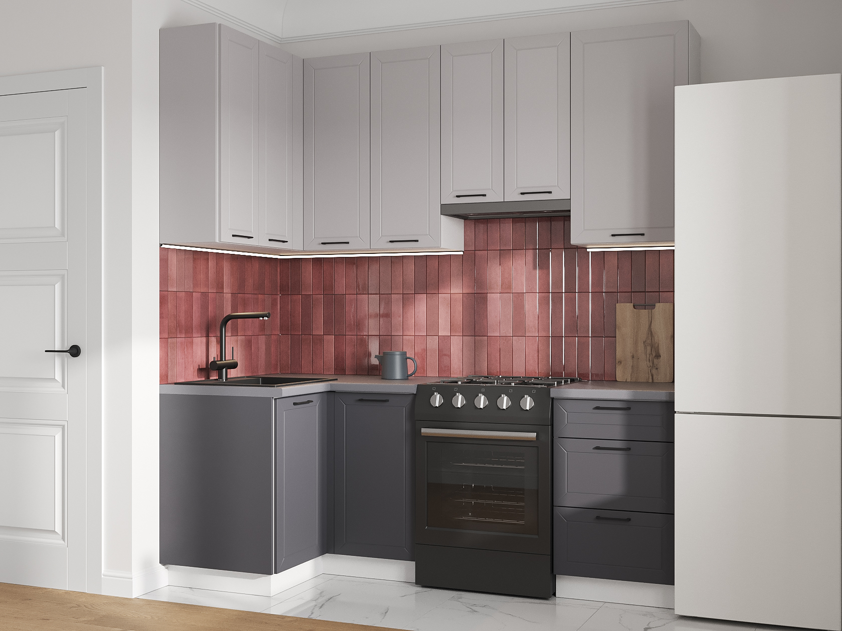 Высокий кухонный гарнитур Вектор 210х100 см Белый / Нео / Графит
