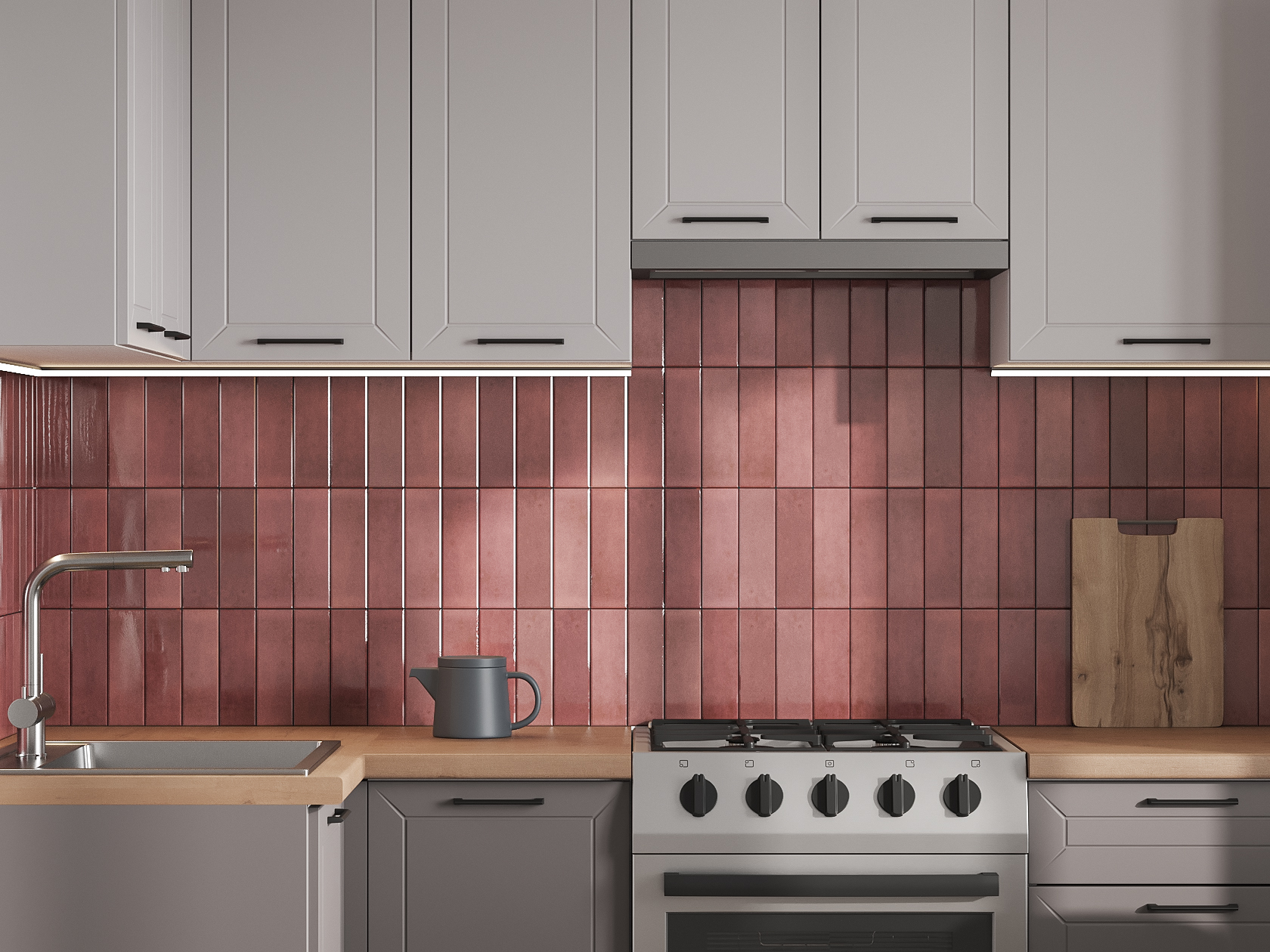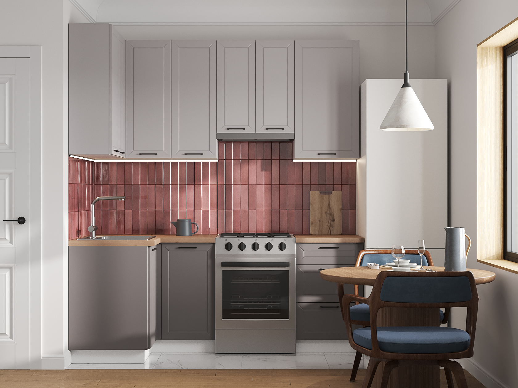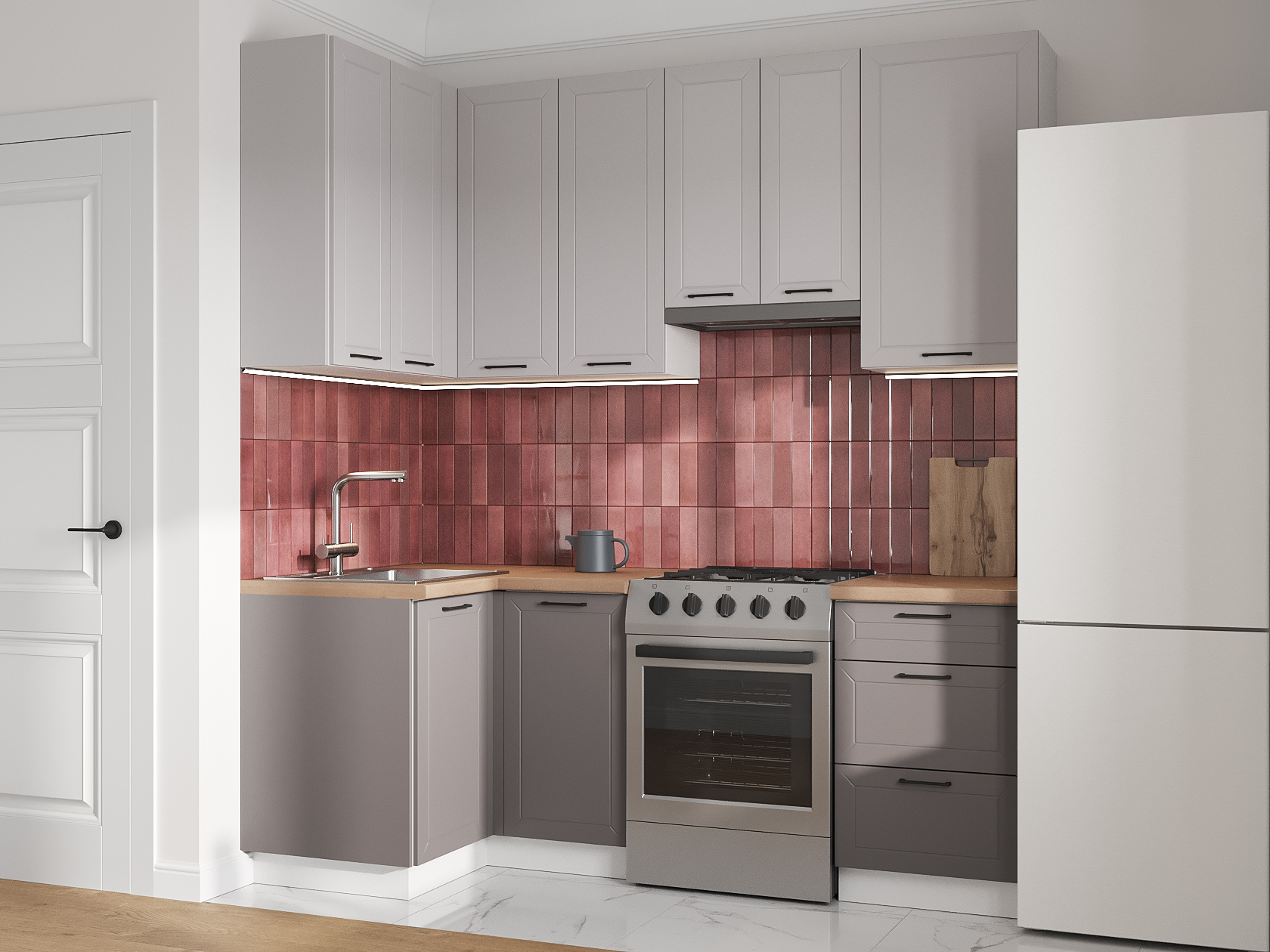 Высокий кухонный гарнитур Вектор 210х100 см Белый / Нео / Грей