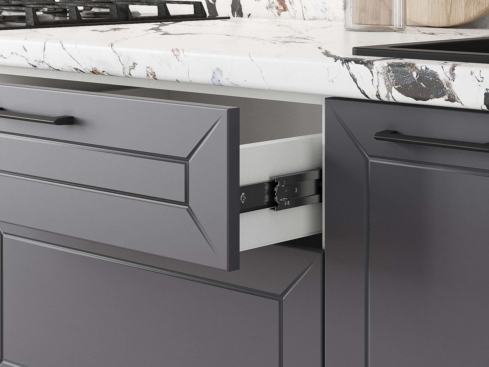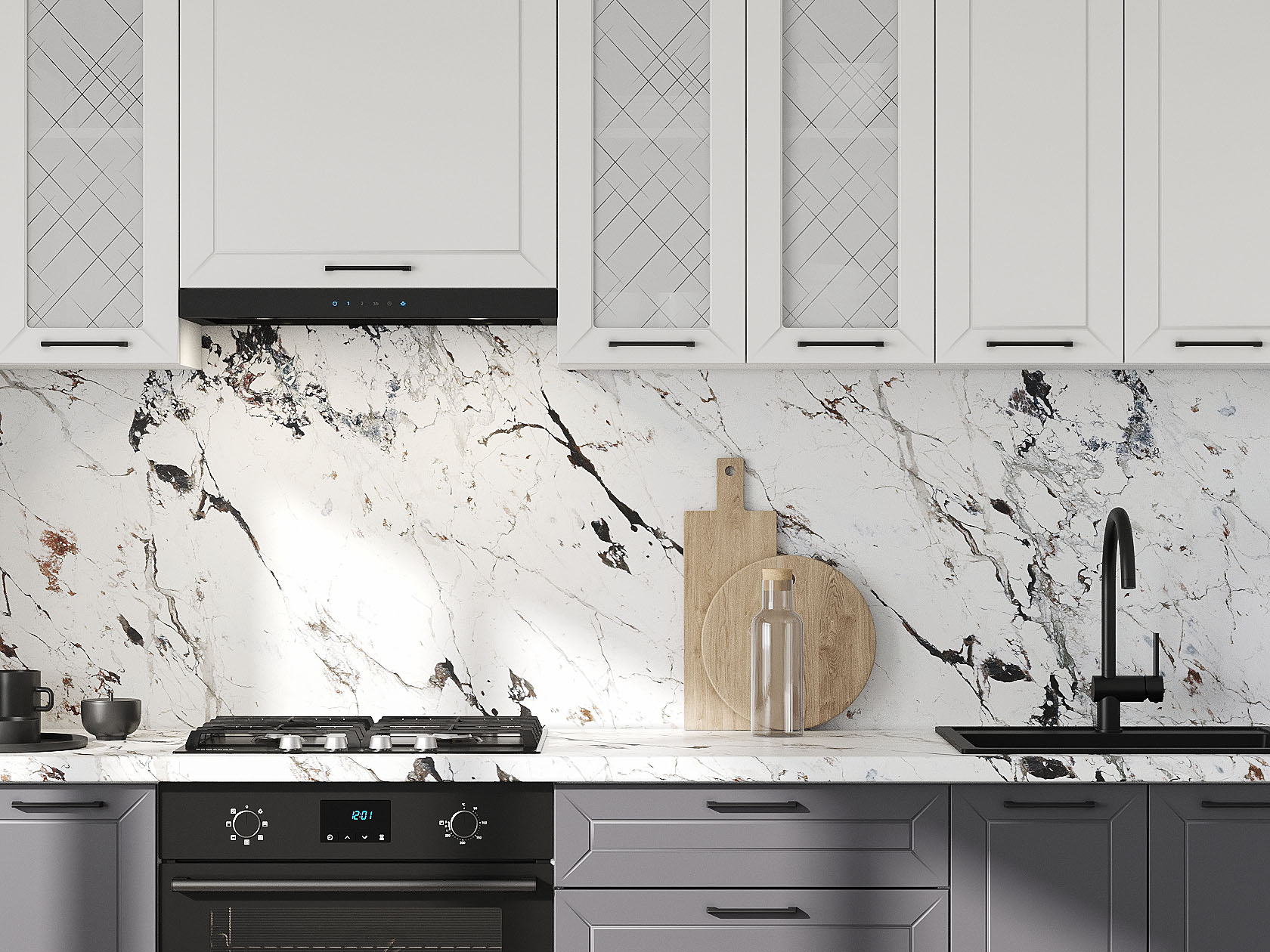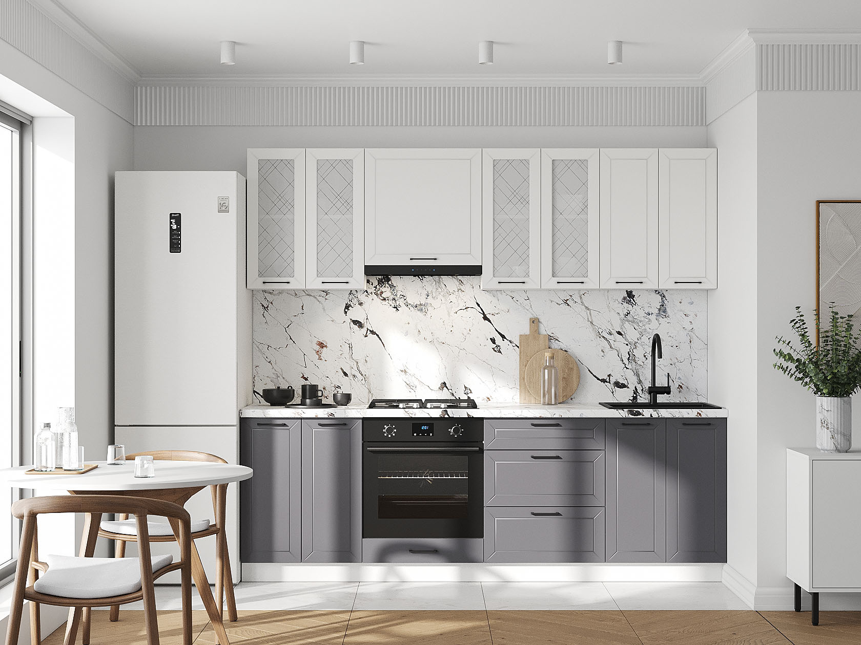 Кухонный гарнитур Вектор 240 см со стеклом Белый / Графит / Бланж / Стекло
