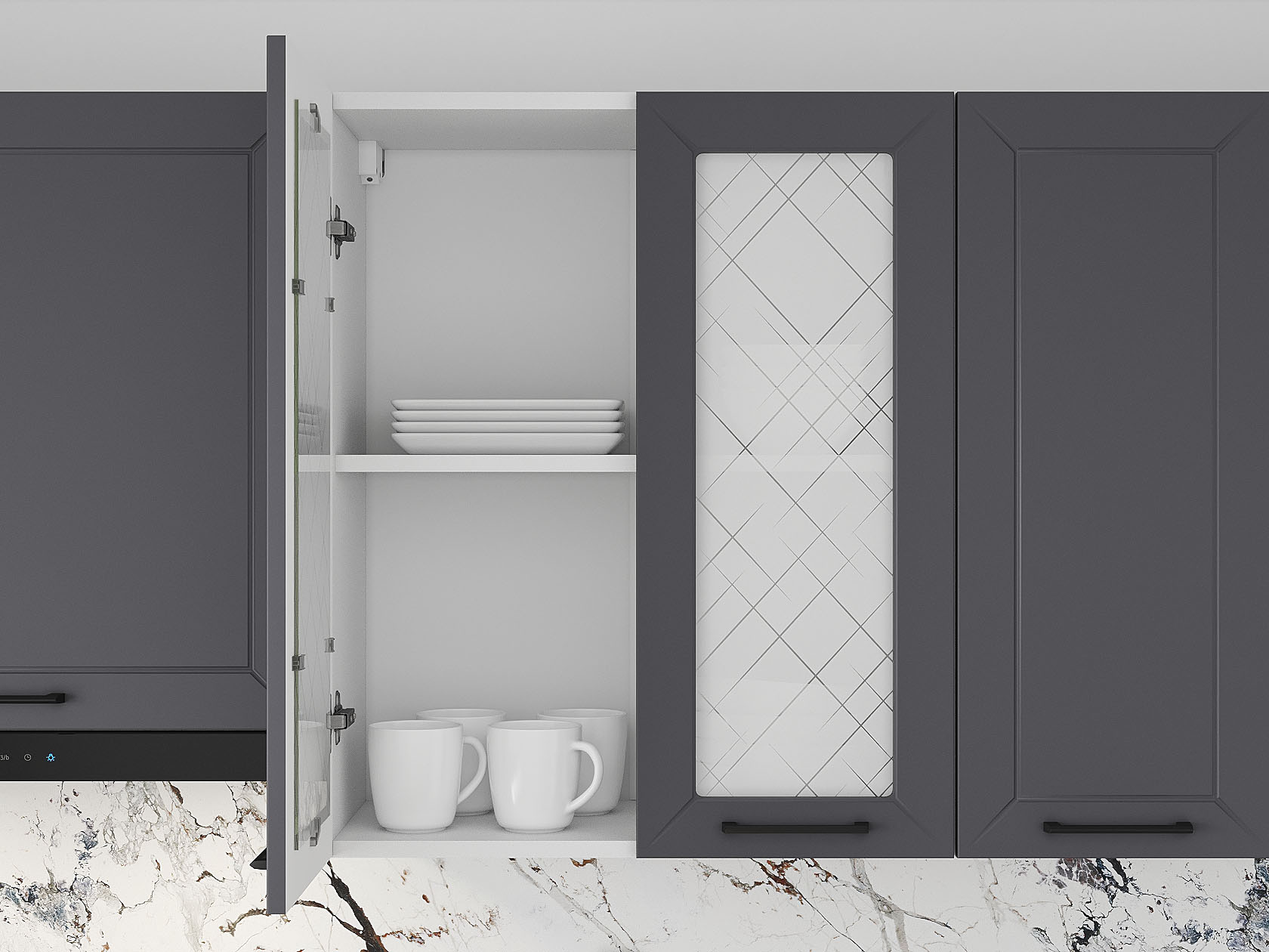 Кухонный гарнитур Вектор 240 см со стеклом Белый / Графит / Стекло