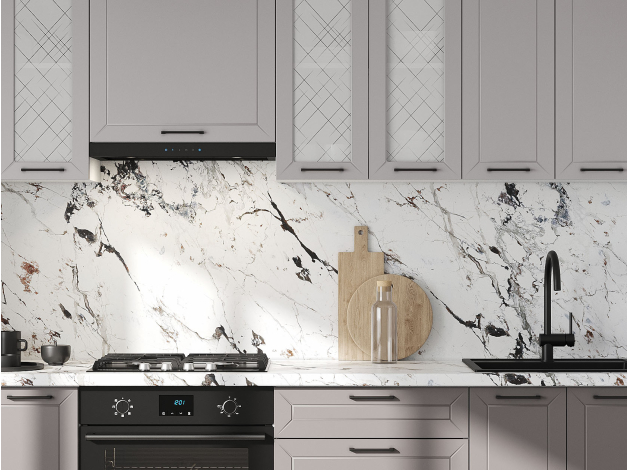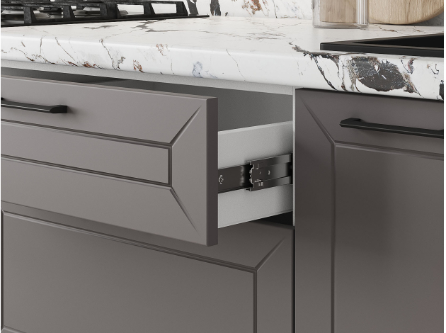 Кухонный гарнитур Вектор 240 см со стеклом Белый / Грей / Нео / Стекло