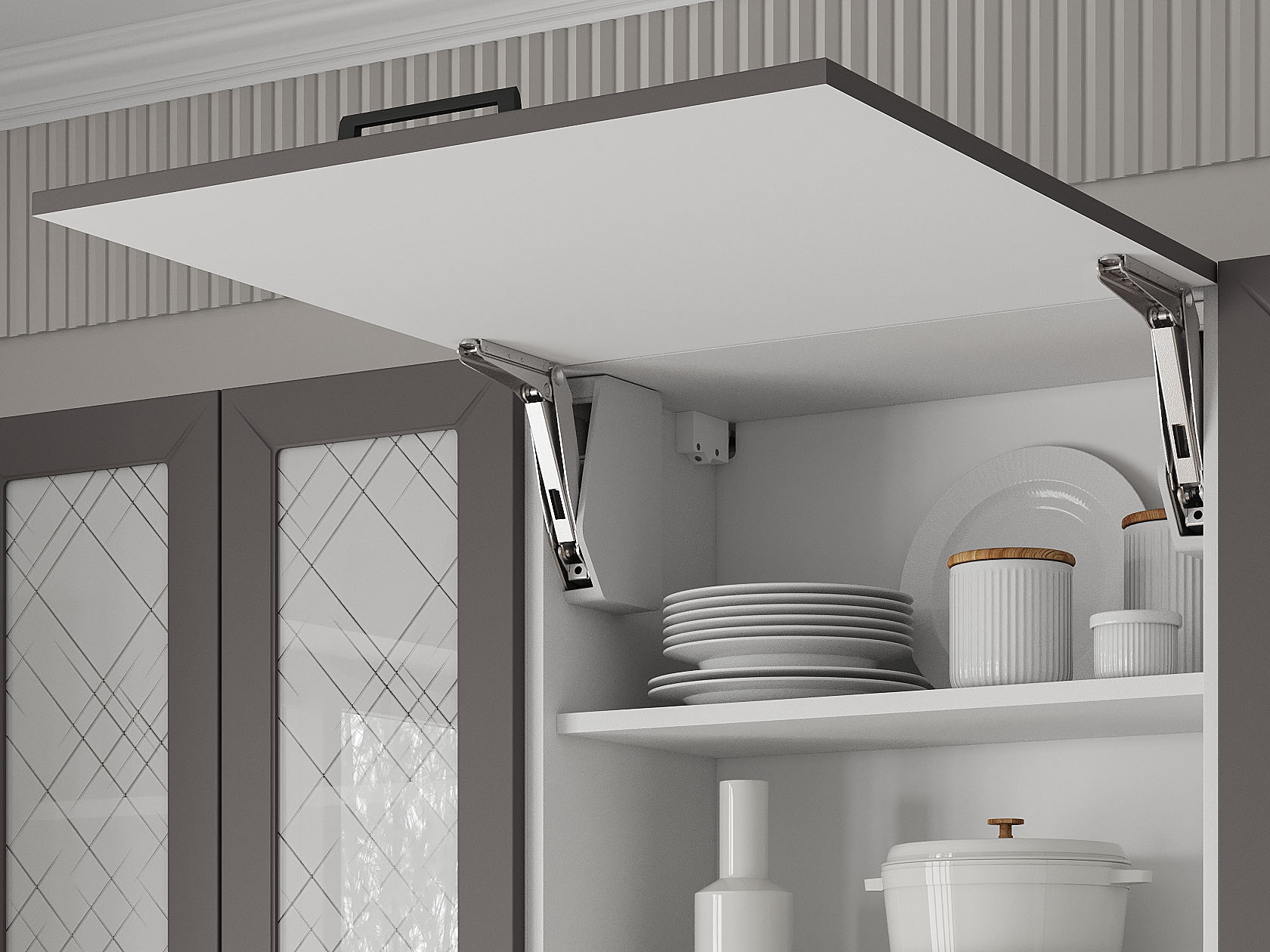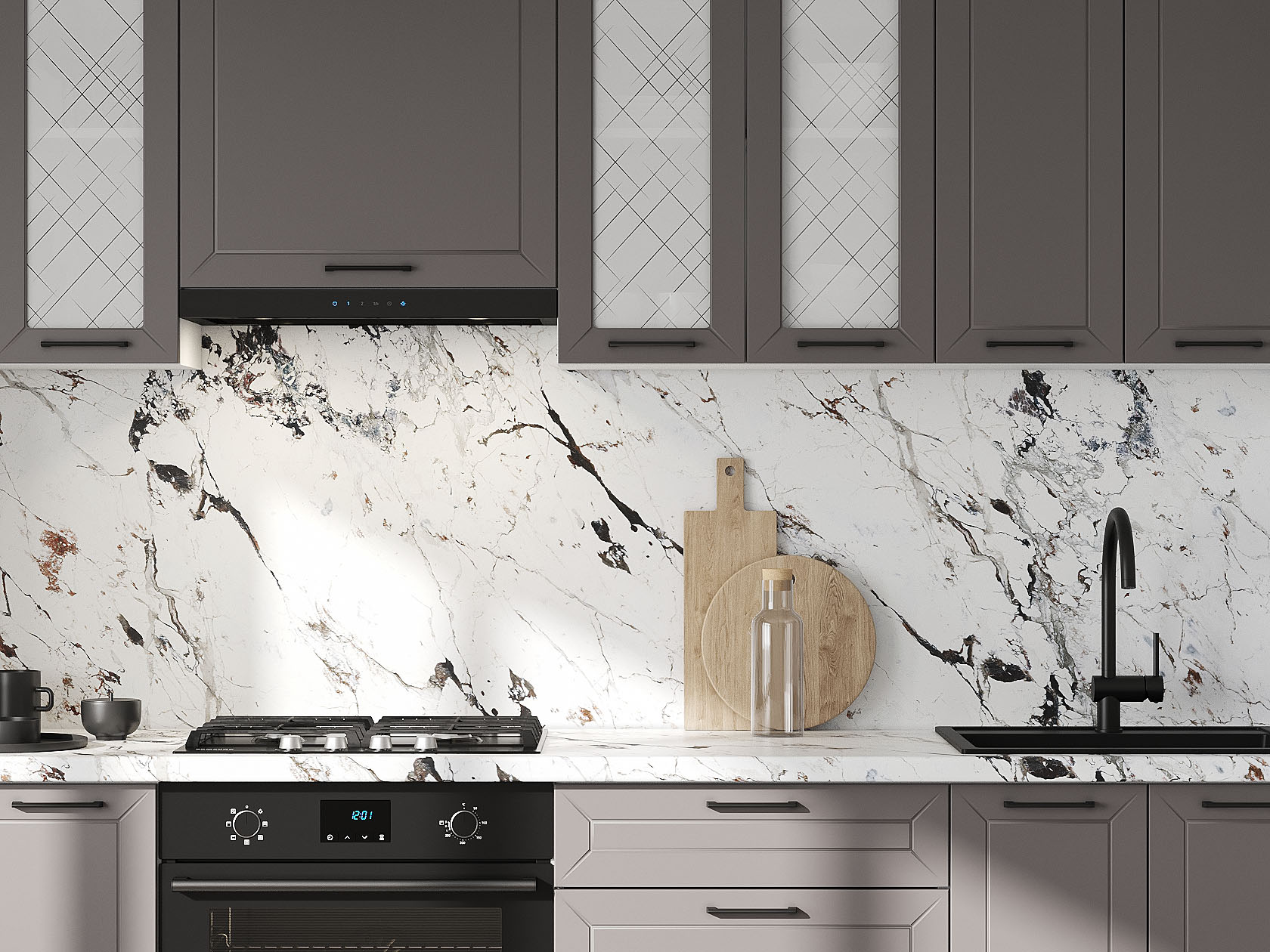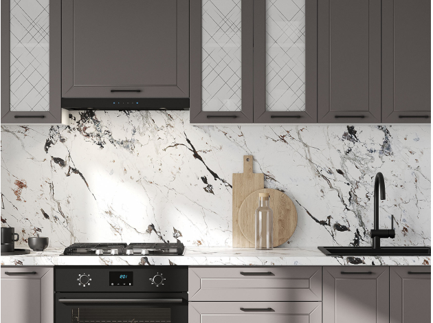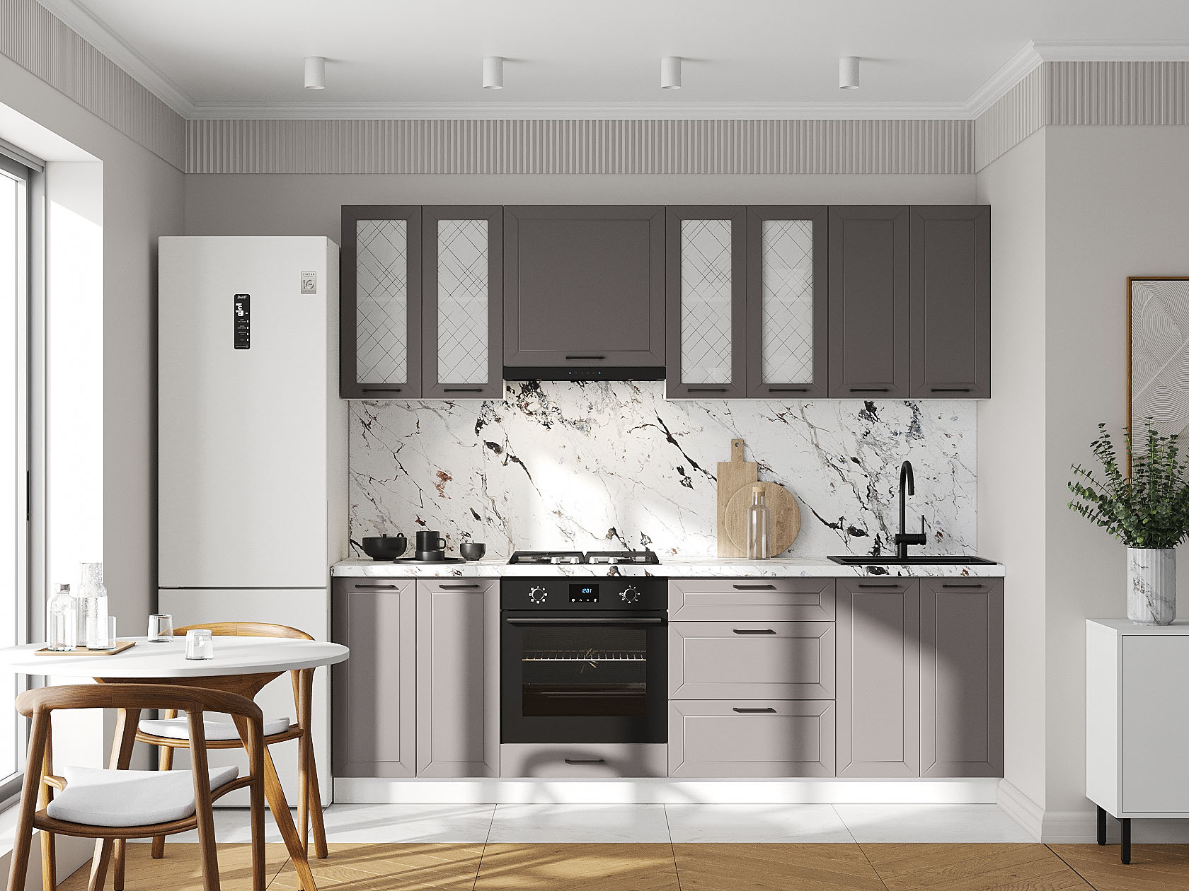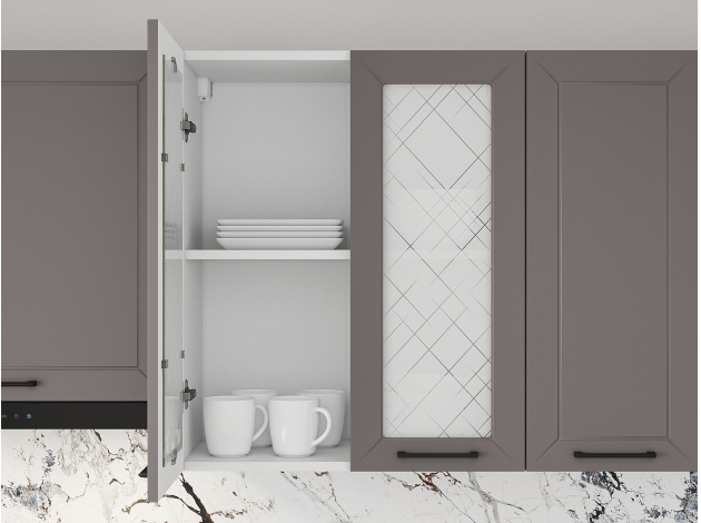 Кухонный гарнитур Вектор 240 см со стеклом Белый / Грей / Стекло