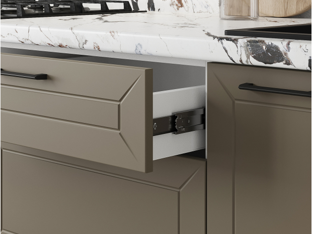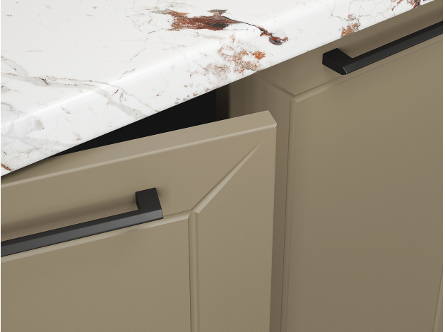 Фасады с внутренней стороны имеют базовые несквозные отверстия под ручки 12,8 см, при желании, можно установить ручки другого размера, просверлив отверстия на фасаде по месту.