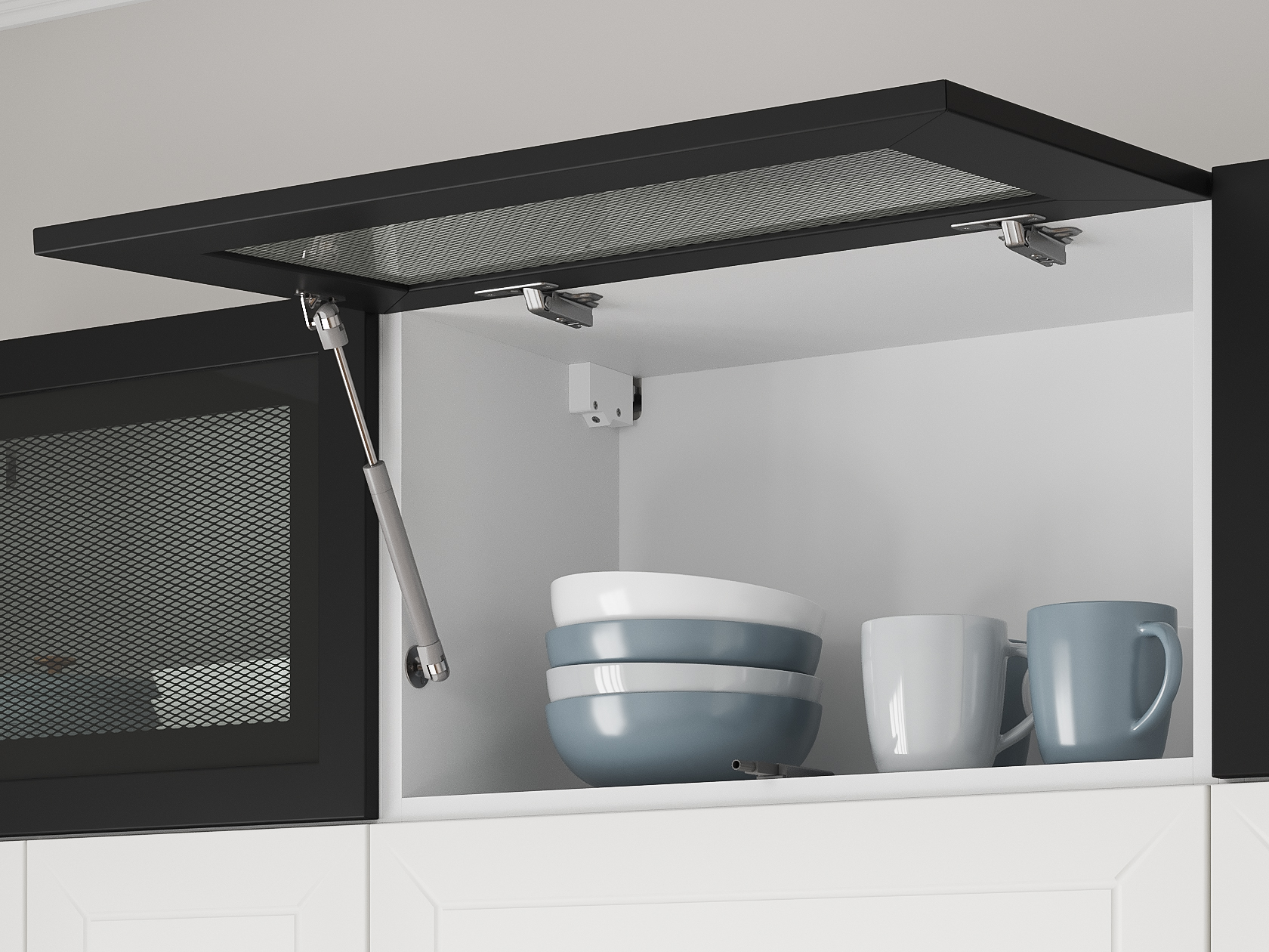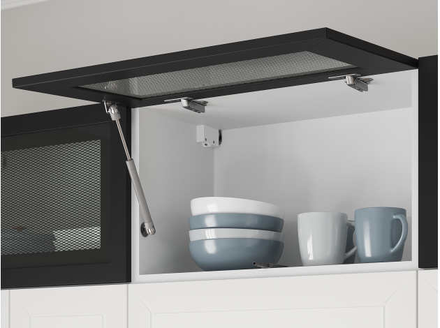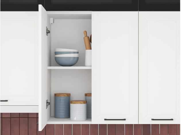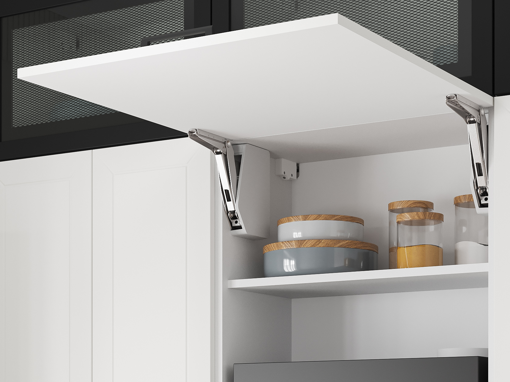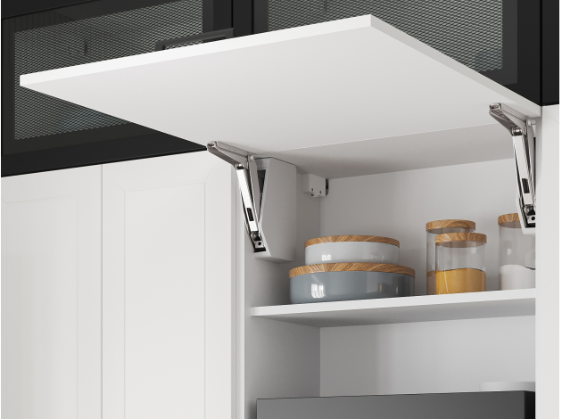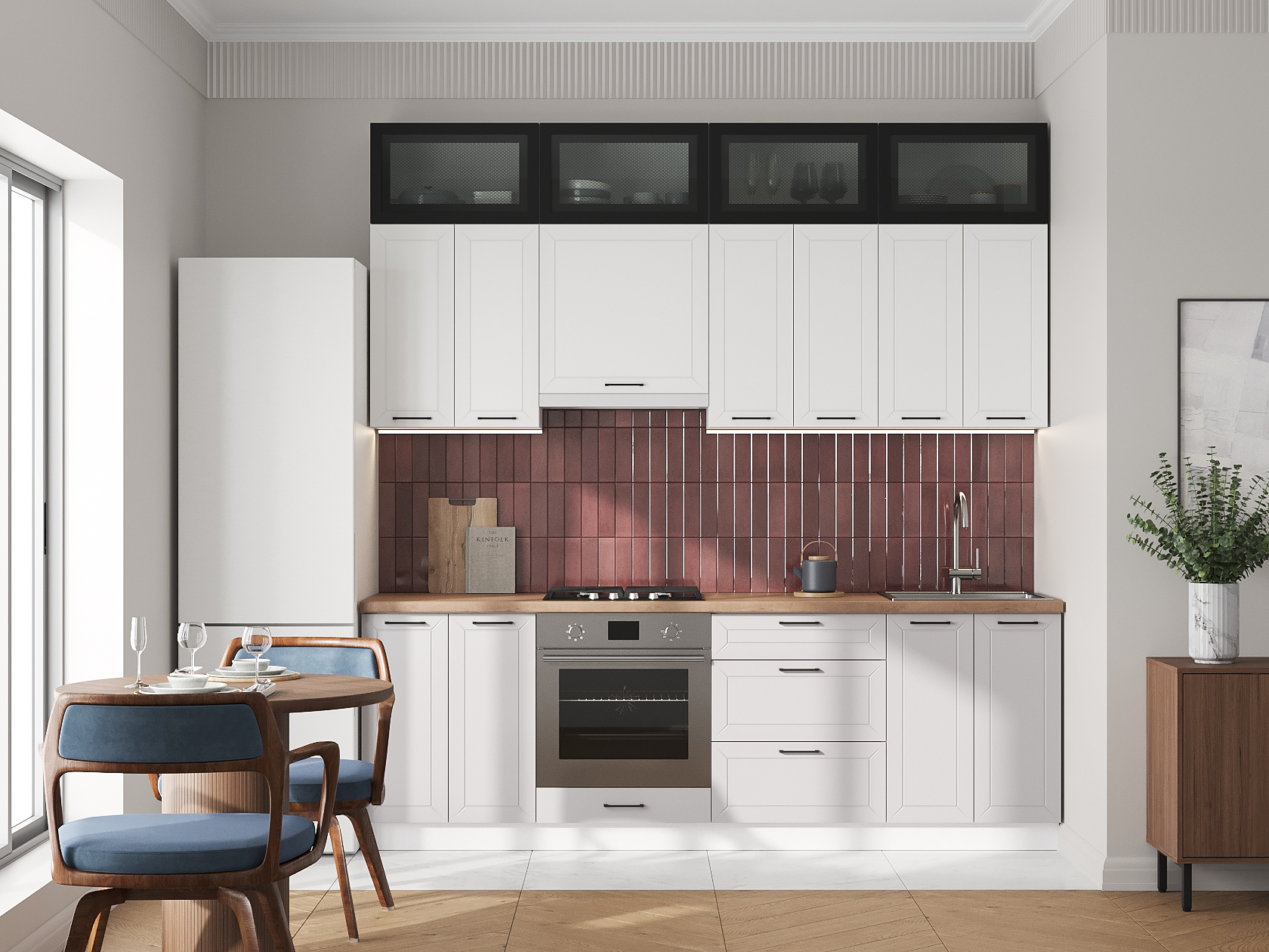 Высокий кухонный гарнитур Вектор 240 см с антресольными шкафами Белый / Бланж / Нео / Черный / Стекло
