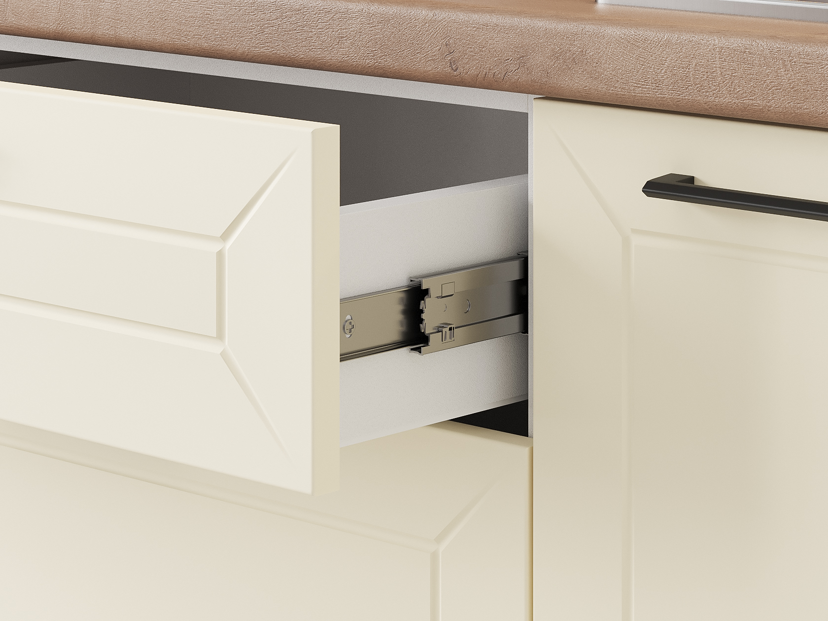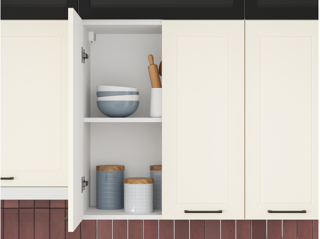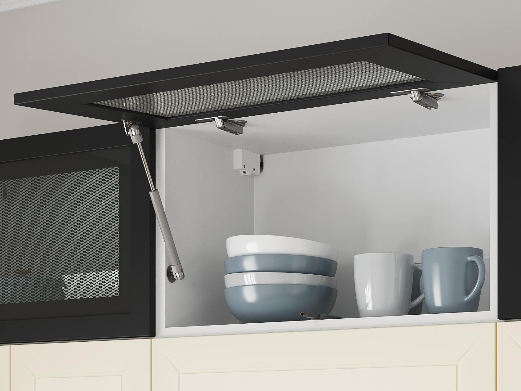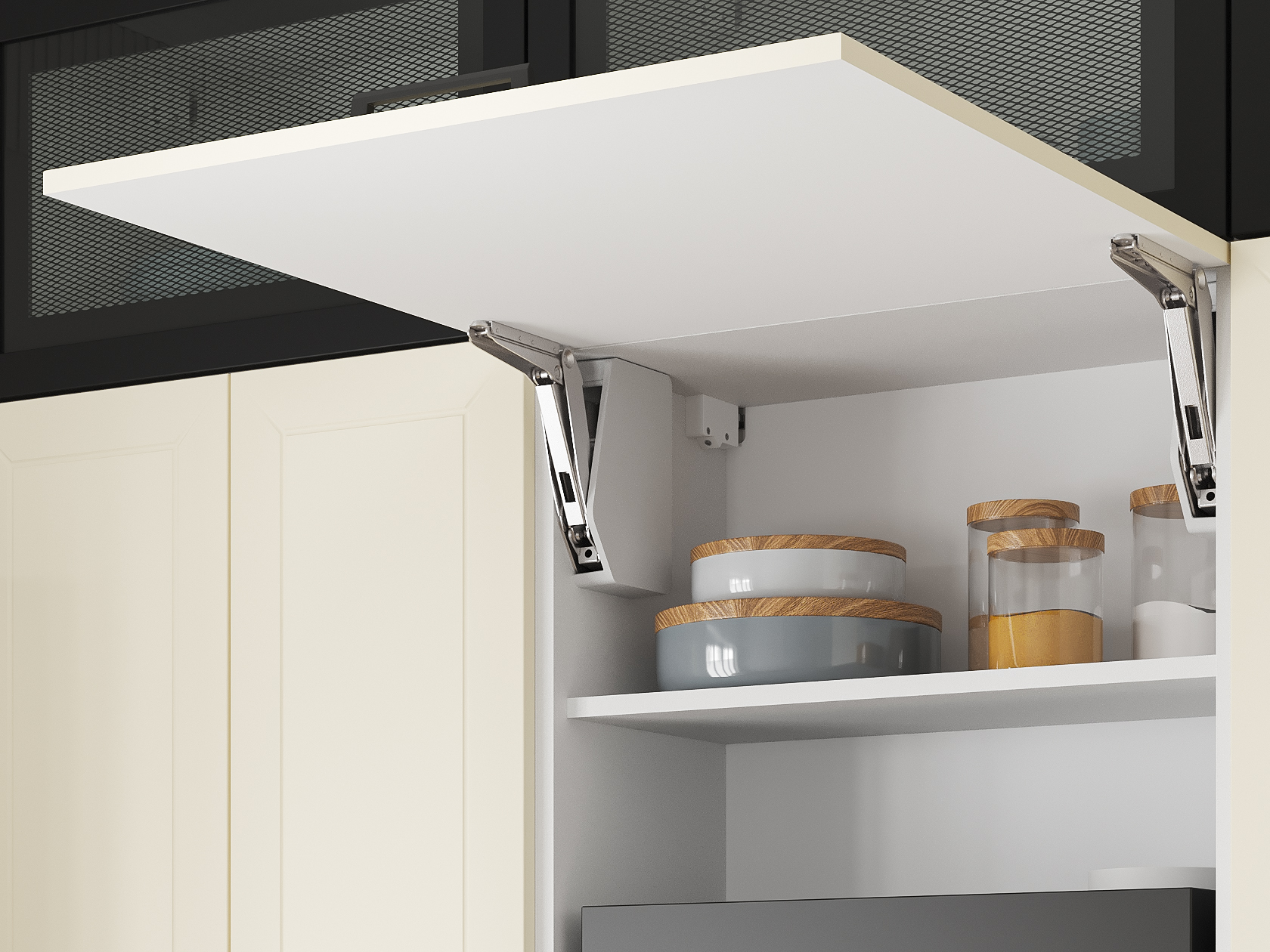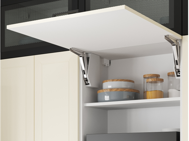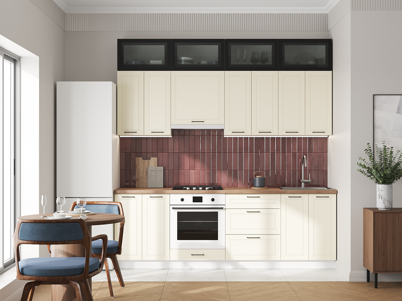 Высокий кухонный гарнитур Вектор 240 см с антресольными шкафами Белый / Магнолия / Черный / Стекло