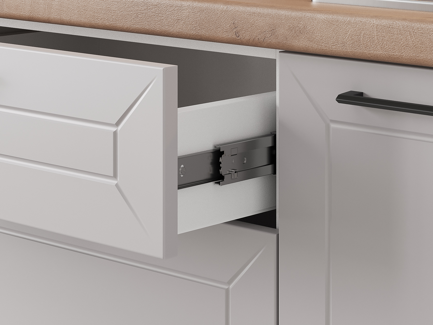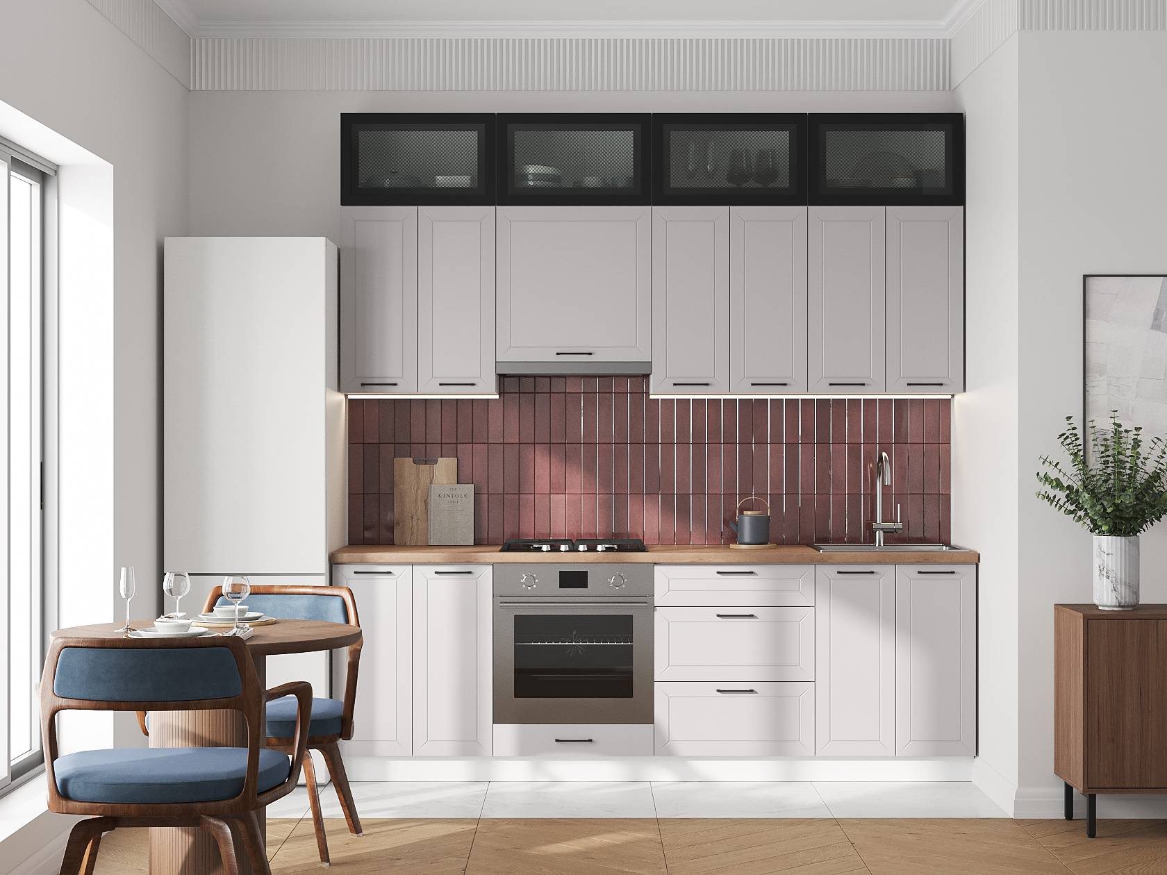 Высокий кухонный гарнитур Вектор 240 см с антресольными шкафами Белый / Нео / Черный / Стекло