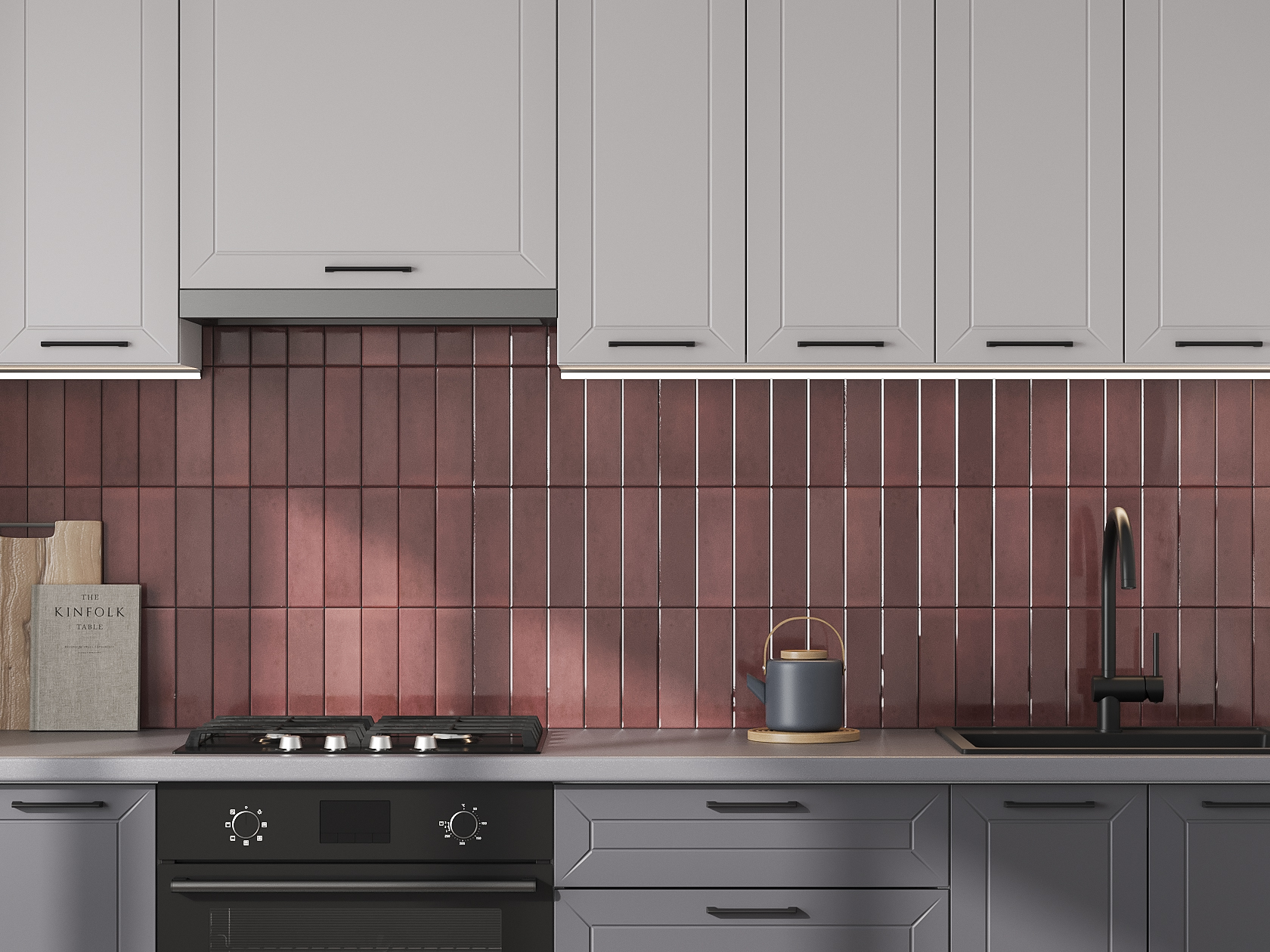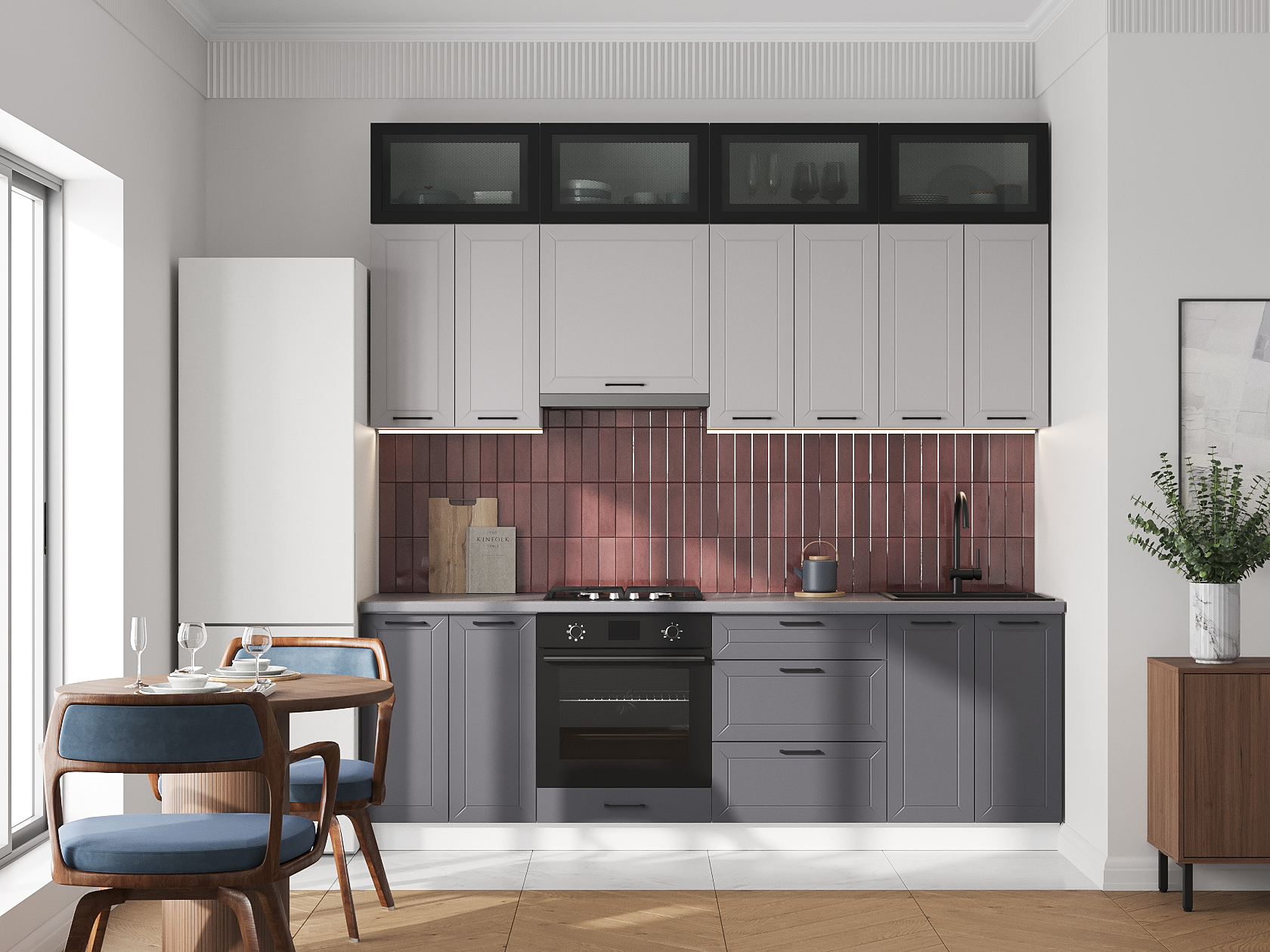 Высокий кухонный гарнитур Вектор 240 см с антресольными шкафами Белый / Нео / Графит / Черный / Стекло