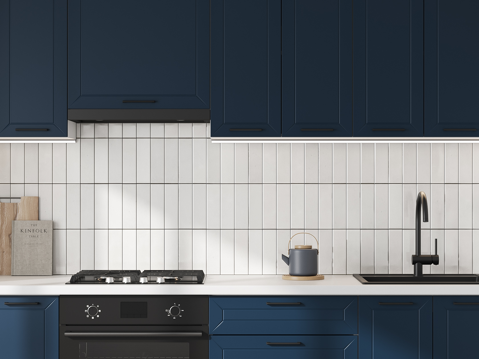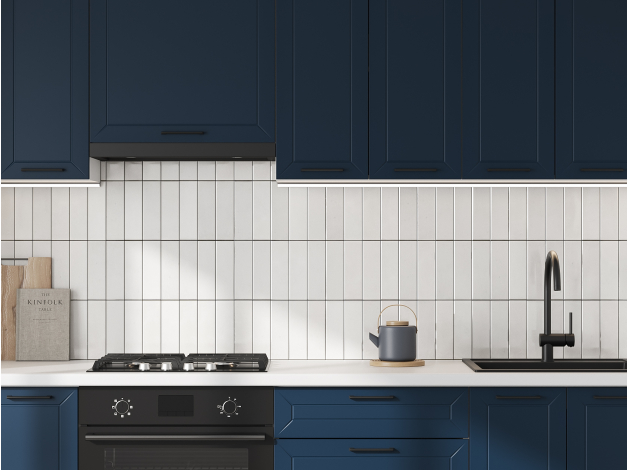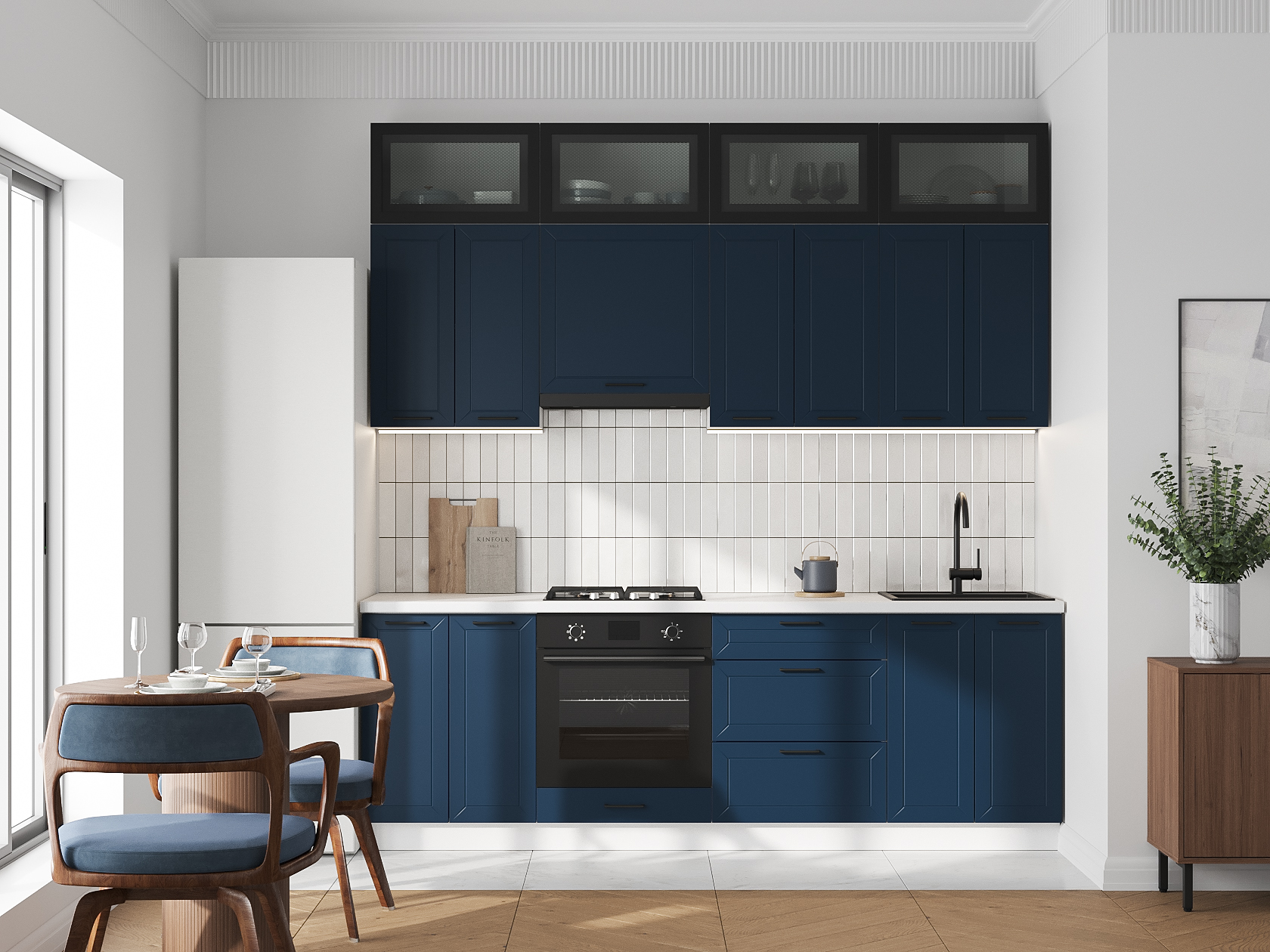Высокий кухонный гарнитур Вектор 240 см с антресольными шкафами Белый / Океания / Черный / Стекло