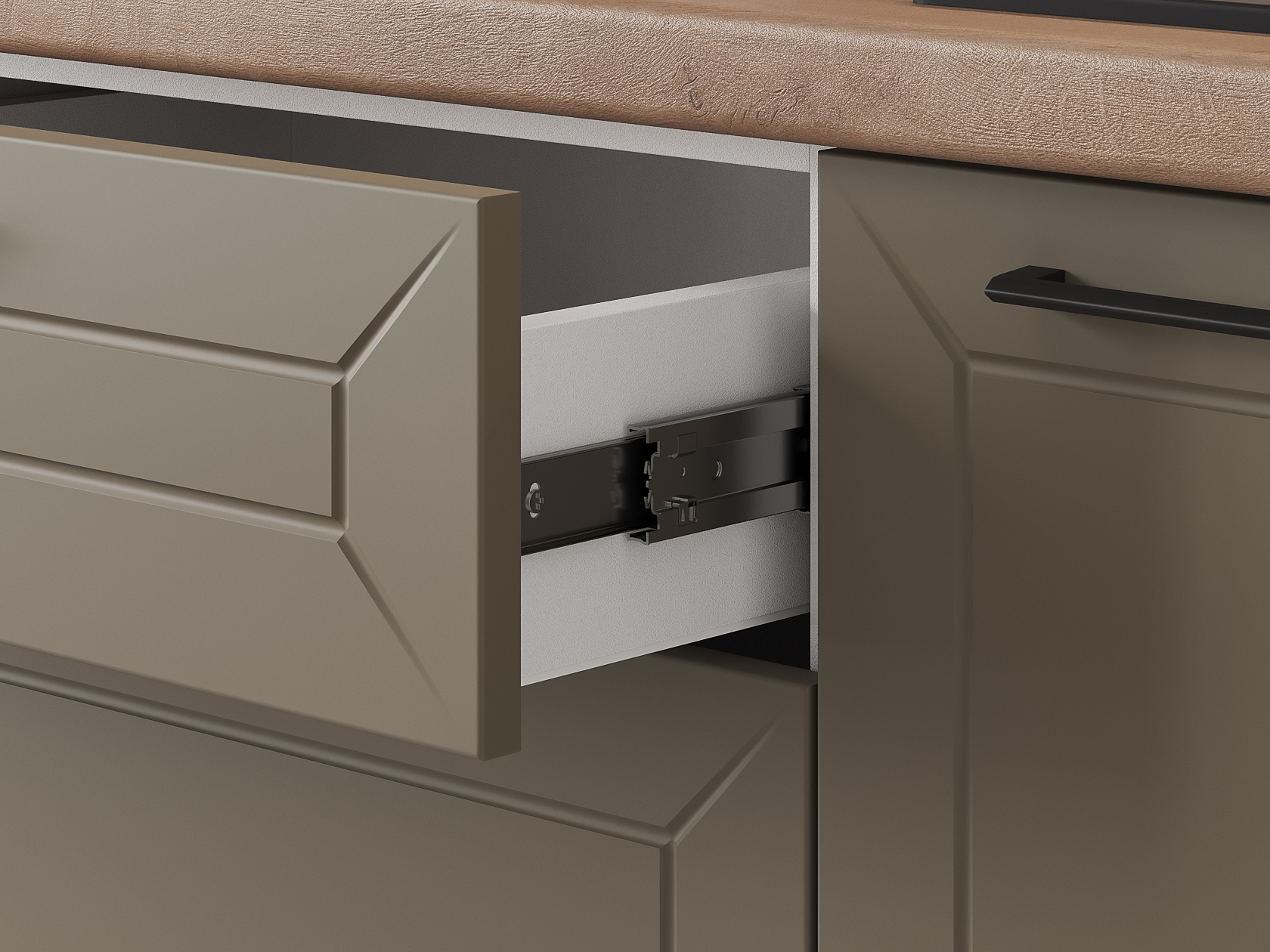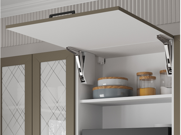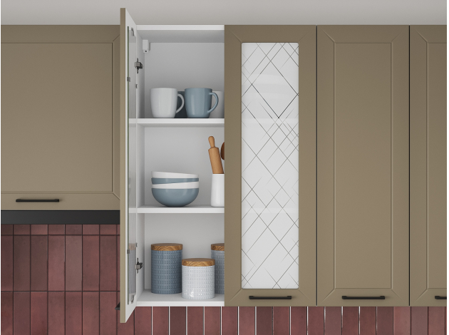 Высокий кухонный гарнитур со стеклом Вектор 240 см Белый / Базальт со стеклом