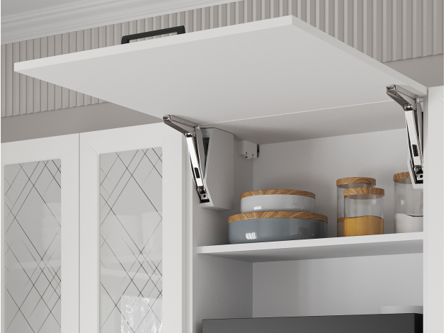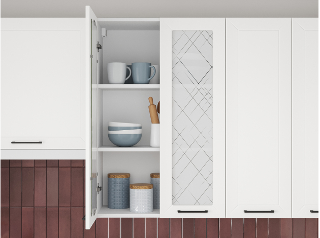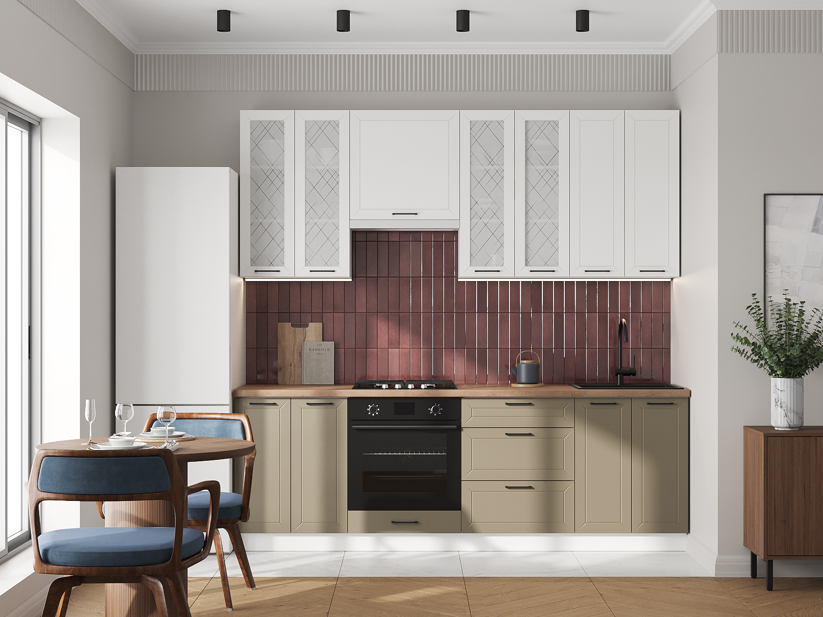 Высокий кухонный гарнитур со стеклом Вектор 240 см Белый / Бланж / Базальт / Стекло