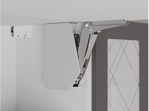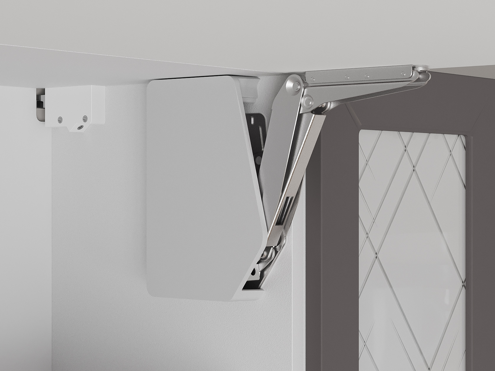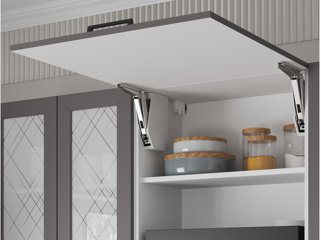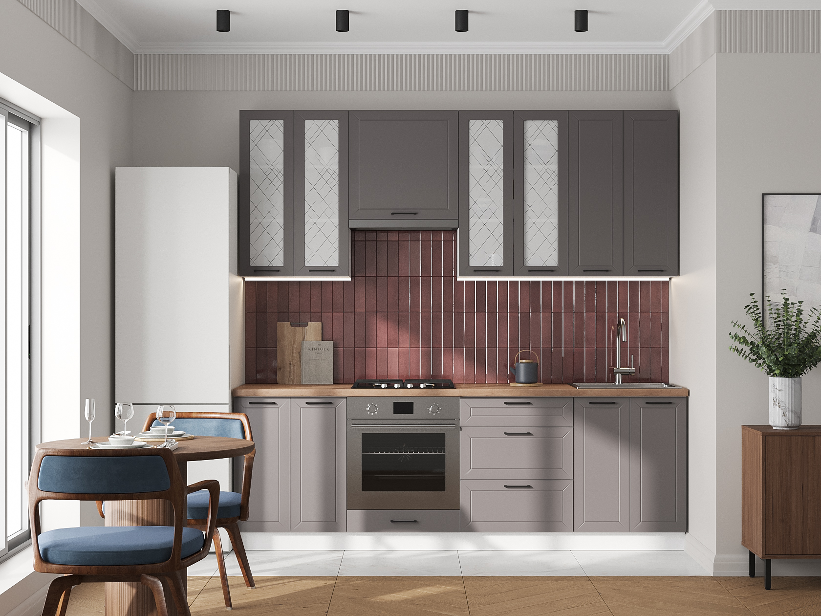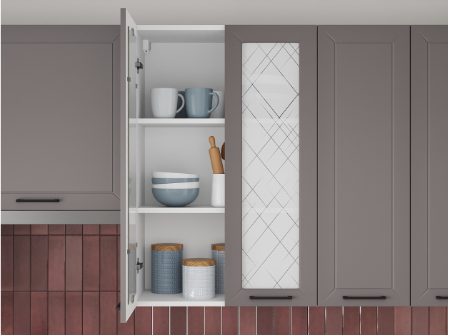 Высокий кухонный гарнитур со стеклом Вектор 240 см Белый / Грей со стеклом