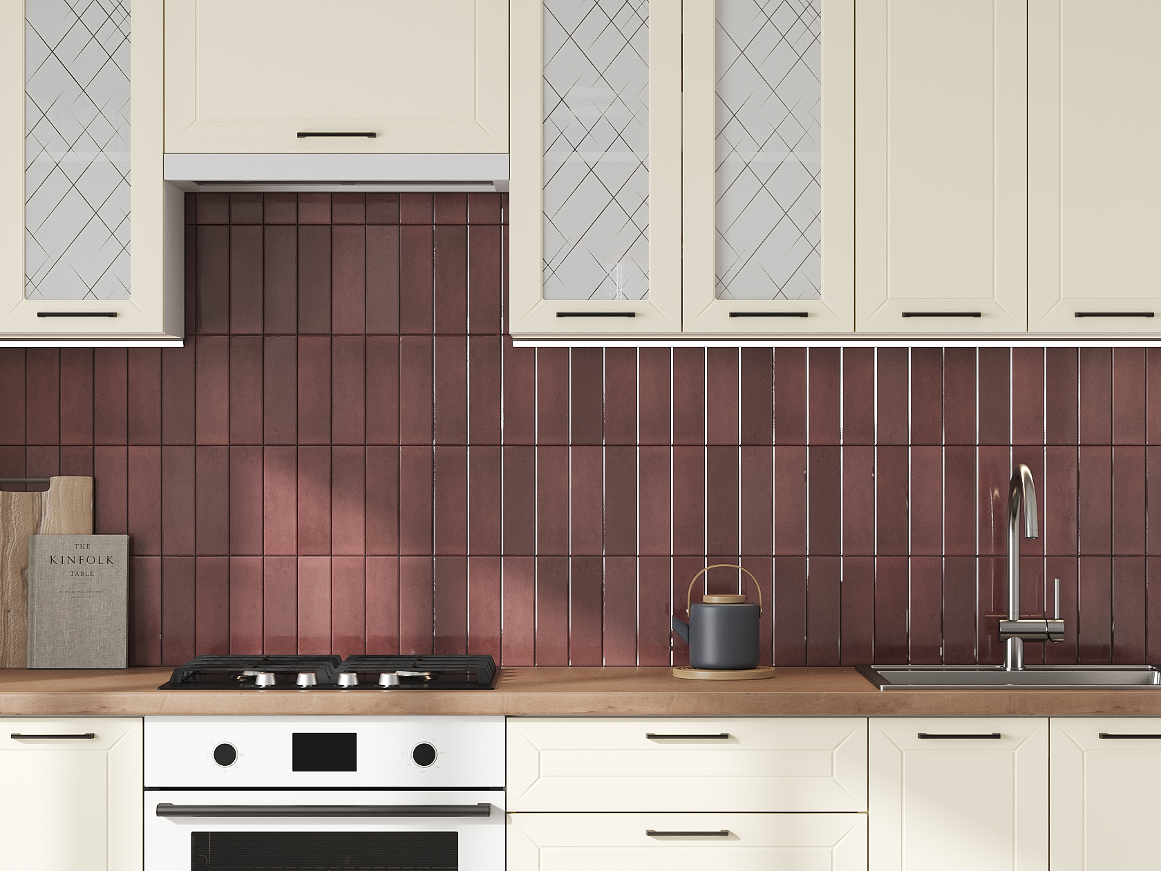 Высокий кухонный гарнитур со стеклом Вектор 240 см Белый / Магнолия / Стекло