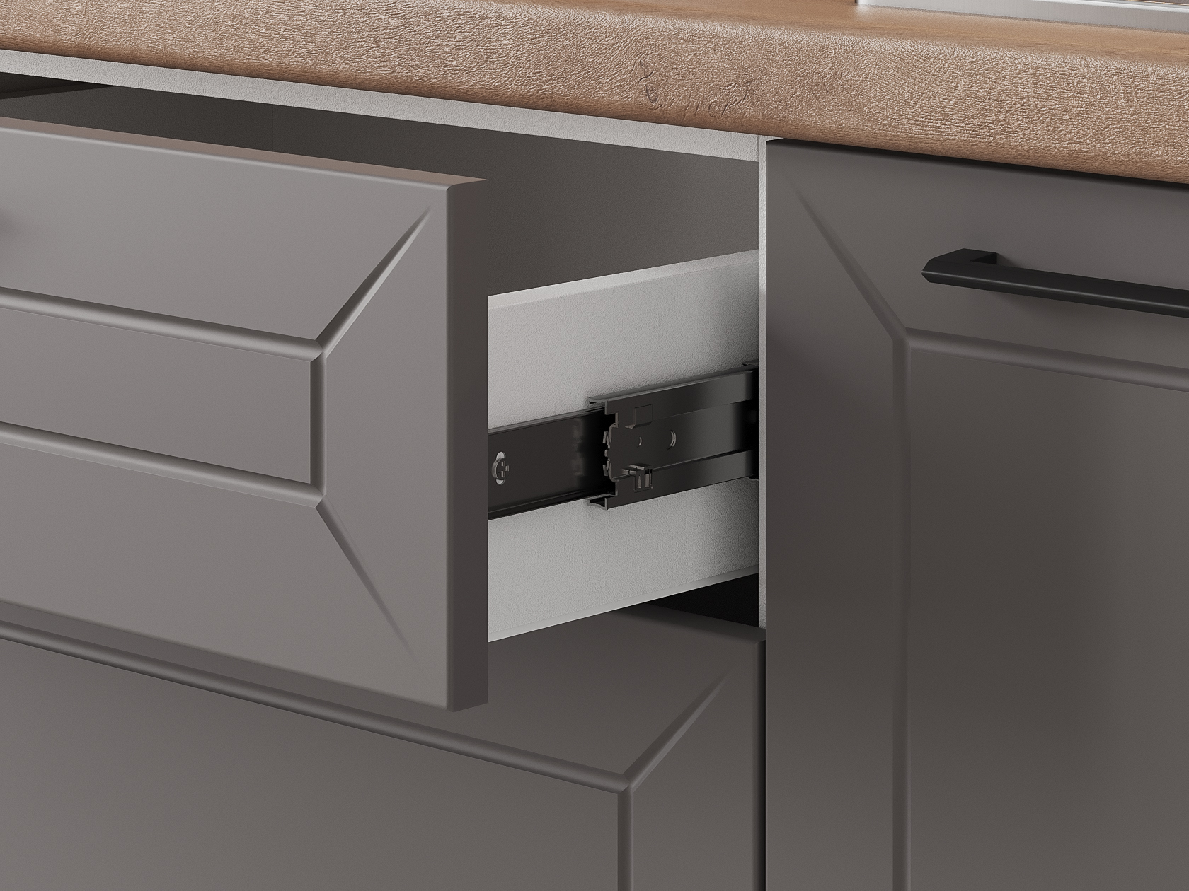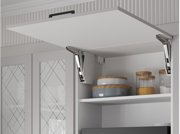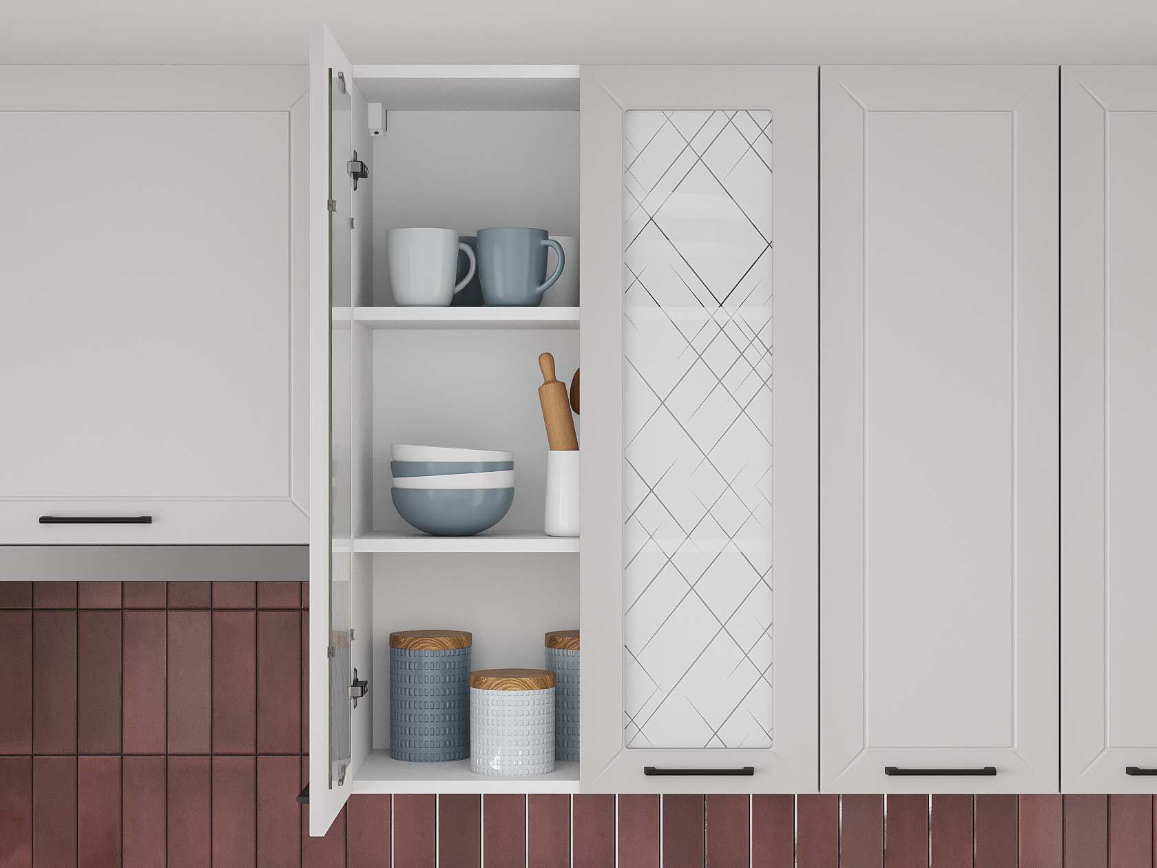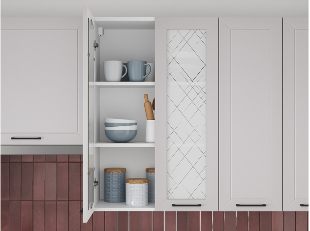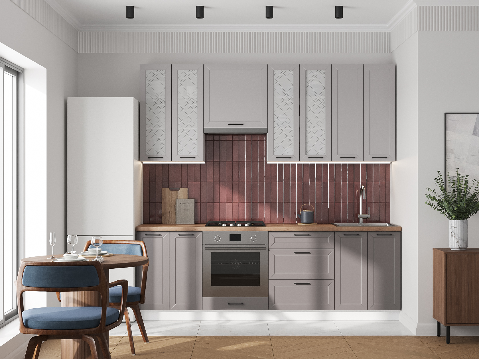 Высокий кухонный гарнитур со стеклом Вектор 240 см Белый / Нео / Грей / Стекло