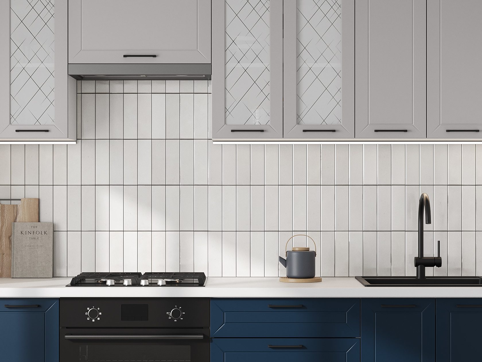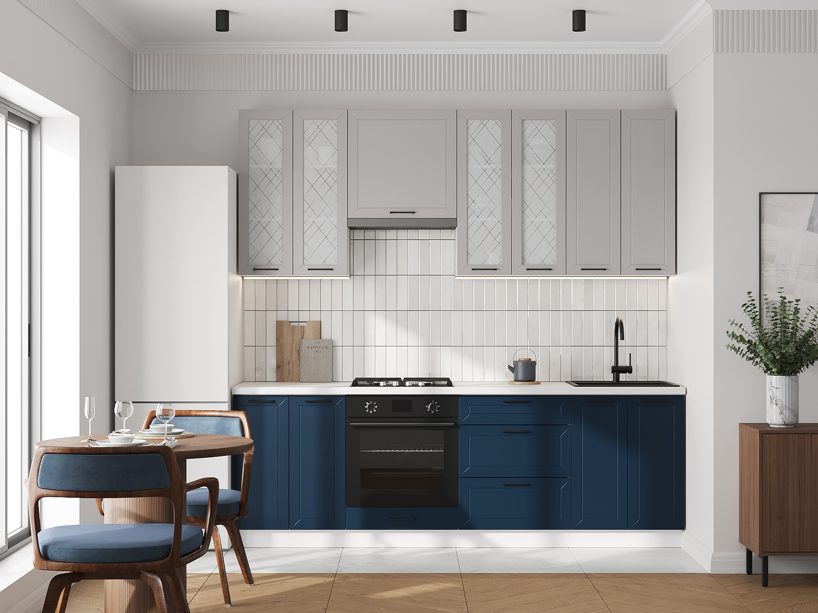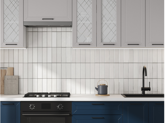 Высокий кухонный гарнитур со стеклом Вектор 240 см Белый / Нео / Океания / Стекло