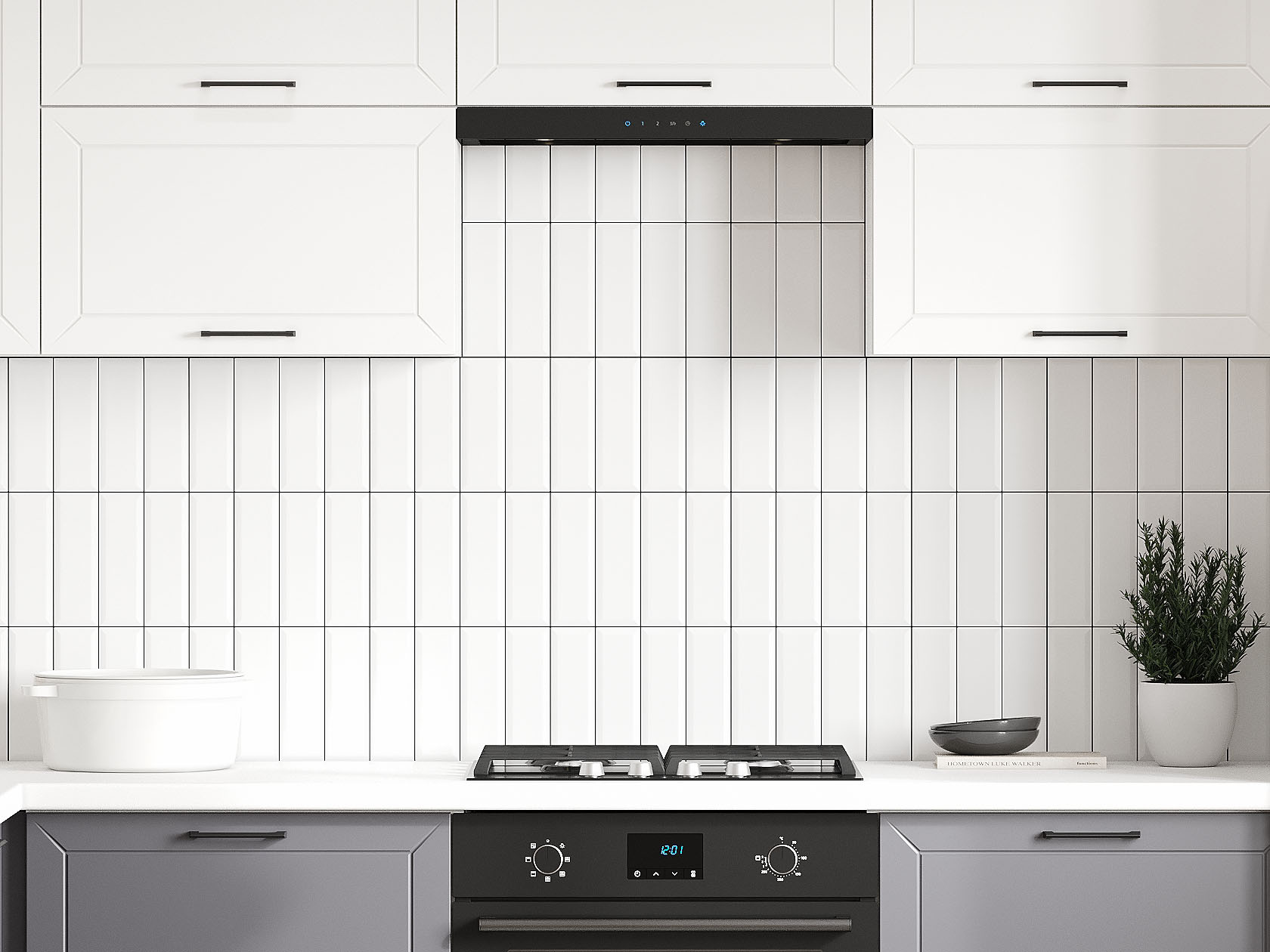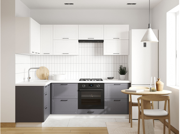 Кухонный гарнитур Вектор 240х140 см Белый / Графит / Бланж