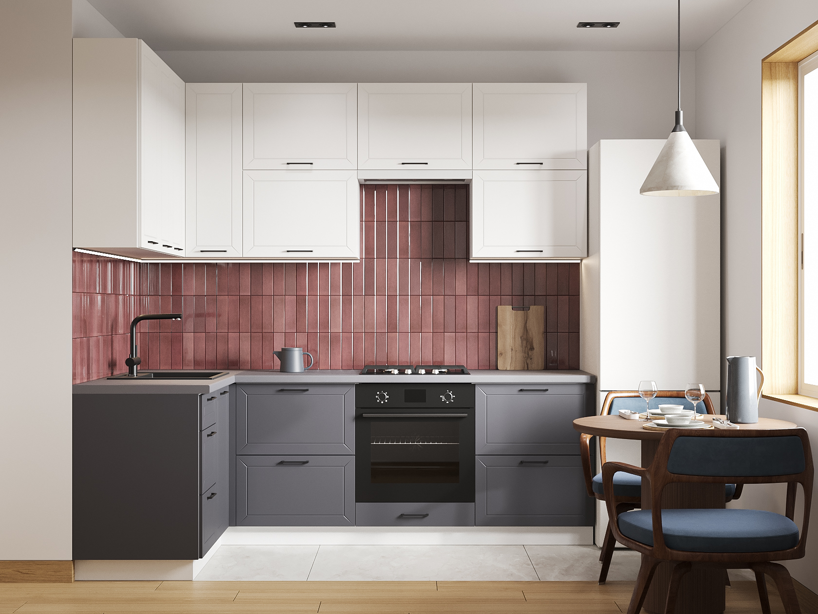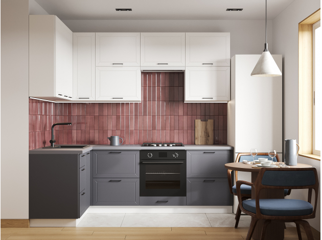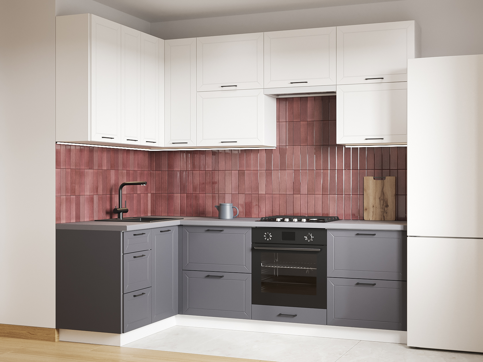 Высокий кухонный гарнитур Вектор 240х140 см Белый / Бланж / Графит