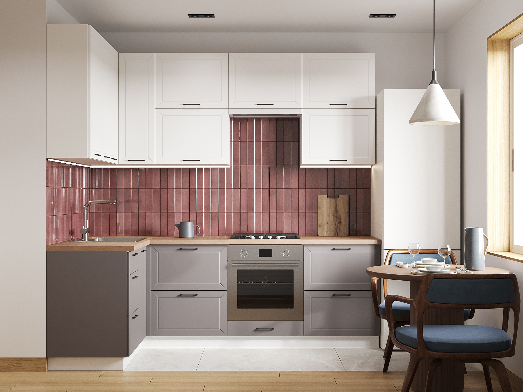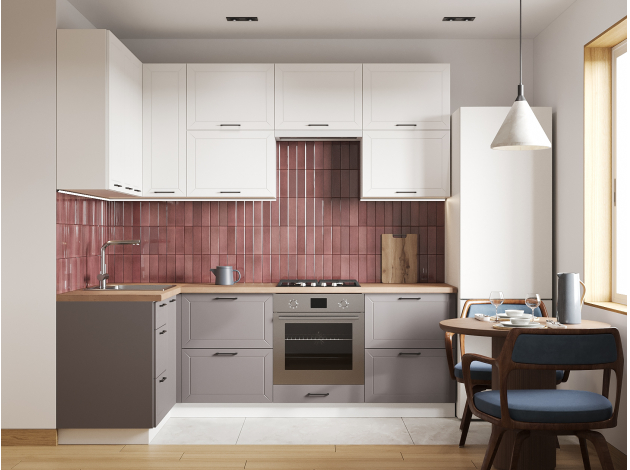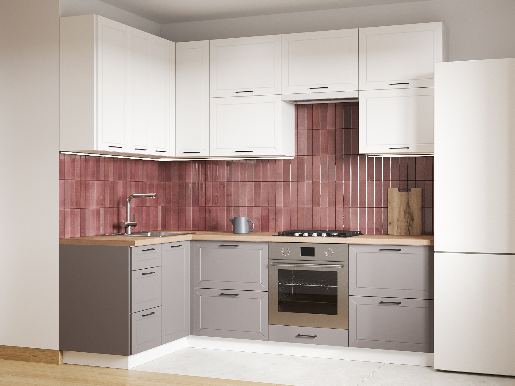 Высокий кухонный гарнитур Вектор 240х140 см Белый / Бланж / Грей