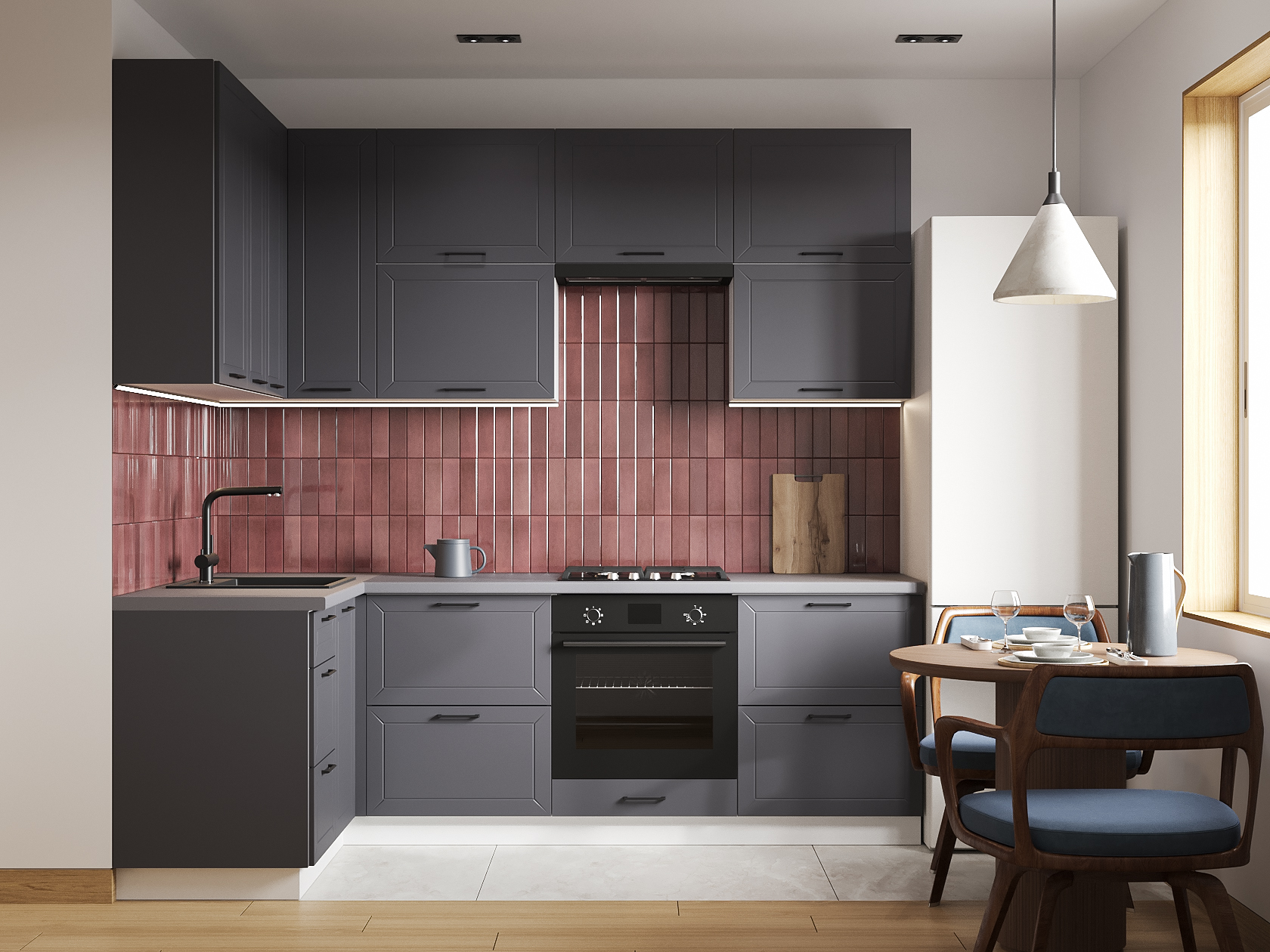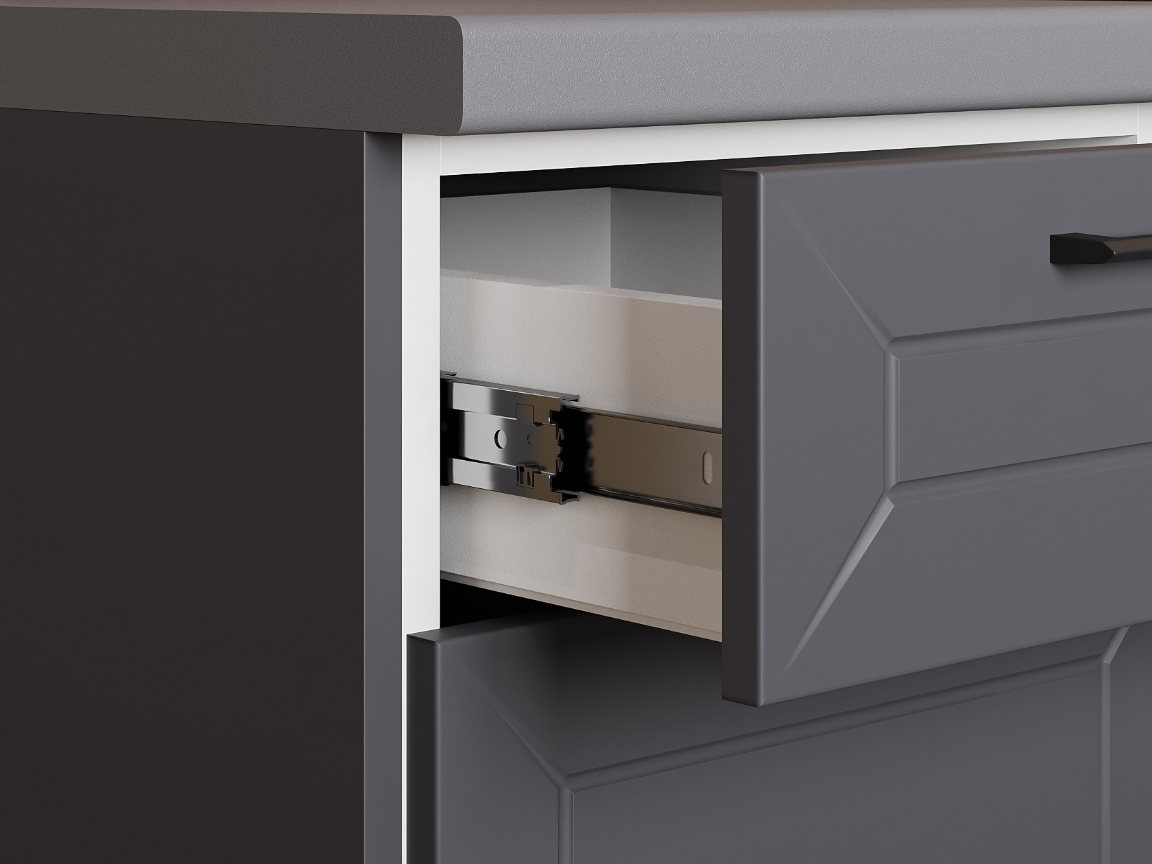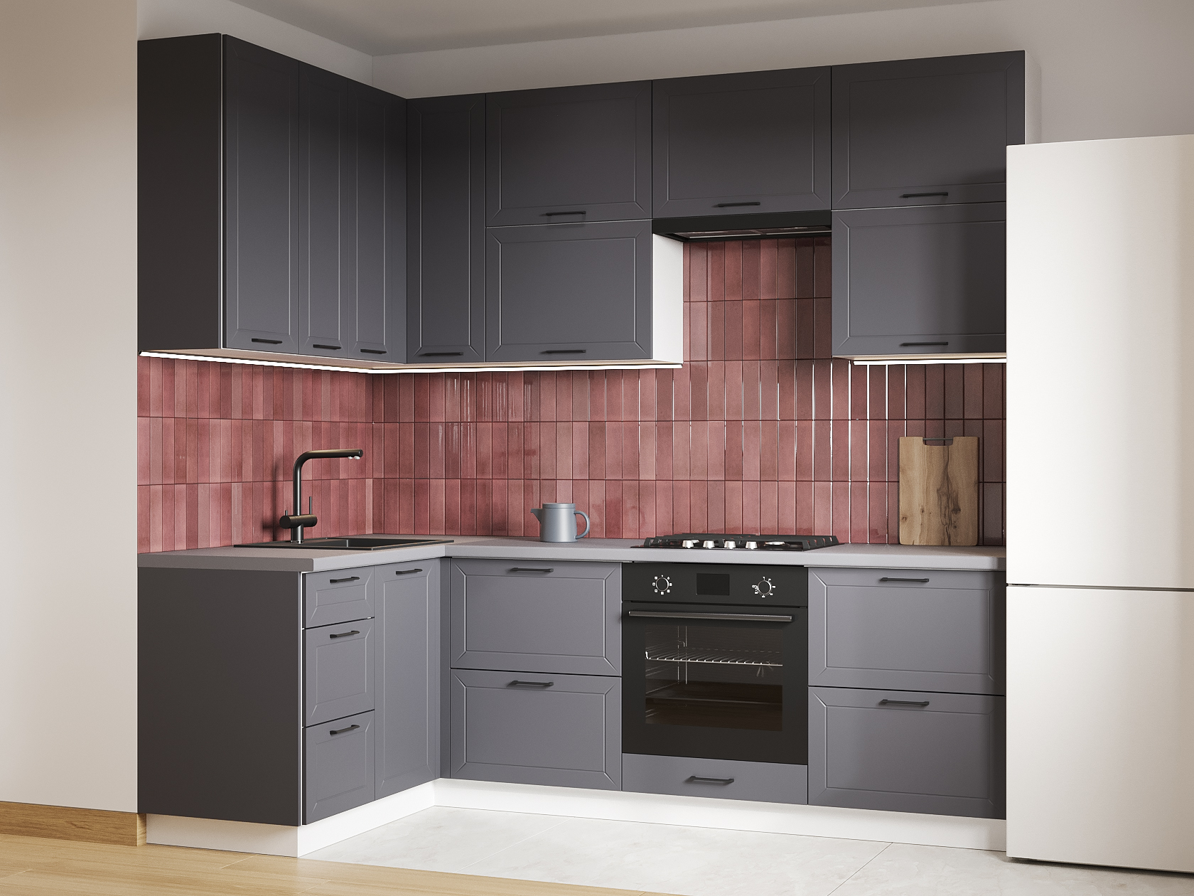 Высокий кухонный гарнитур Вектор 240х140 см Белый / Графит