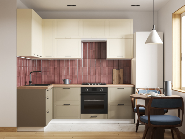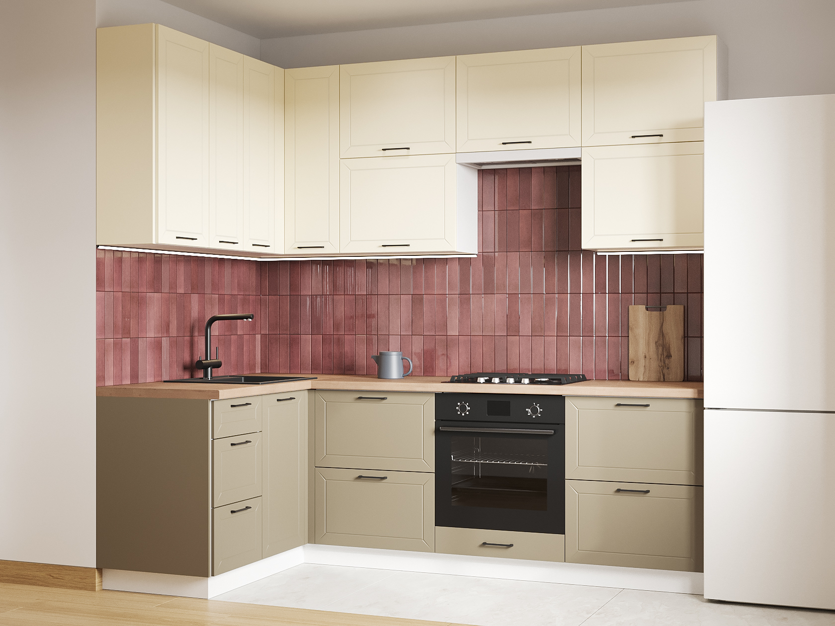 Высокий кухонный гарнитур Вектор 240х140 см Белый / Магнолия / Базальт