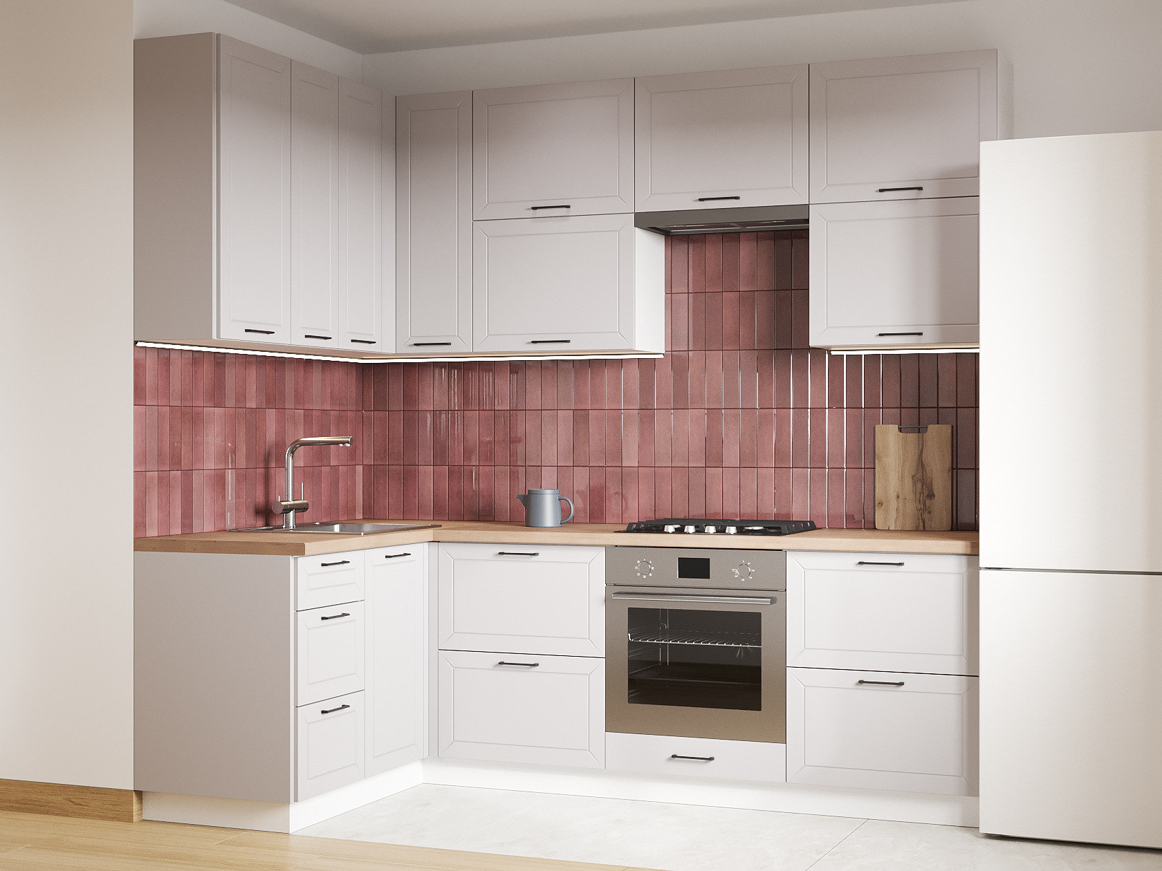 Высокий кухонный гарнитур Вектор 240х140 см Белый / Нео