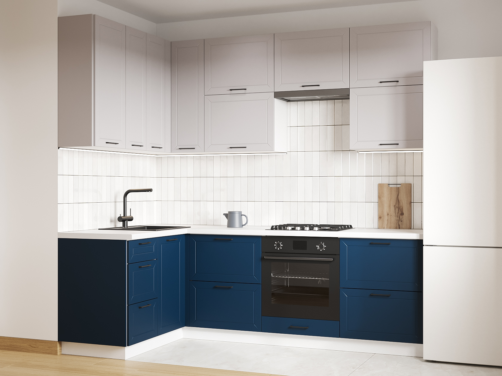 Высокий кухонный гарнитур Вектор 240х140 см Белый / Нео / Океания
