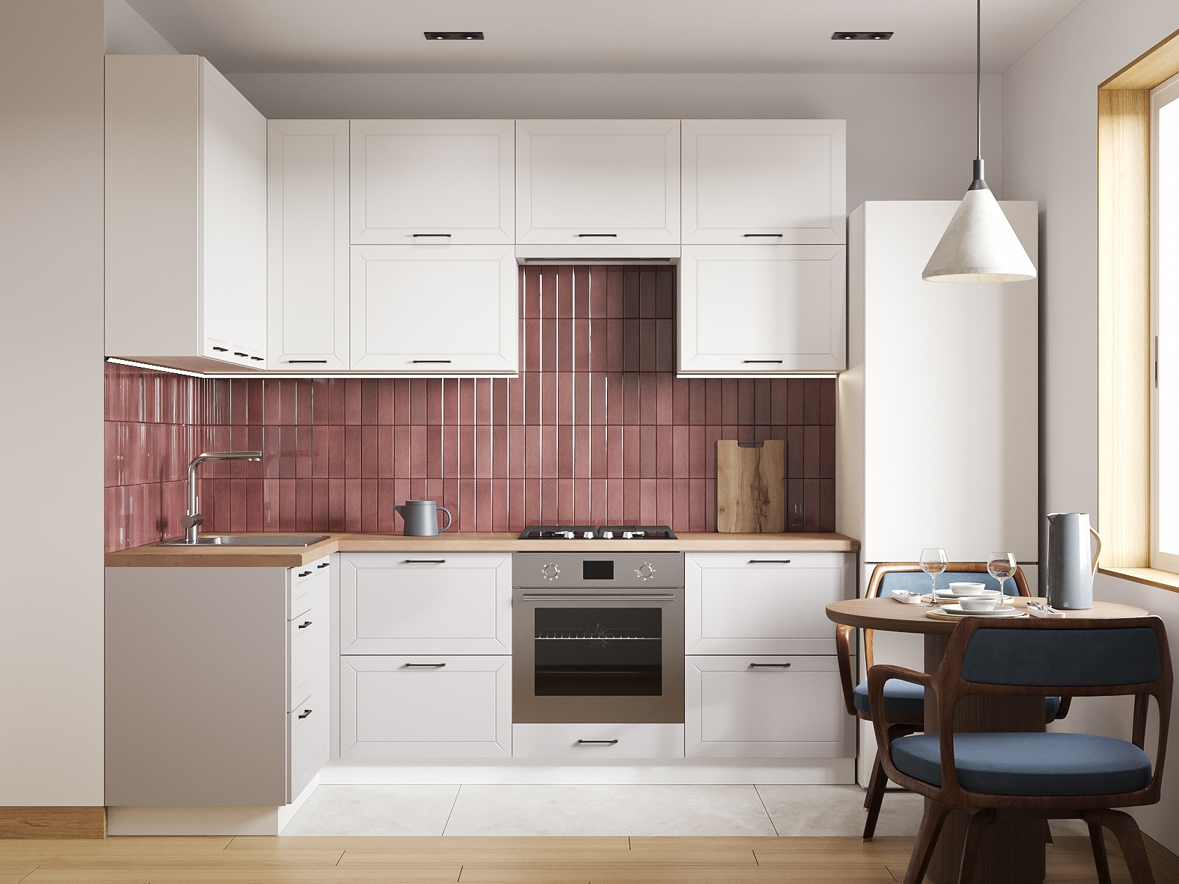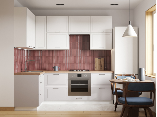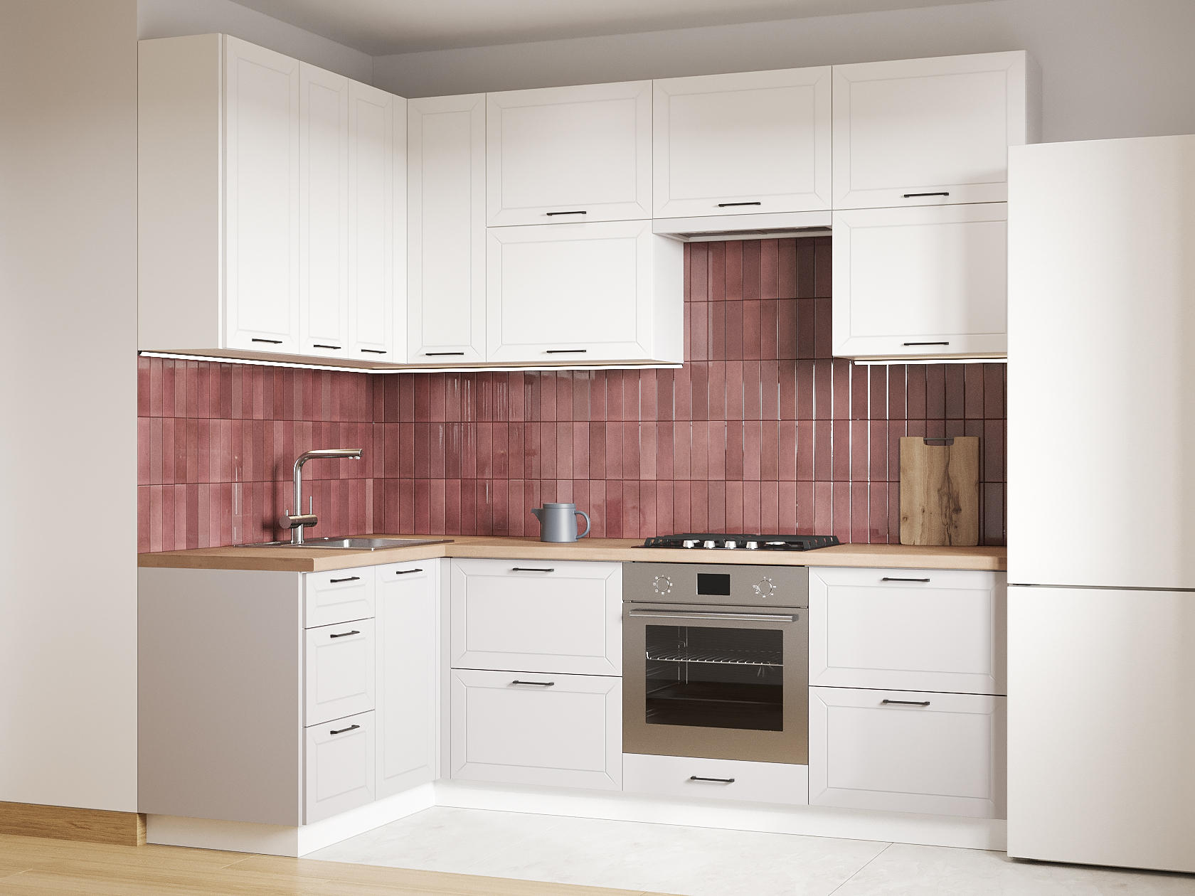 Высокий кухонный гарнитур Вектор 240х140 см Белый / Бланж / Нео