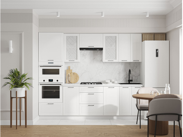Кухонный гарнитур Вектор 260 см с антресолью Белый / Бланж / Стекло