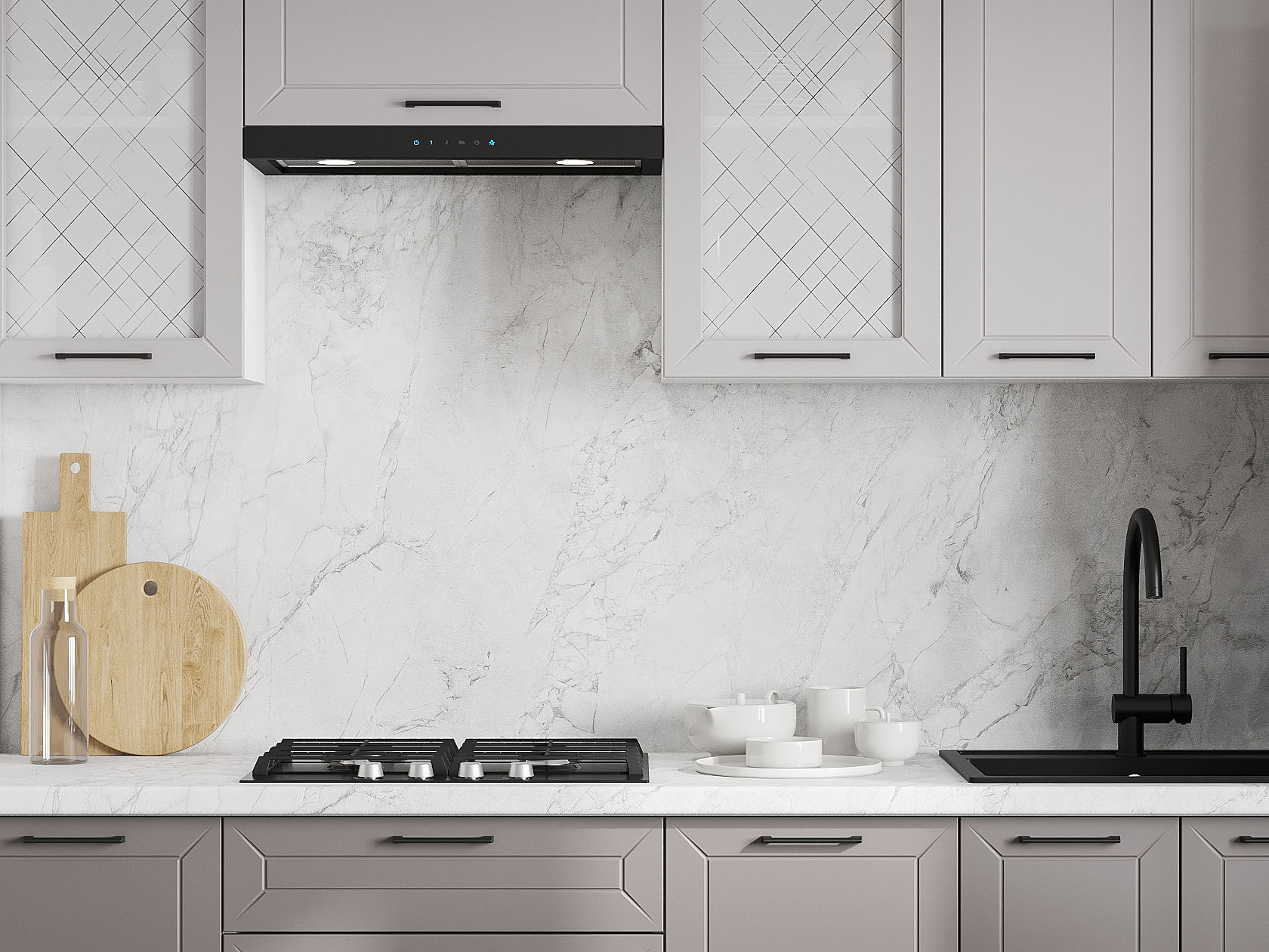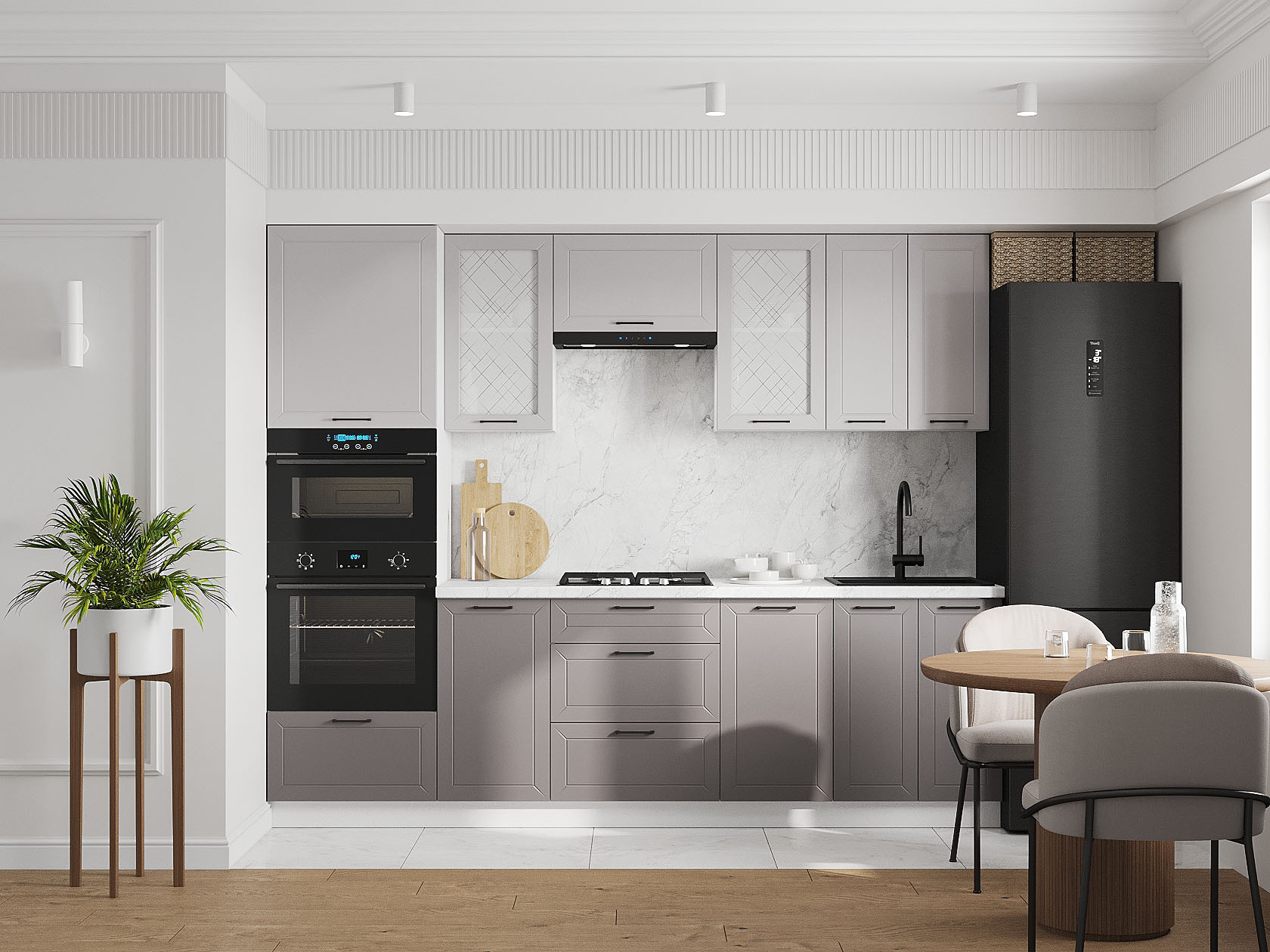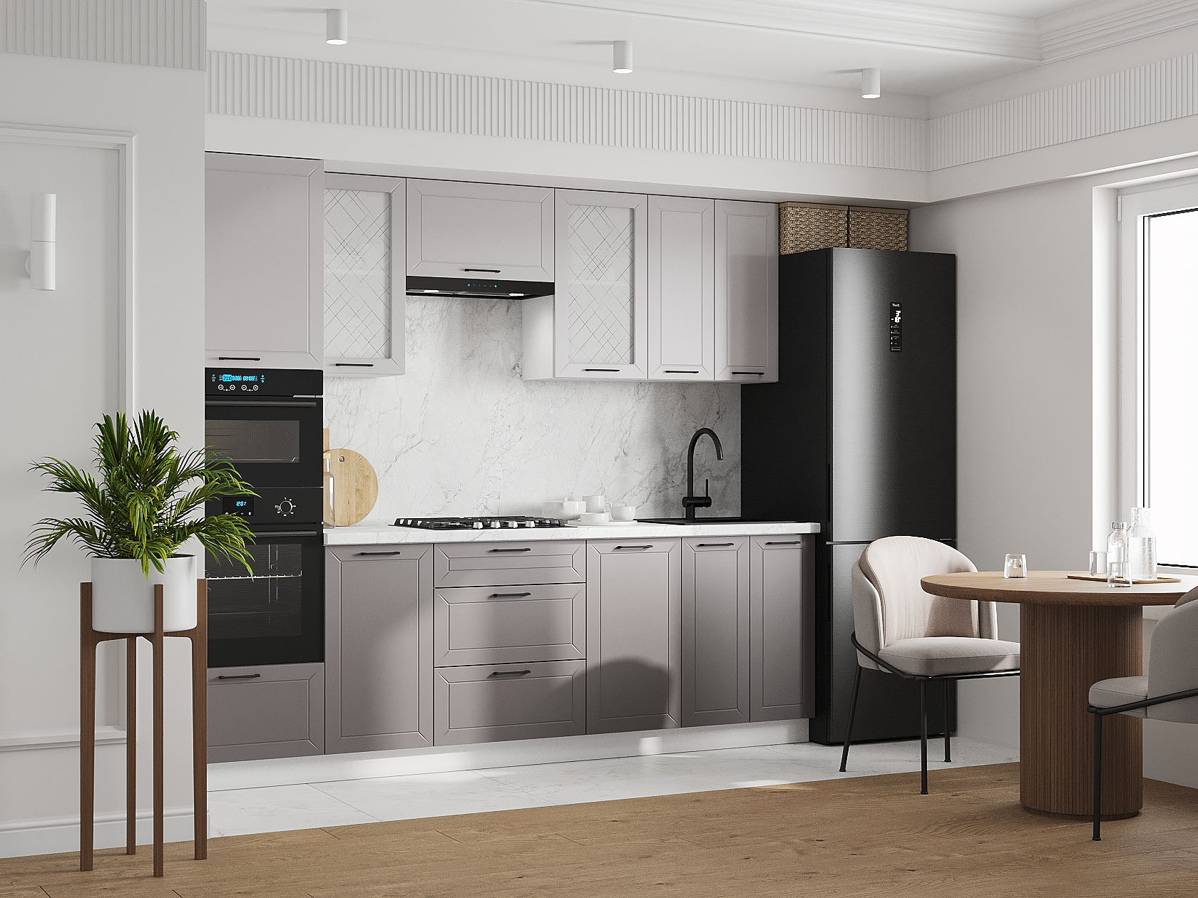 Кухонный гарнитур Вектор 260 см с антресолью Белый / Грей / Нео / Стекло