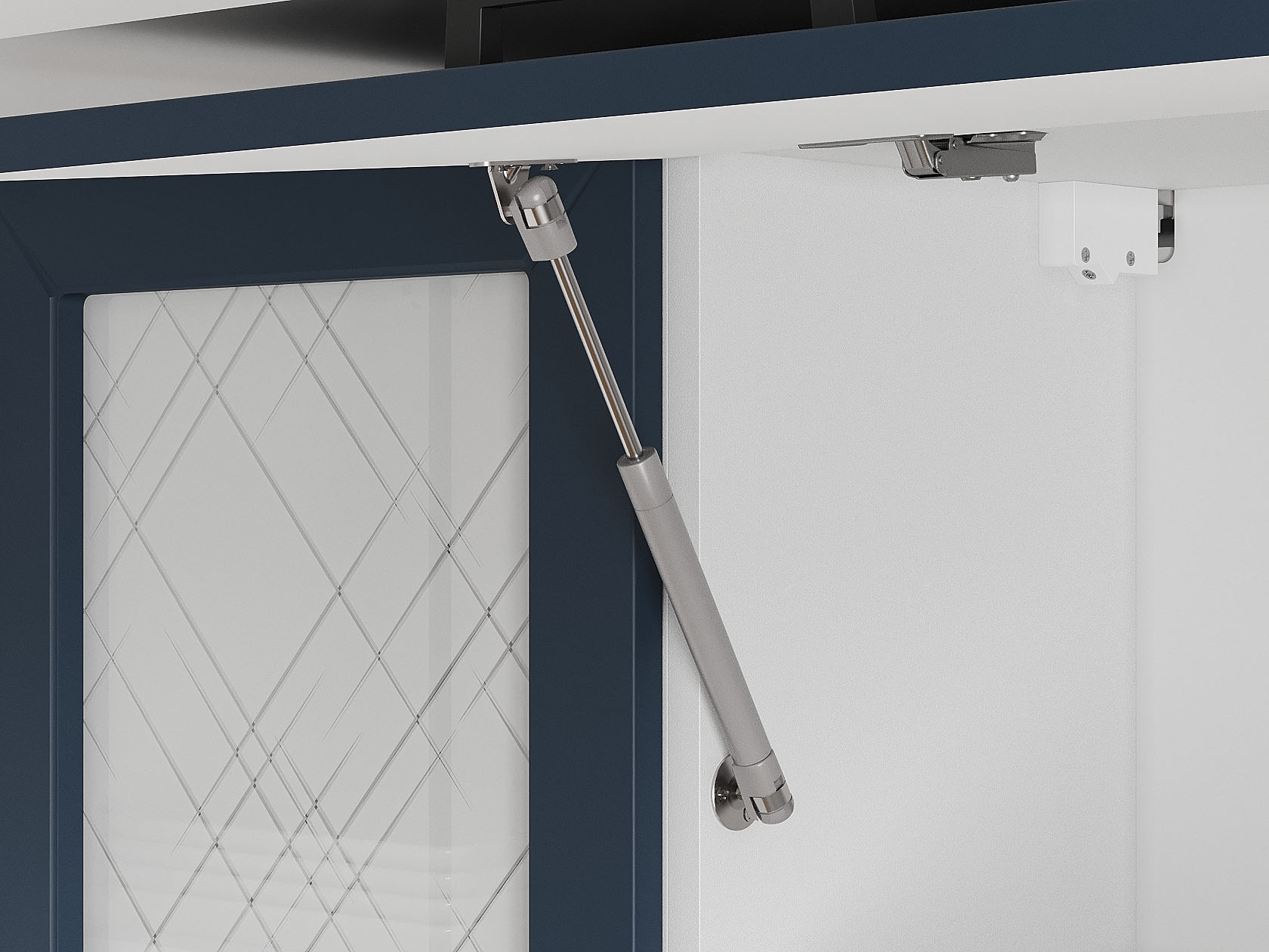 Кухонный гарнитур Вектор 260 см с антресолью Белый / Океания / Стекло