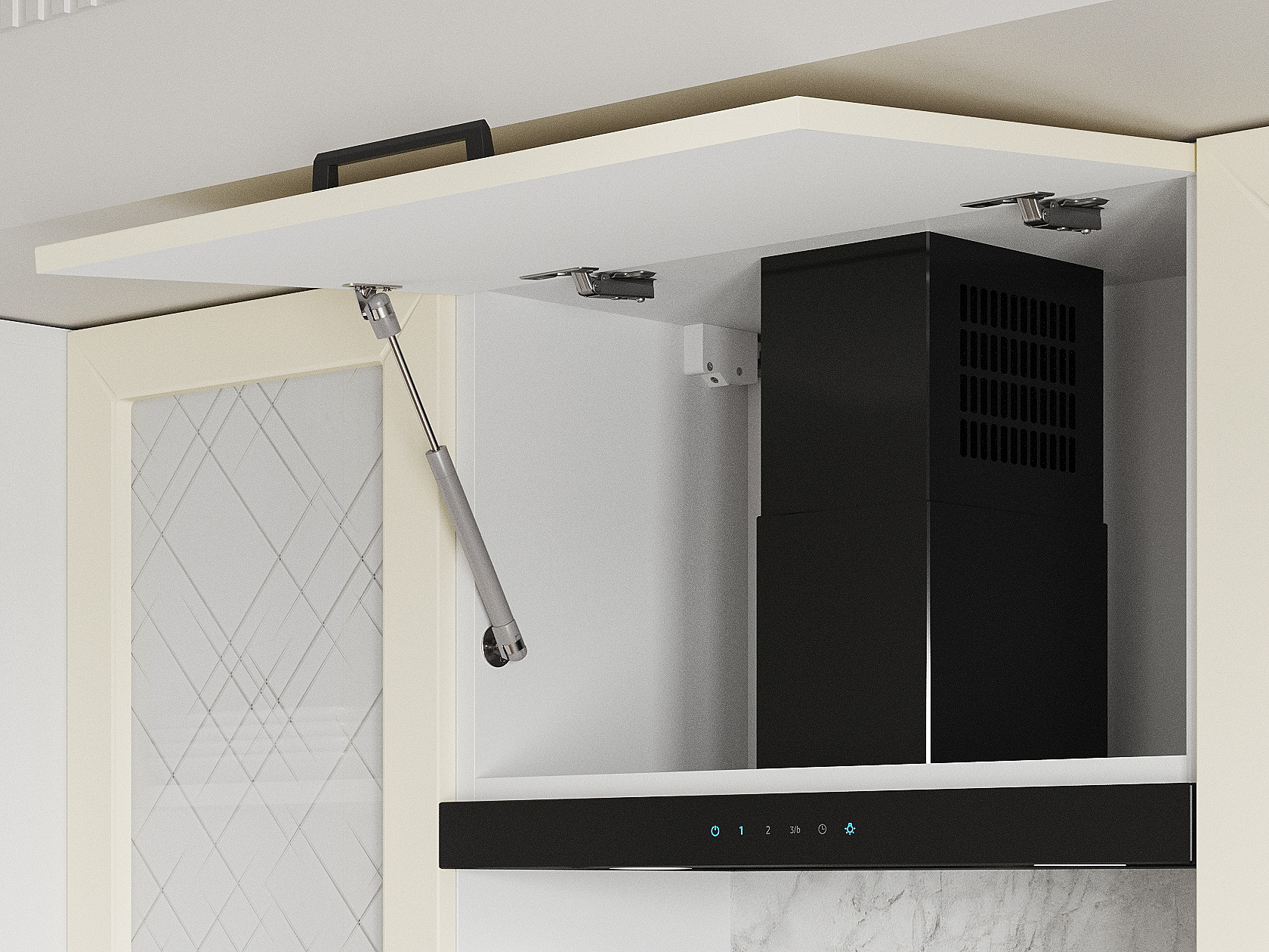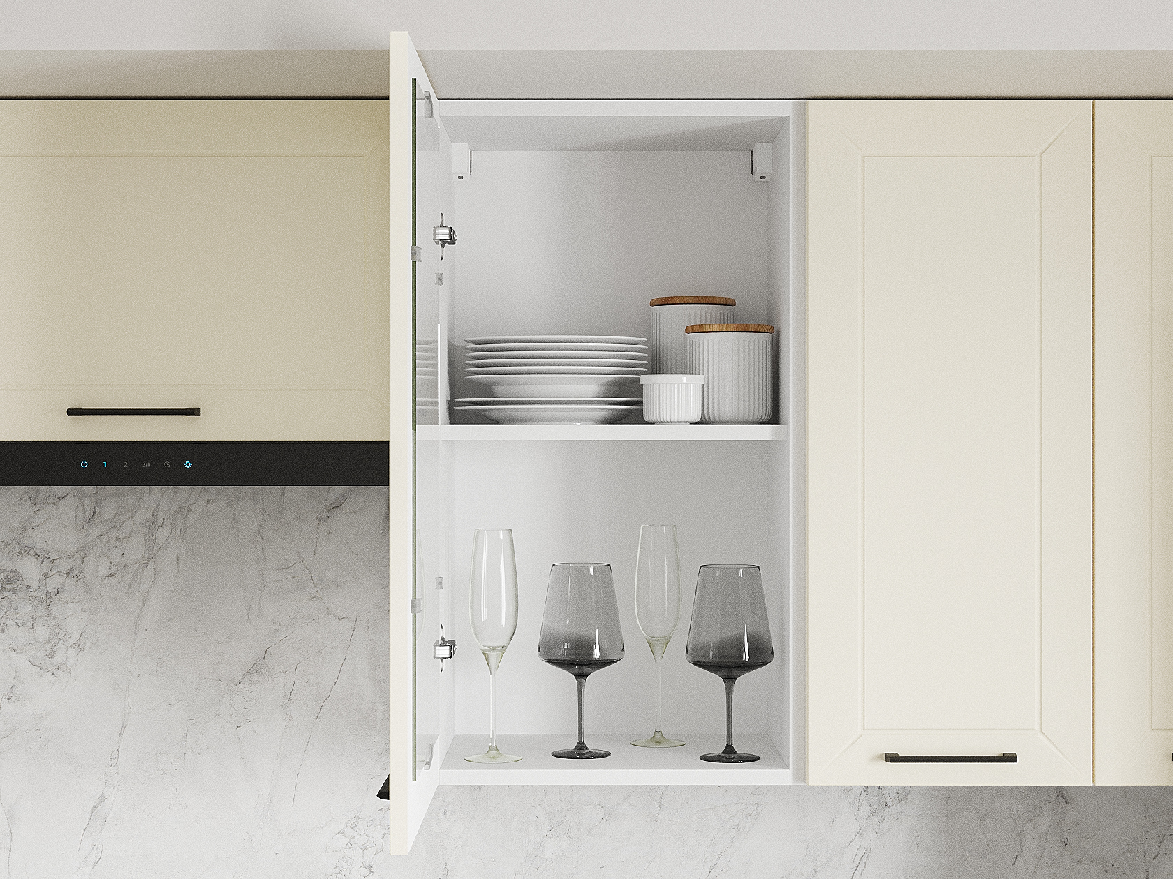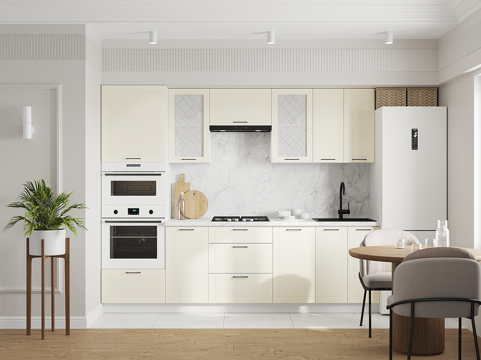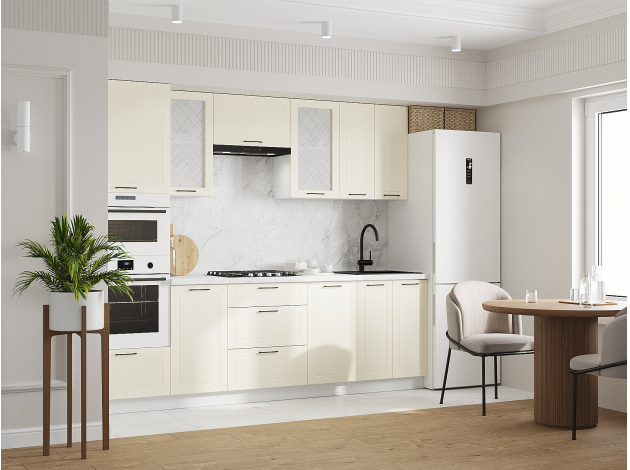 Кухонный гарнитур Вектор 260 см с антресолью Белый / Магнолия / Стекло
