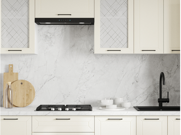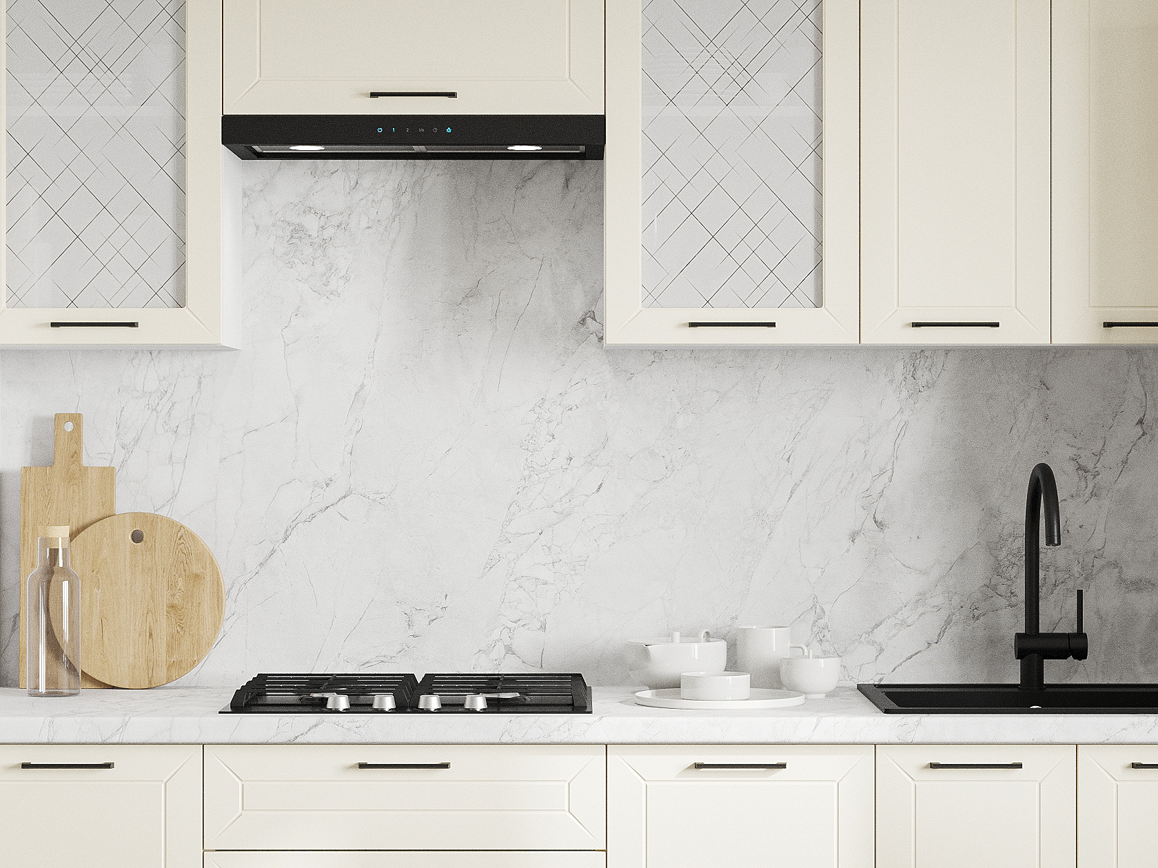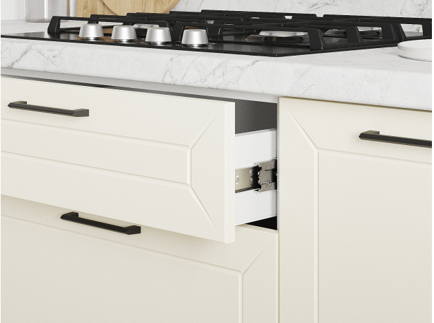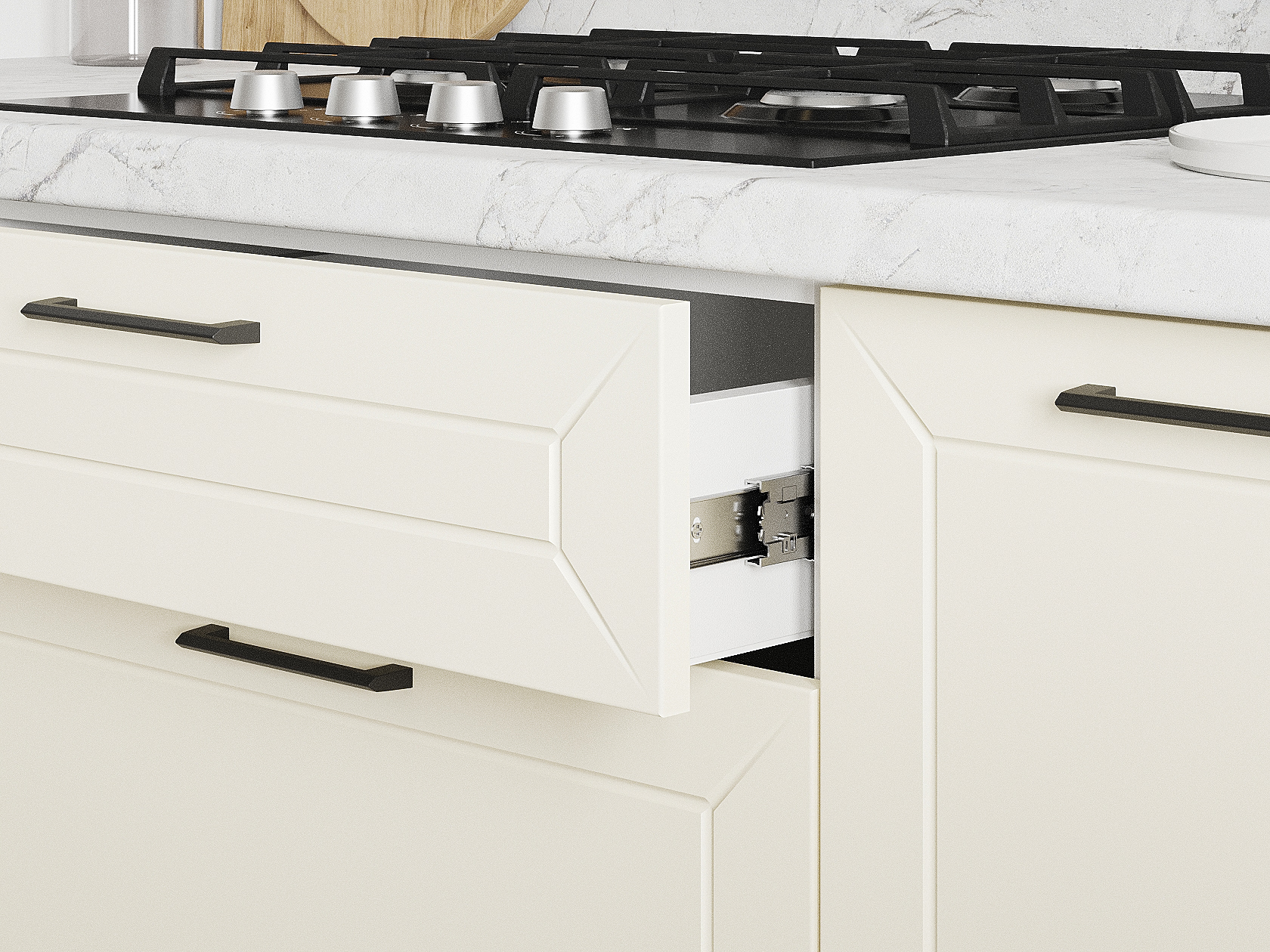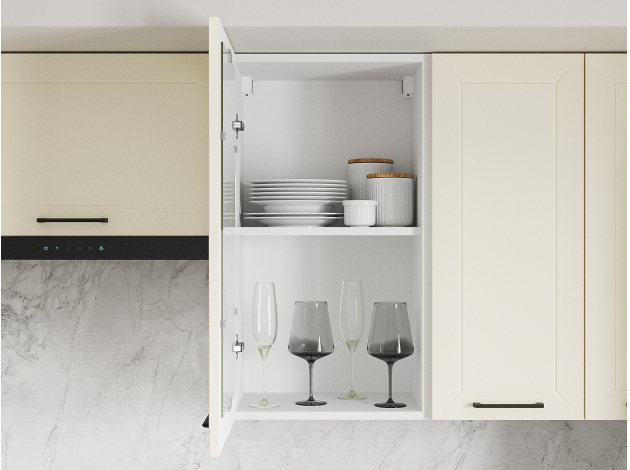 Кухонный гарнитур Вектор 260 см с антресолью Белый / Магнолия / Стекло