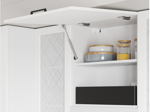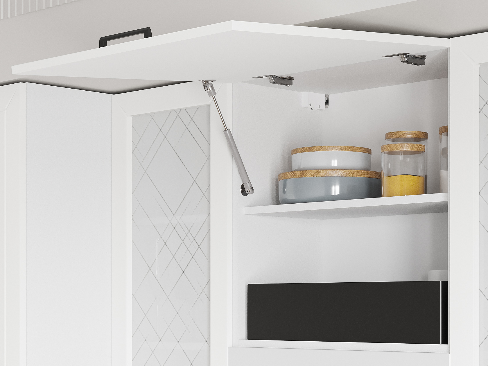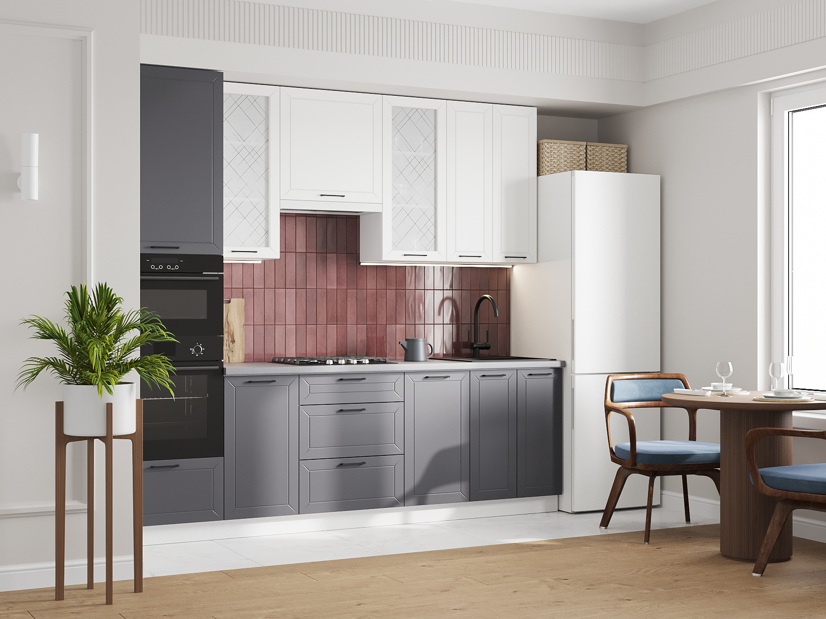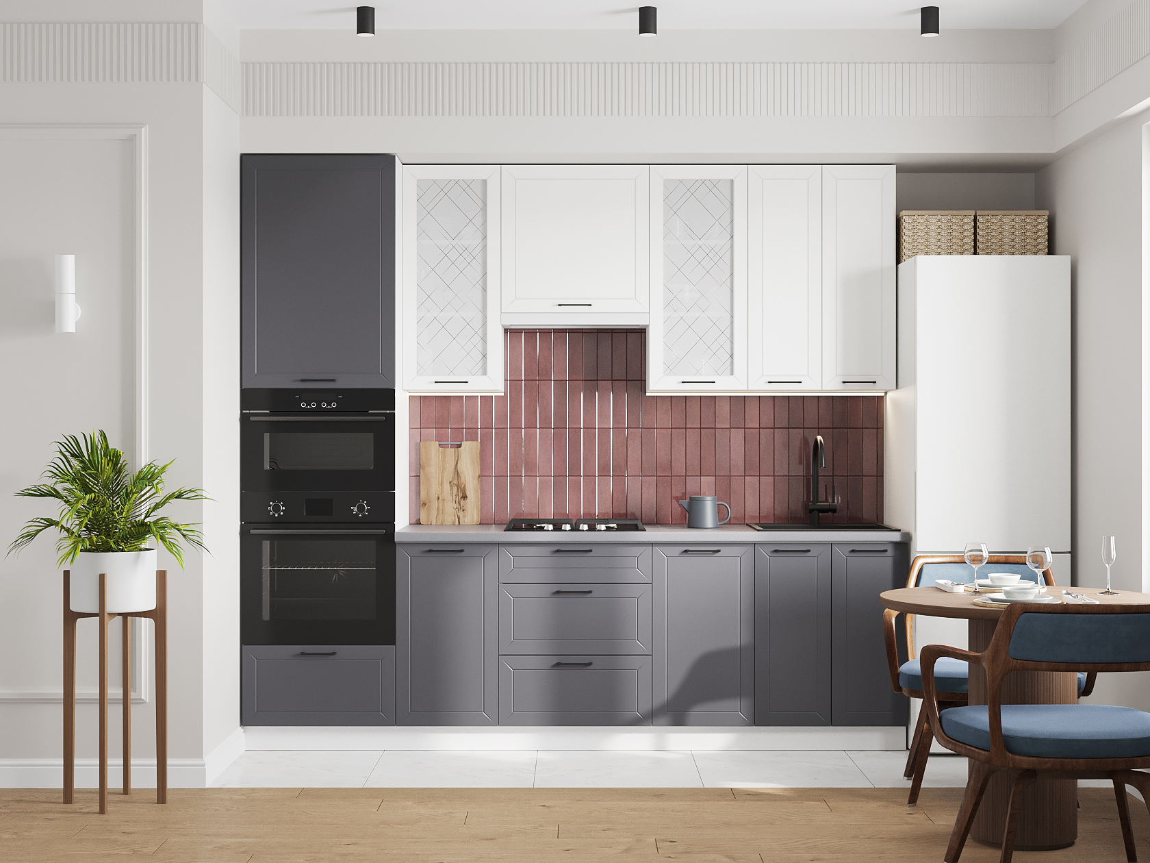 Высокий кухонный гарнитур со стеклом Вектор 260 см Белый / Бланж / Графит / Стекло