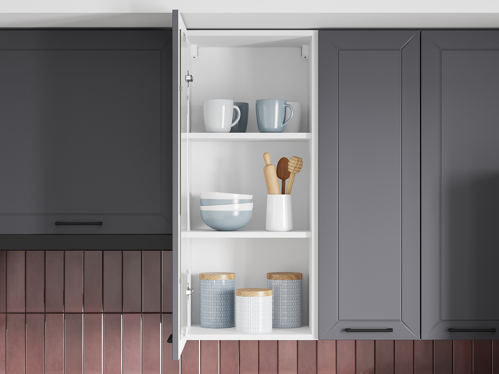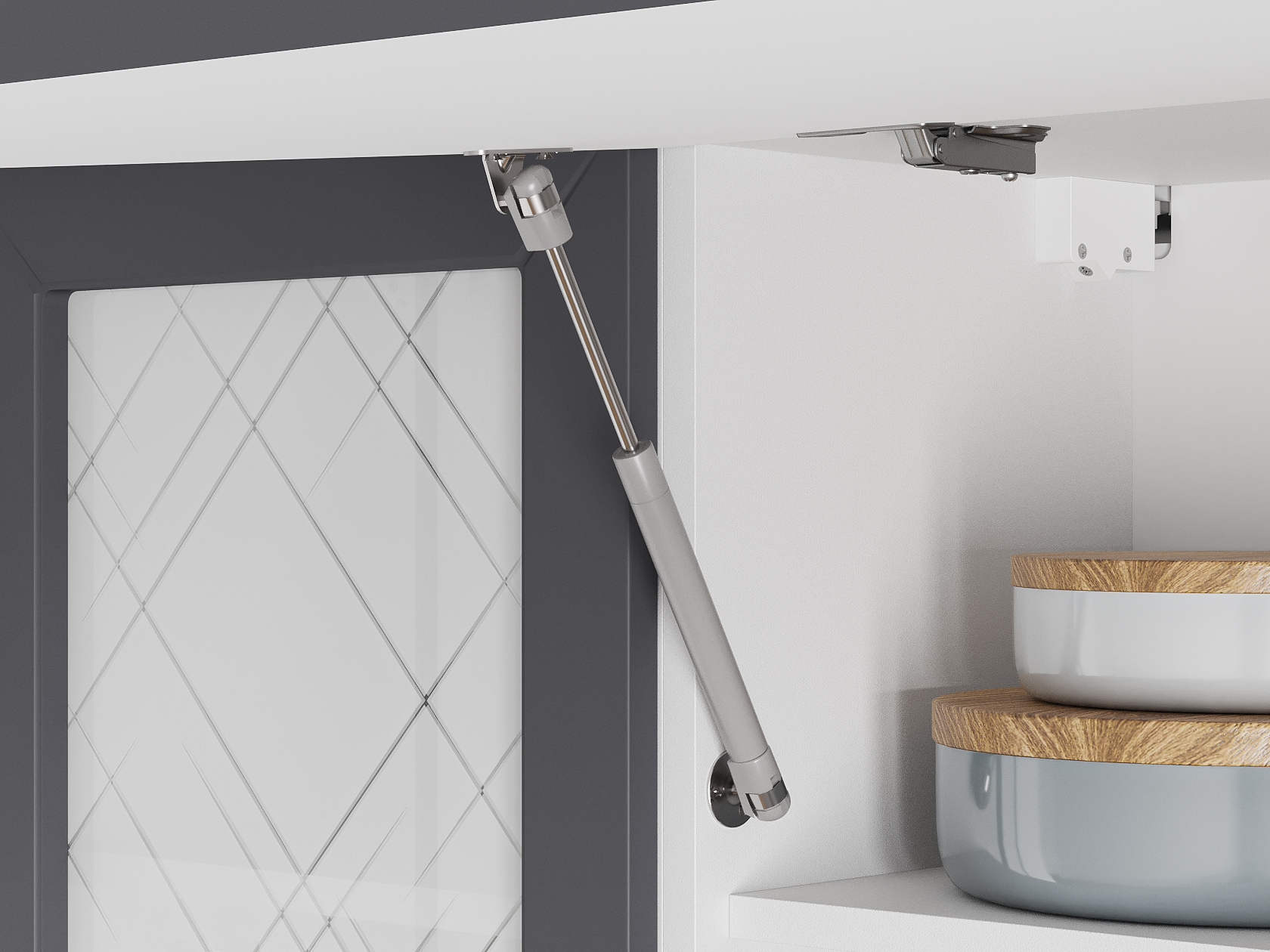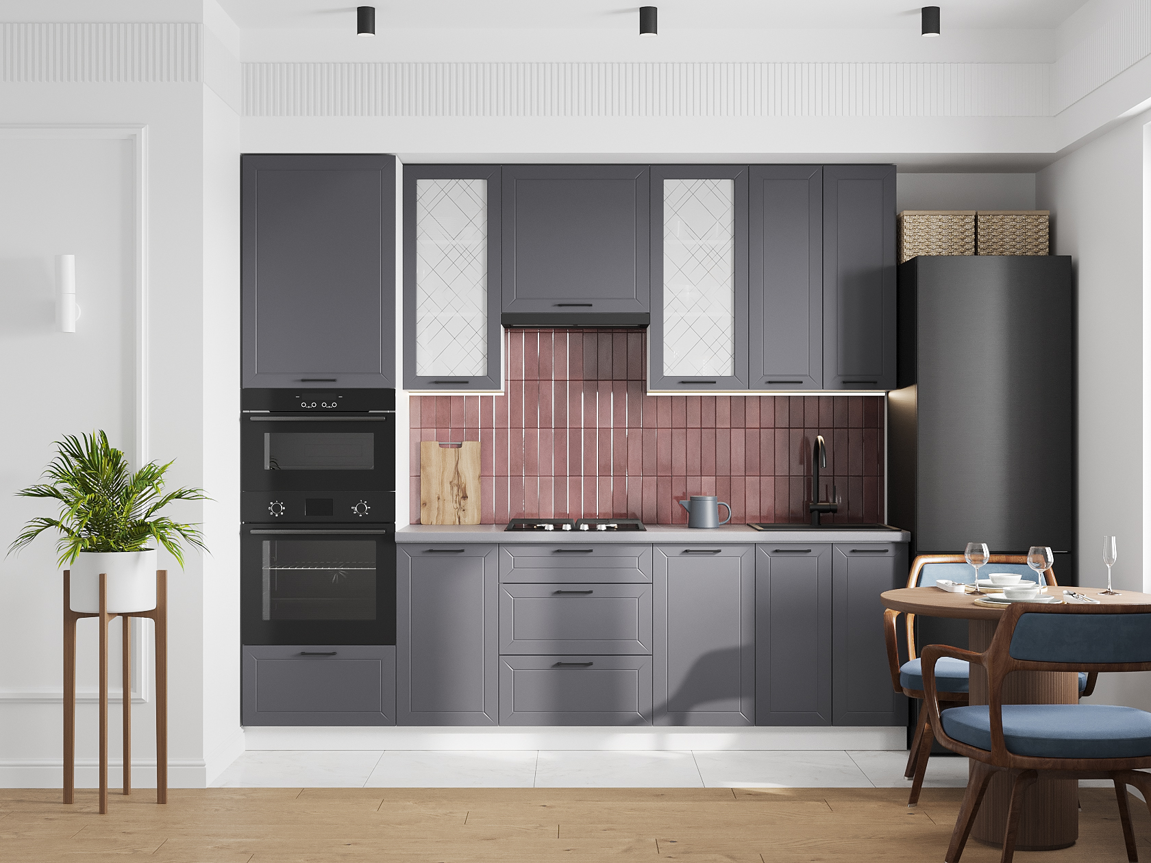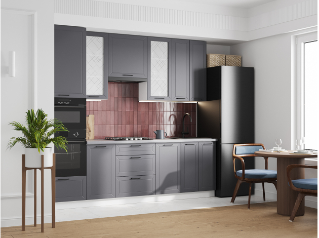 Высокий кухонный гарнитур со стеклом Вектор 260 см Белый / Графит со стеклом