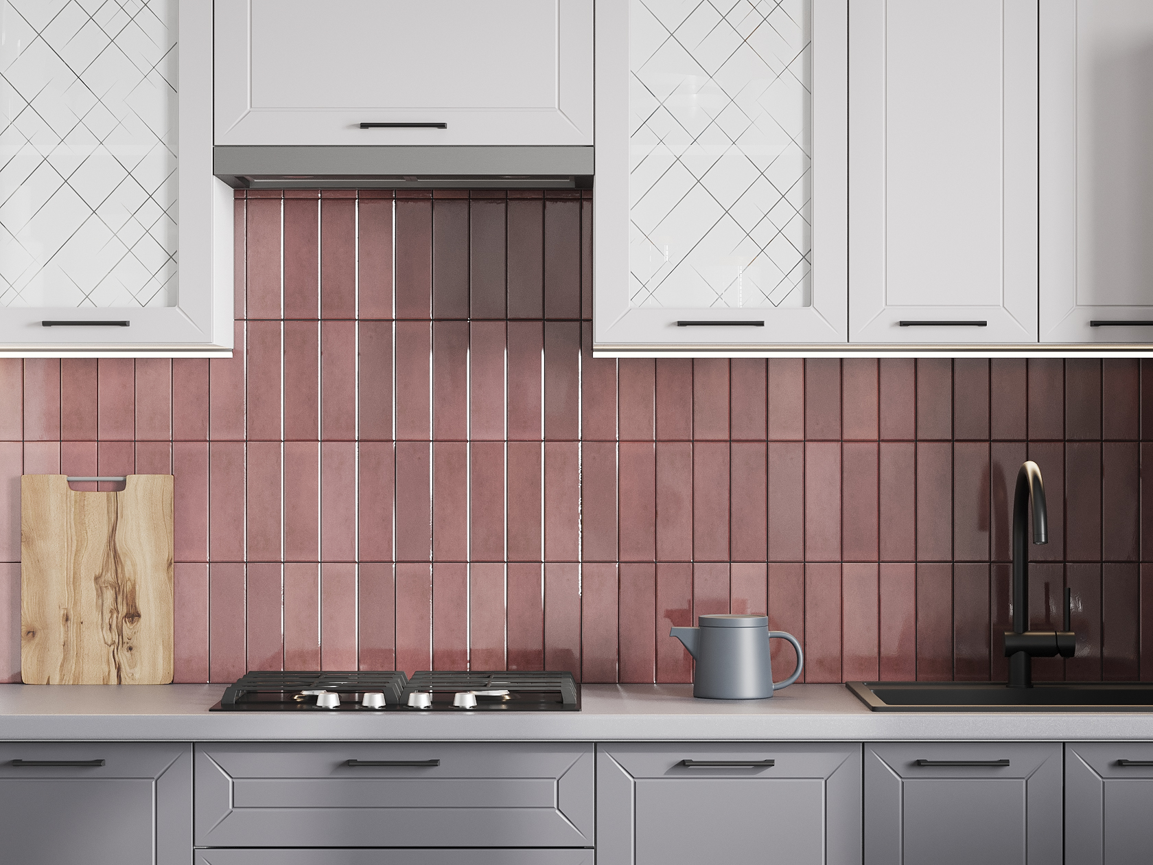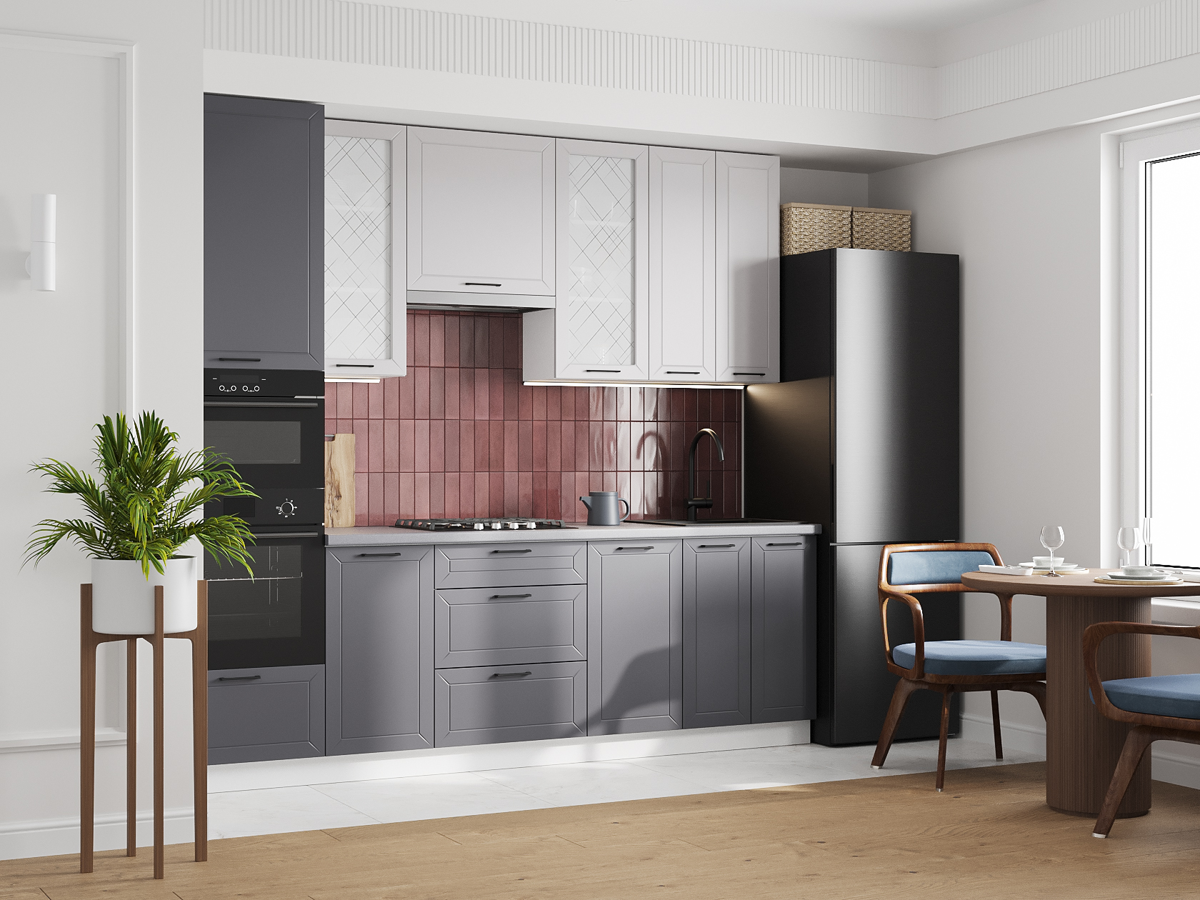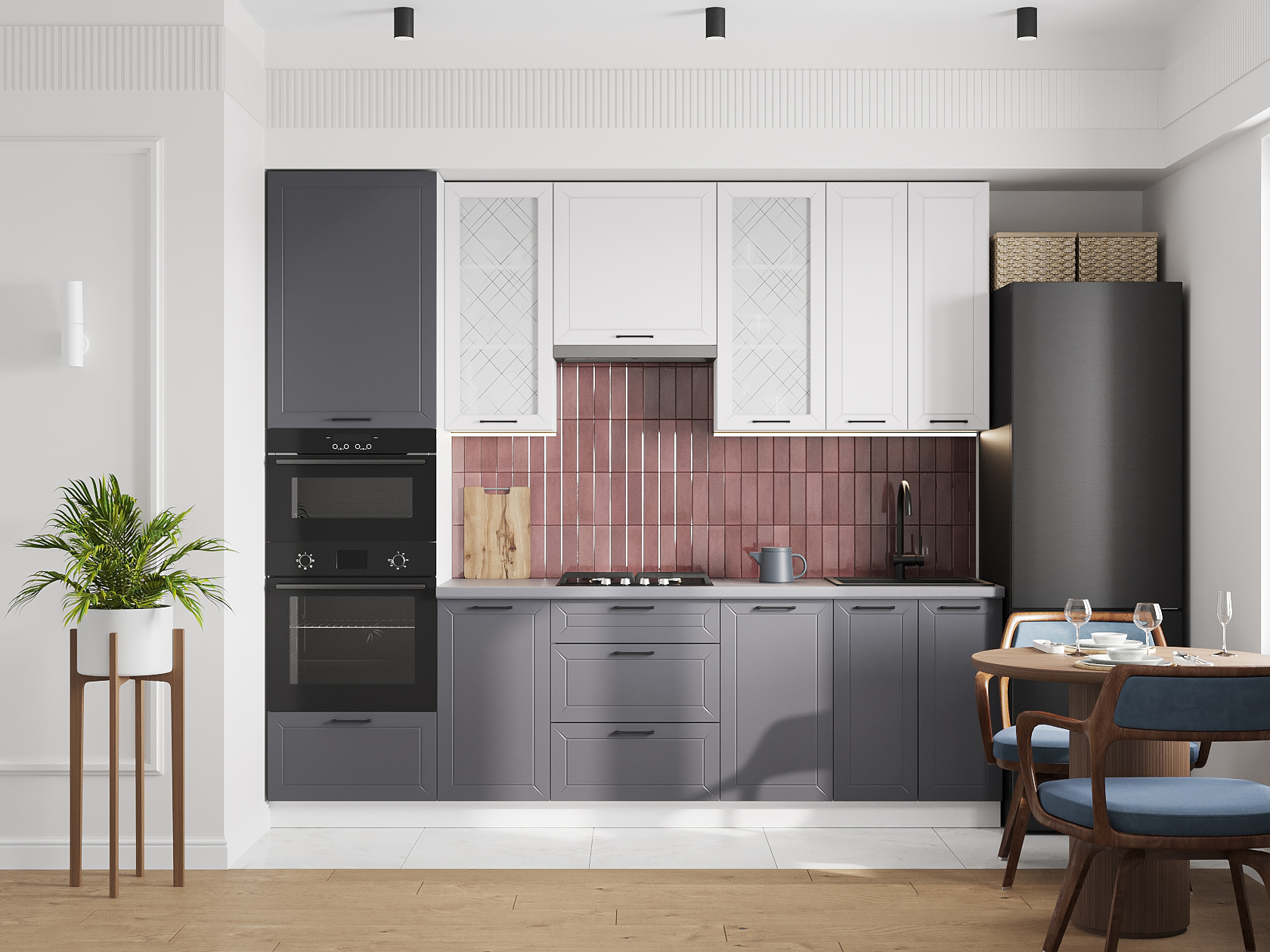 Высокий кухонный гарнитур со стеклом Вектор 260 см Белый / Нео / Графит / Стекло