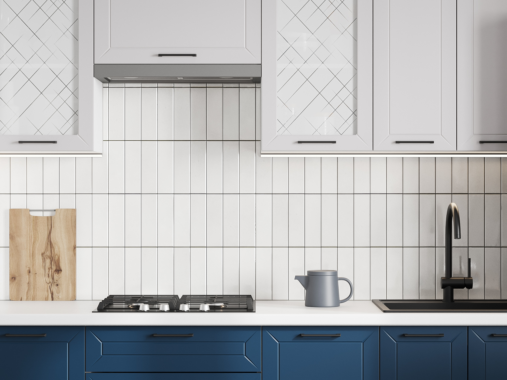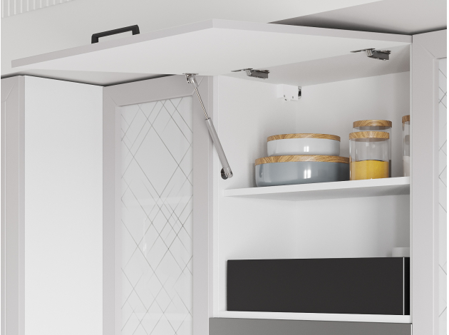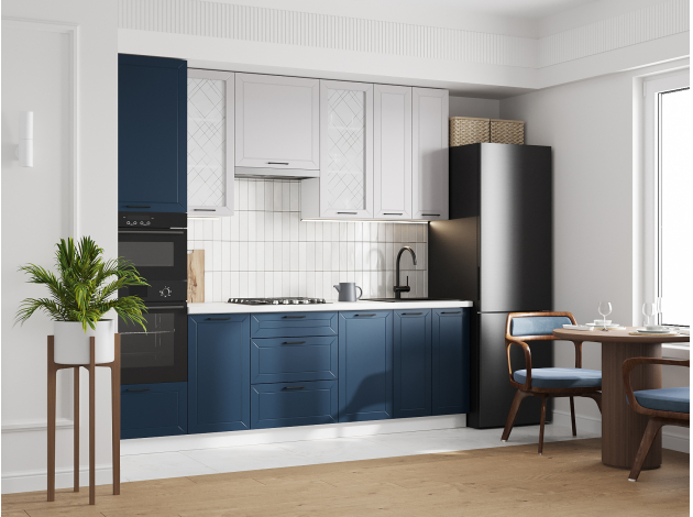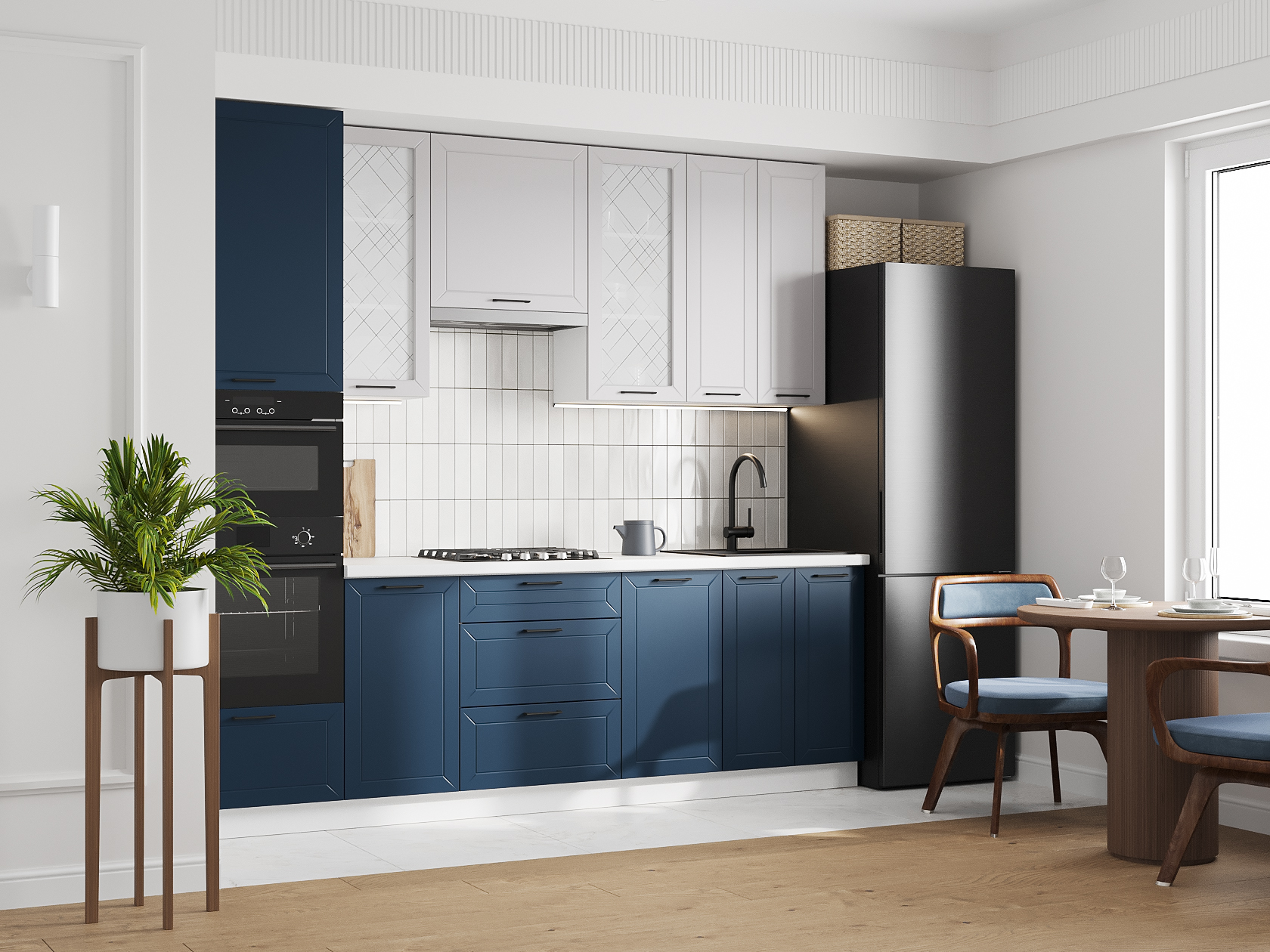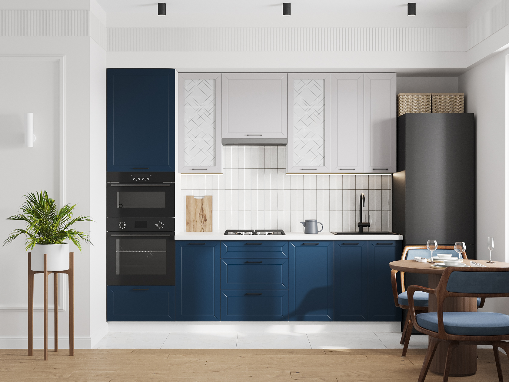 Высокий кухонный гарнитур со стеклом Вектор 260 см Белый / Нео / Океания / Стекло