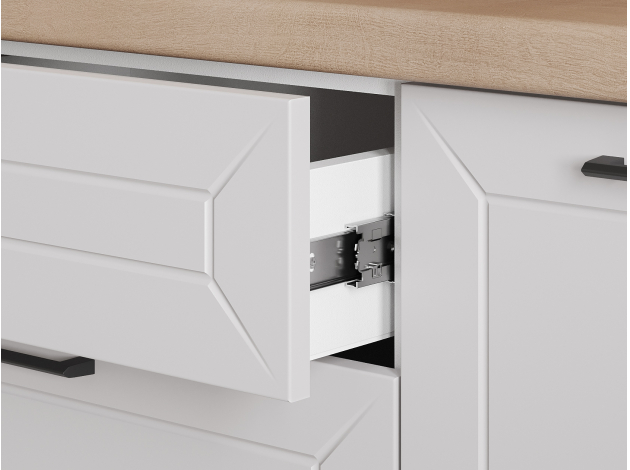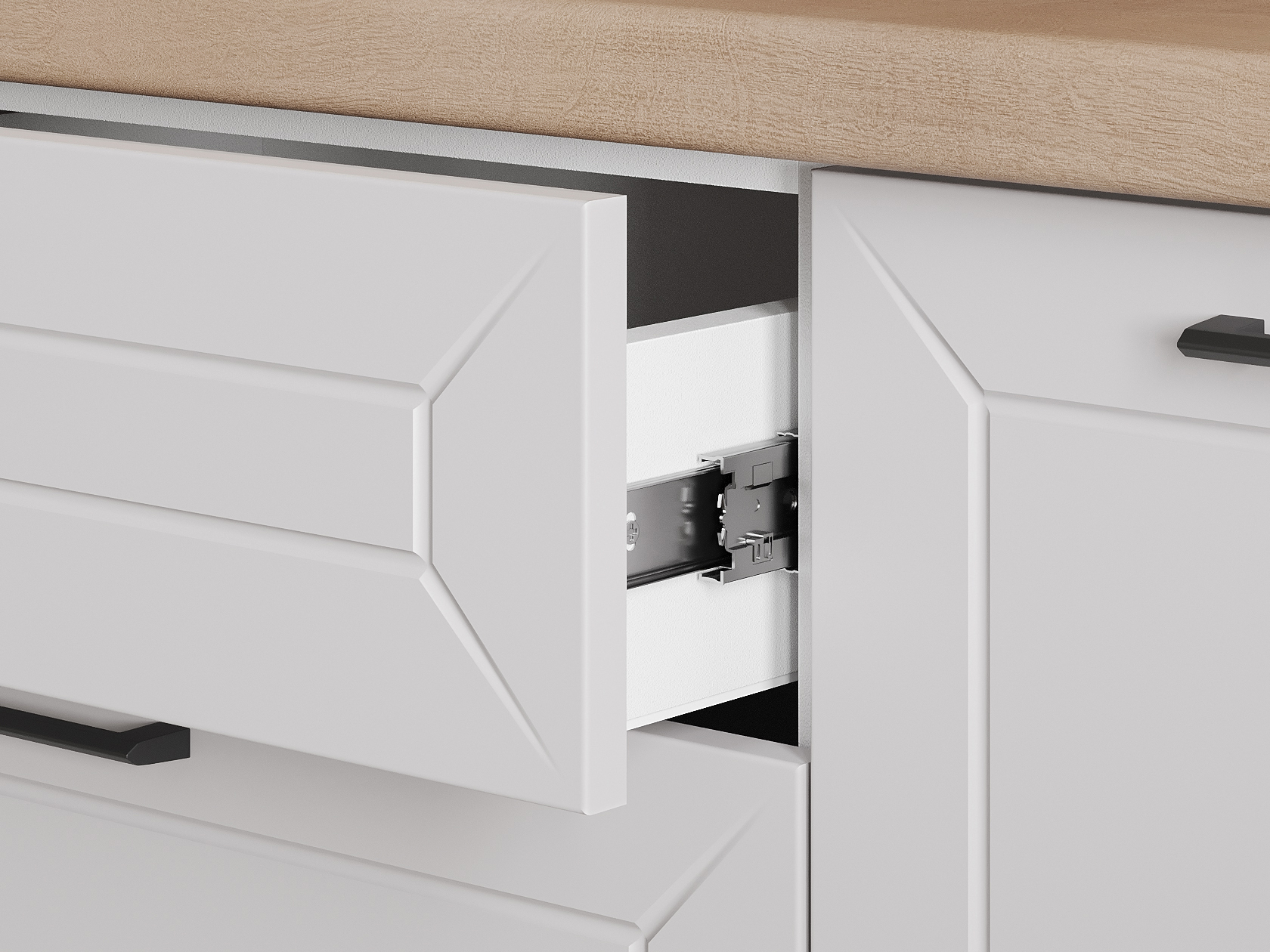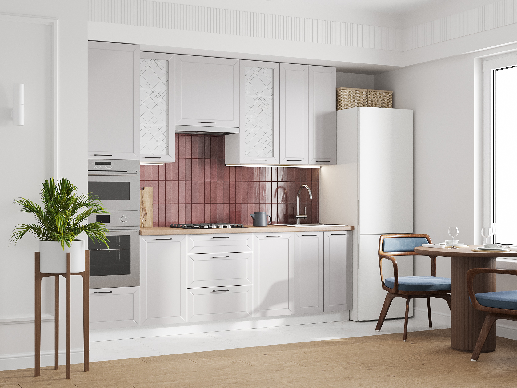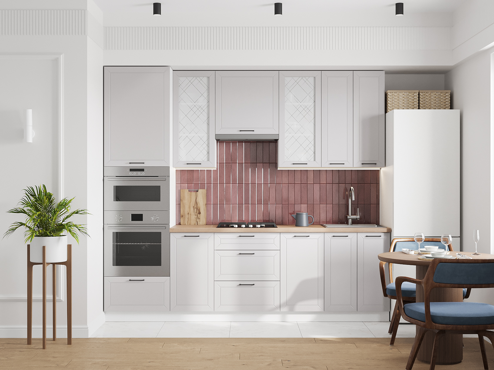 Высокий кухонный гарнитур со стеклом Вектор 260 см Белый / Нео / Стекло