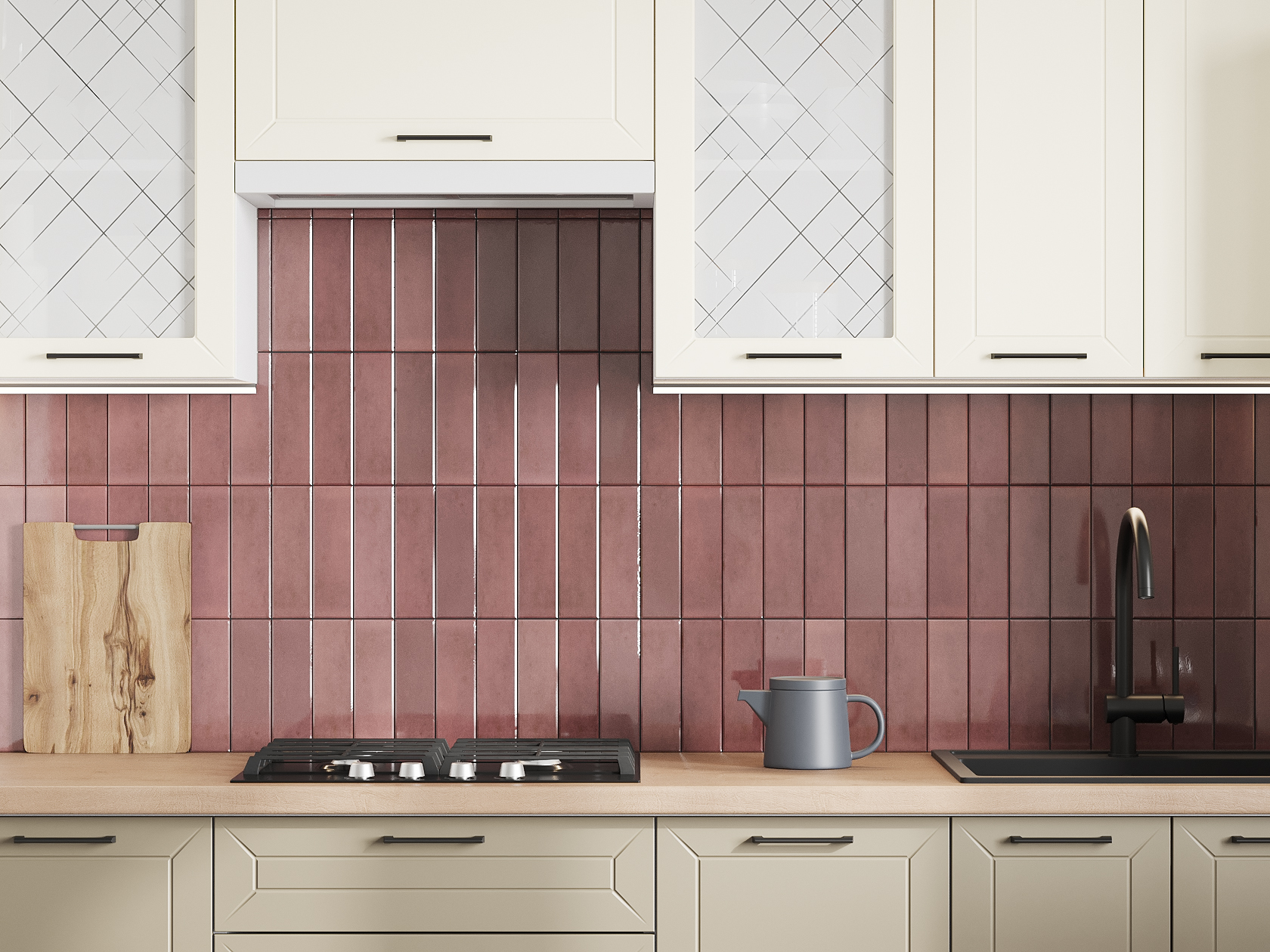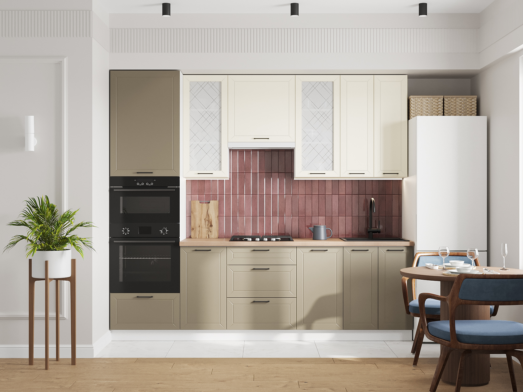 Высокий кухонный гарнитур со стеклом Вектор 260 см Белый / Магнолия / Базальт / Стекло