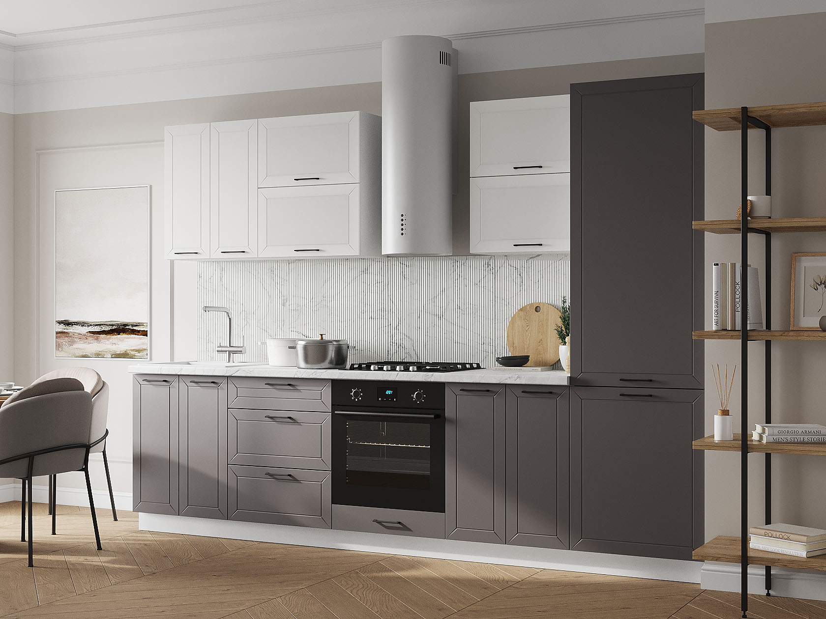 Кухонный гарнитур Вектор 300 см Белый / Грей / Бланж