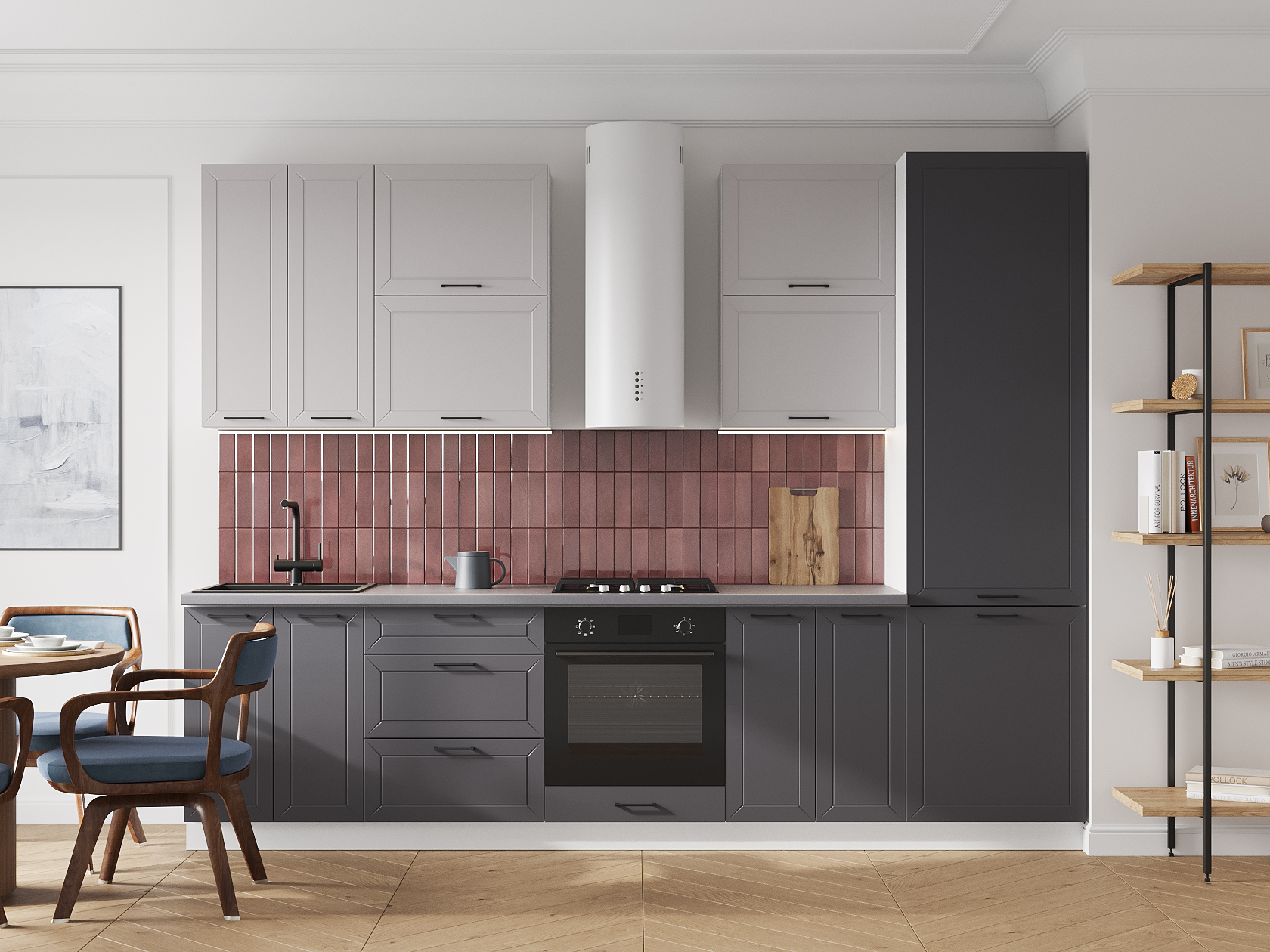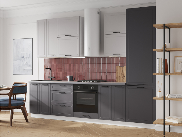 Высокий кухонный гарнитур Вектор 300 см Белый / Нео / Графит