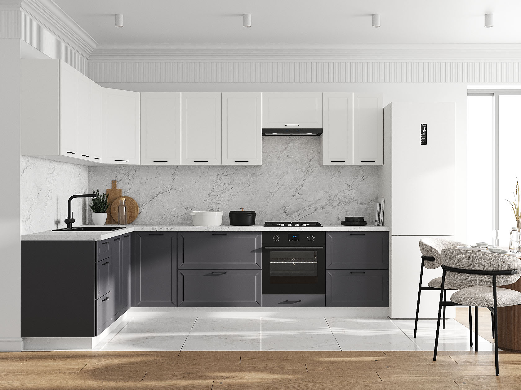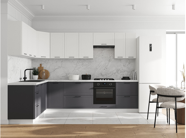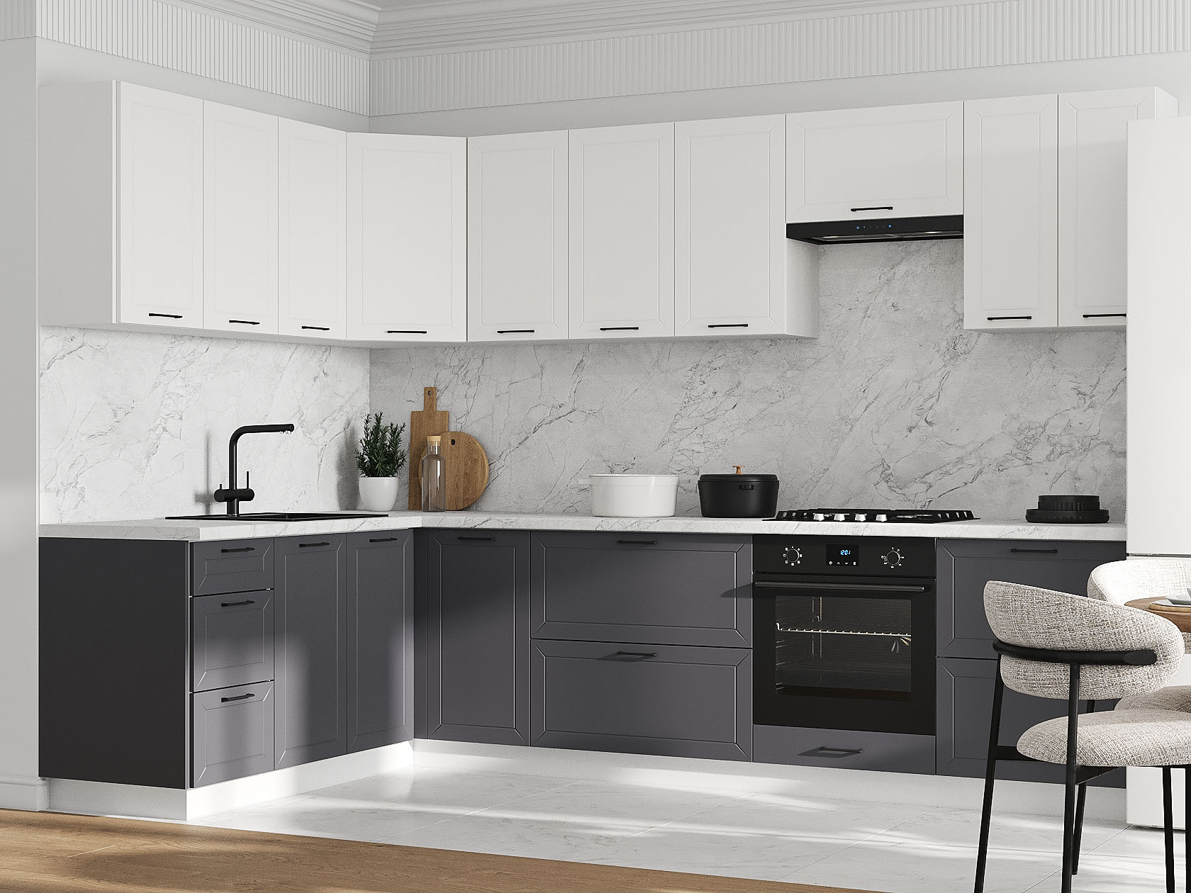 Кухонный гарнитур Вектор 300х180 см Белый / Графит / Бланж