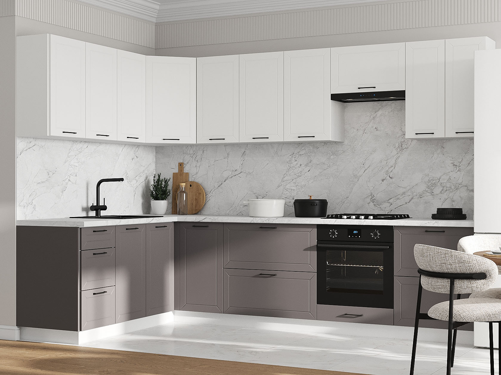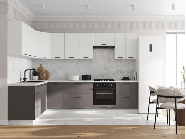 Кухонный гарнитур Вектор 300х180 см Белый / Грей / Бланж