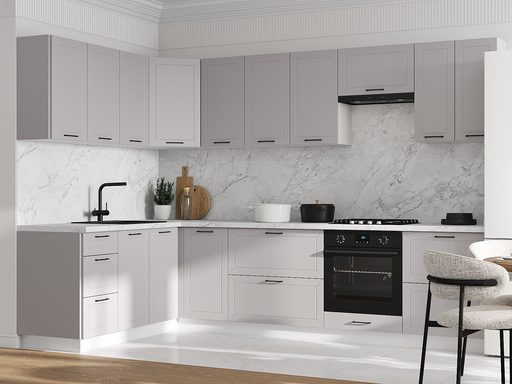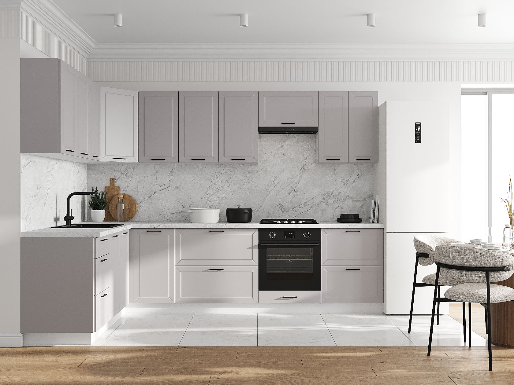 Кухонный гарнитур Вектор 300х180 см Белый / Нео