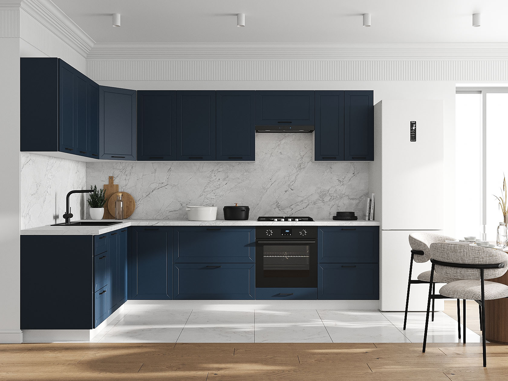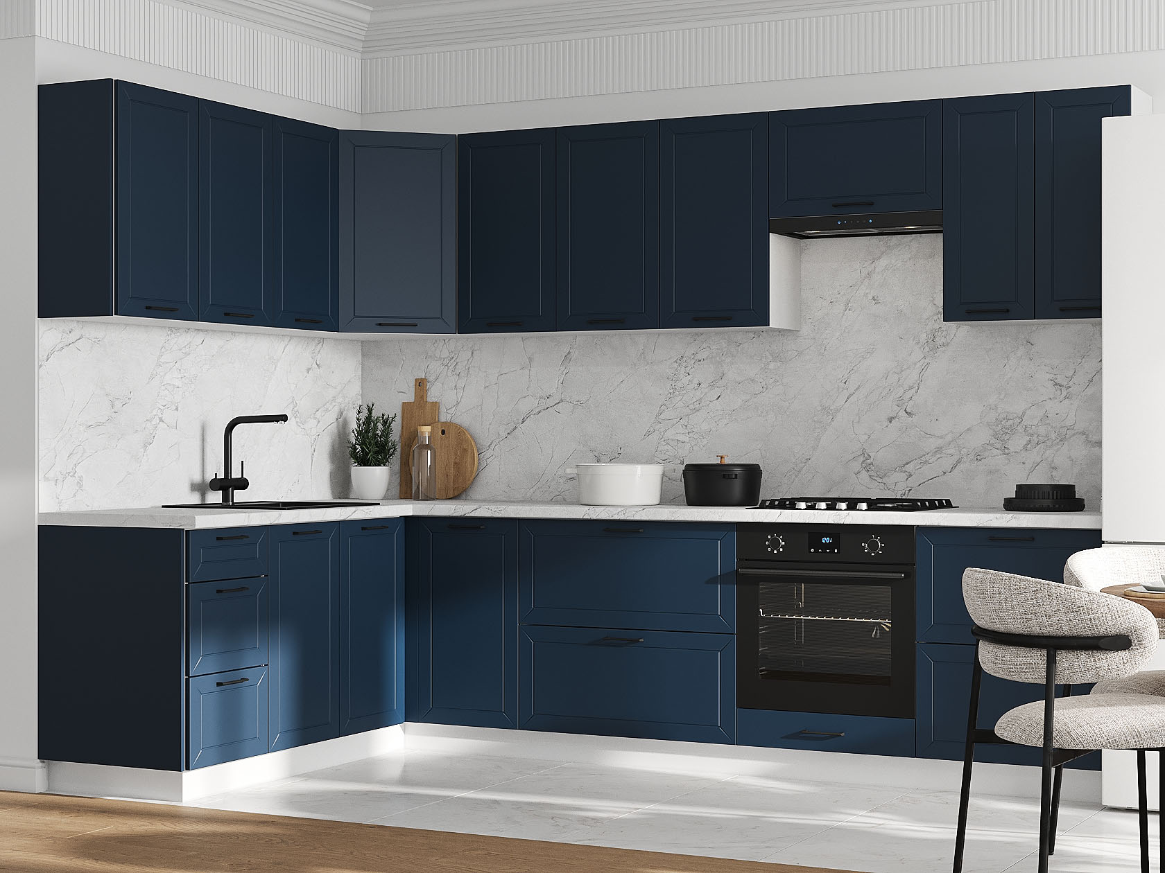 Кухонный гарнитур Вектор 300х180 см создаст уютное пространство, в котором всё продумано до мелочей. Набор объединил вместительные элементы для хранения посуды, продуктов и разной утвари, а также ниши для встраиваемой техники. Матовые фасады украшены фрезеровкой, с которой мебель смотрится особенно привлекательно.