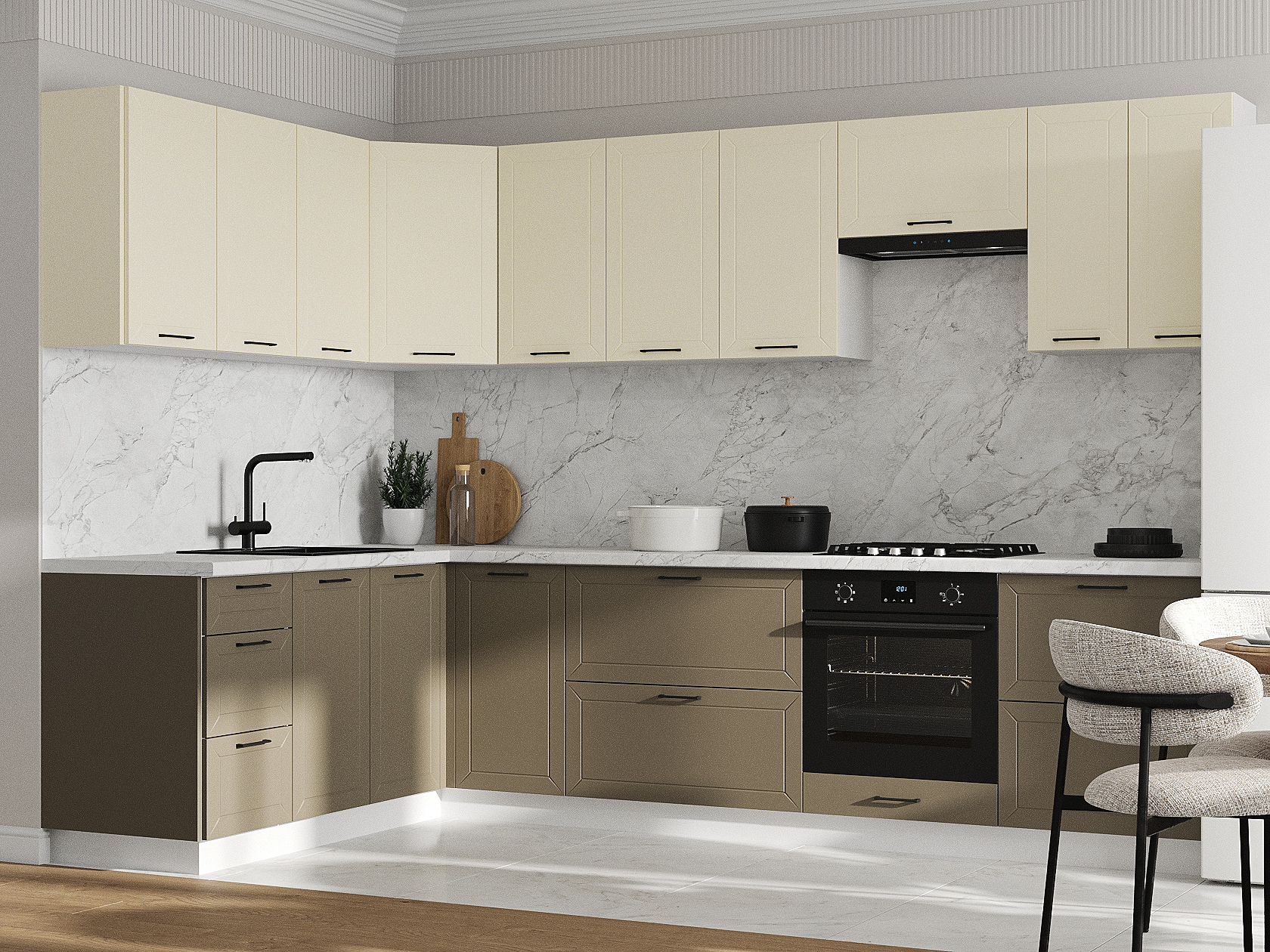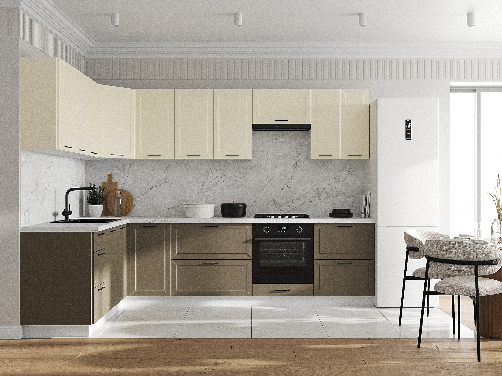 Кухонный гарнитур Вектор 300х180 см Белый / Магнолия / Базальт