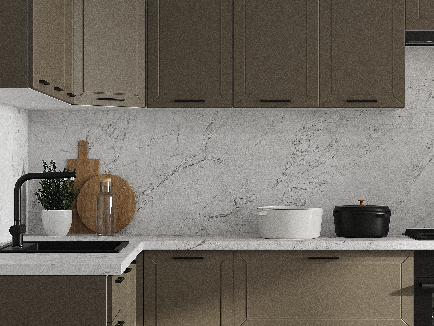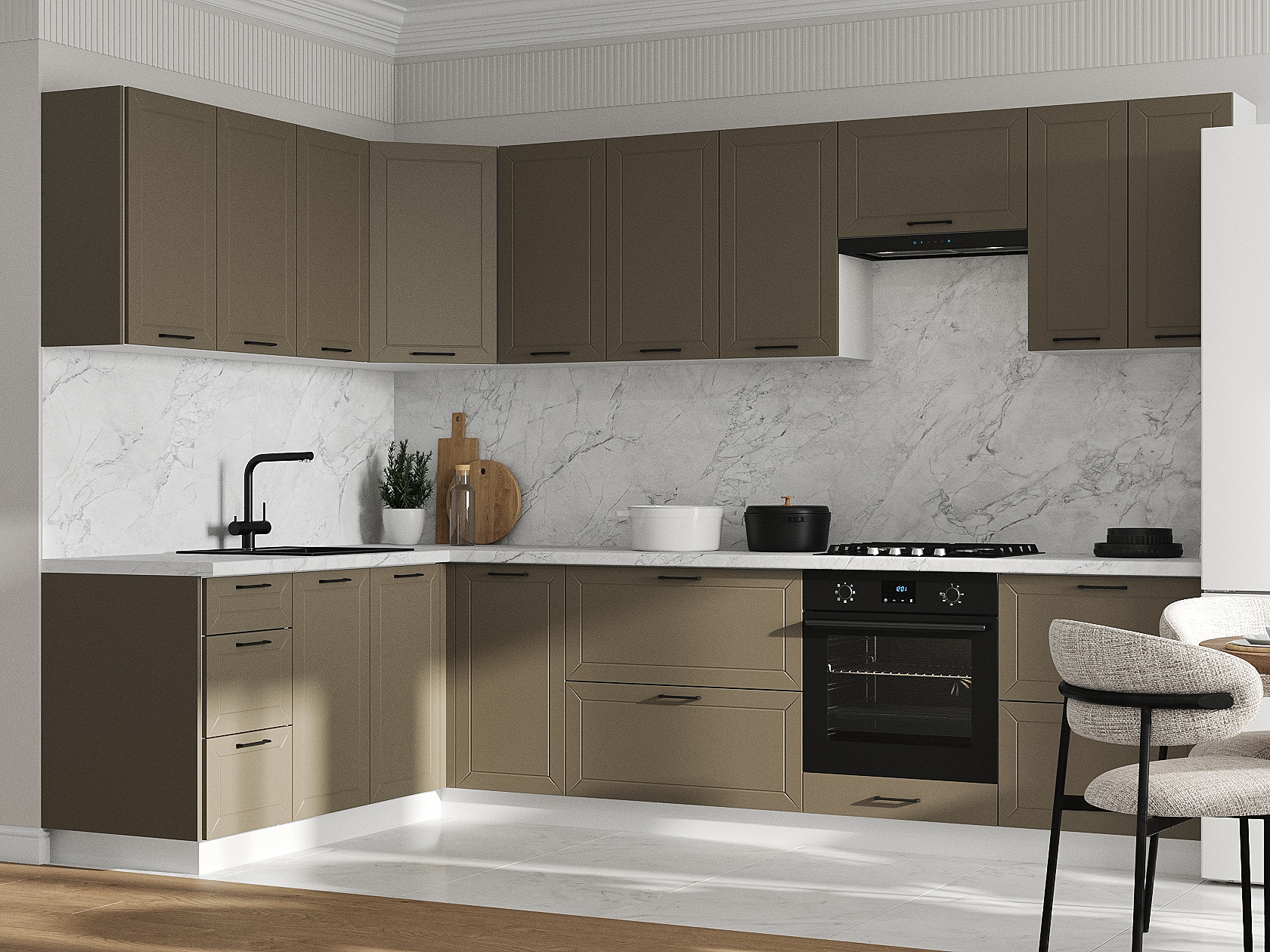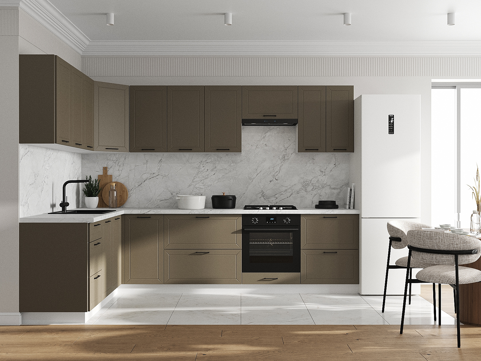 Кухонный гарнитур Вектор 300х180 см Белый / Базальт