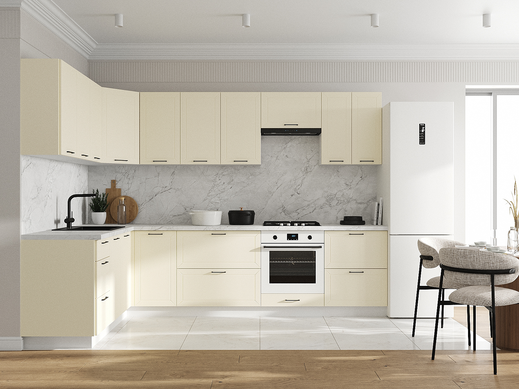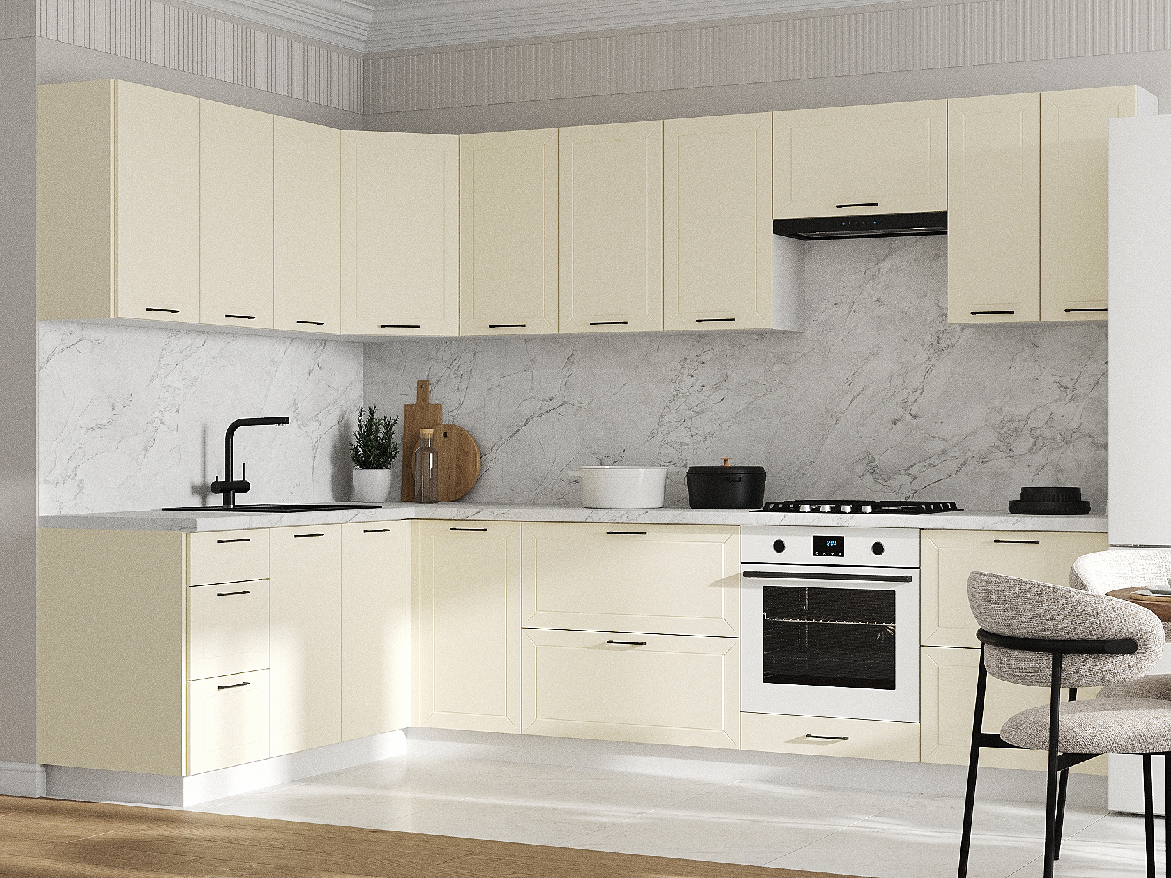 Кухонный гарнитур Вектор 300х180 см Белый / Магнолия